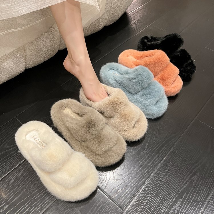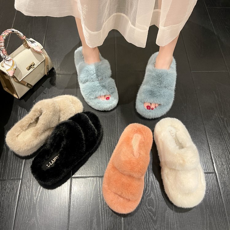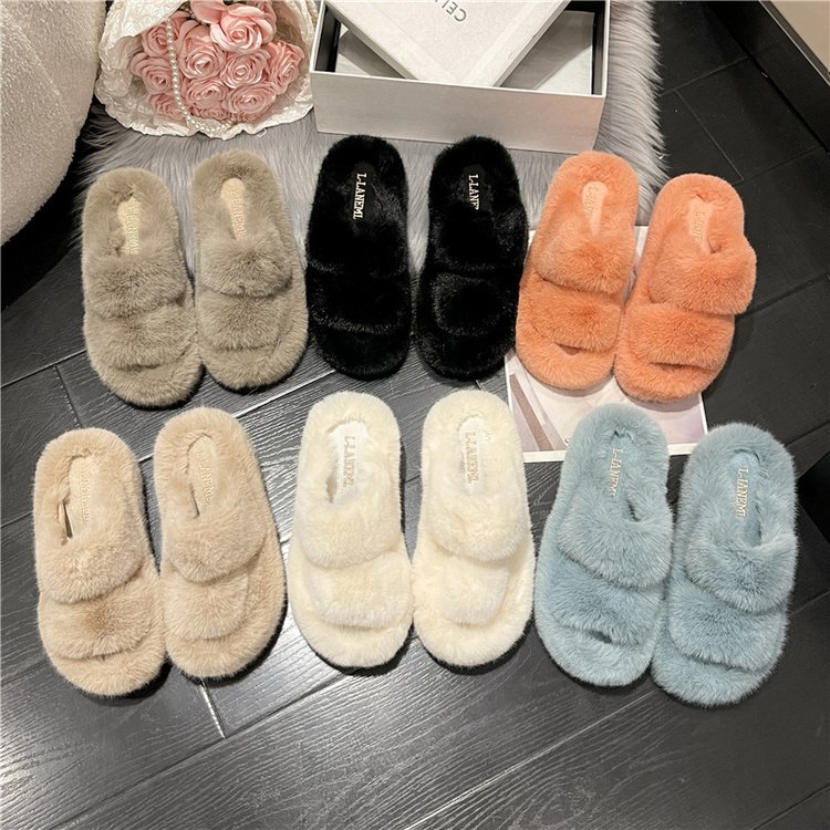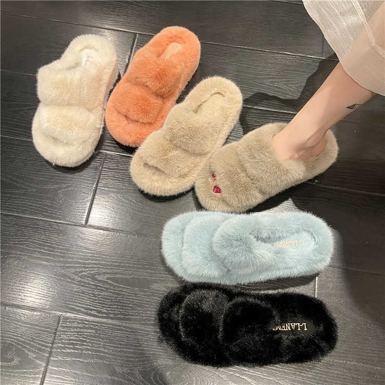 두꺼운 바닥 마오 마오 슬리퍼 여자의 가을과 겨울 더블 외국 무역 플러스 사이즈 플랫 바닥 한 단어 가정 착용 따뜻한 면 도매스토어 가기