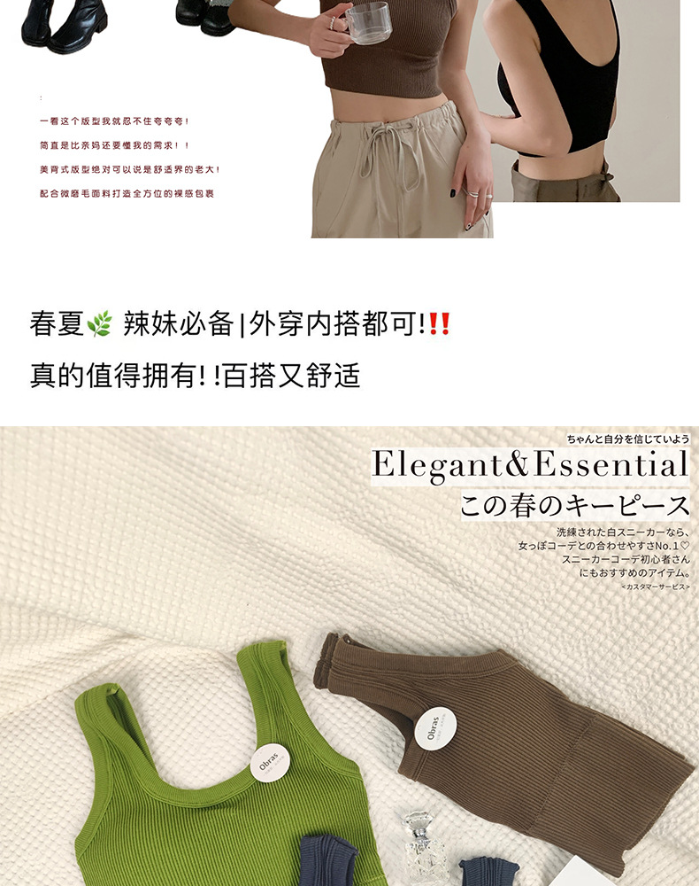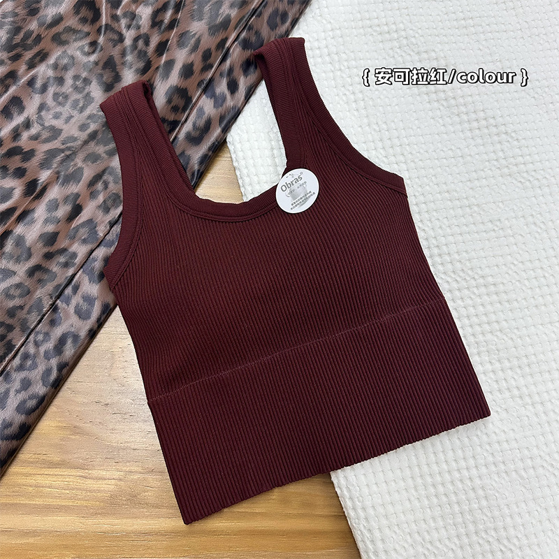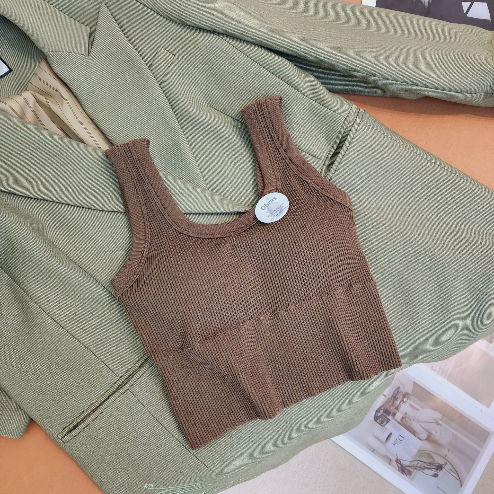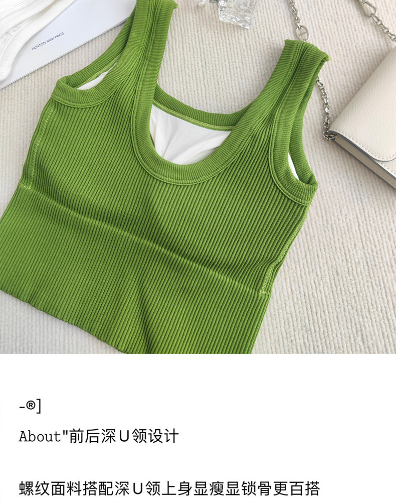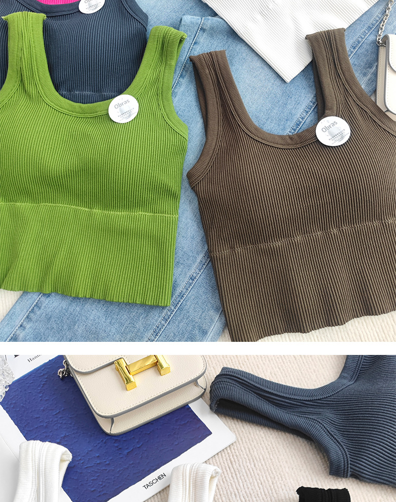 [가을신상] 여성용 짧은 배꼽 노출 대형 U-넥 가슴 패드 통합 조끼 (US 백스레드 니트 슬링 포함)