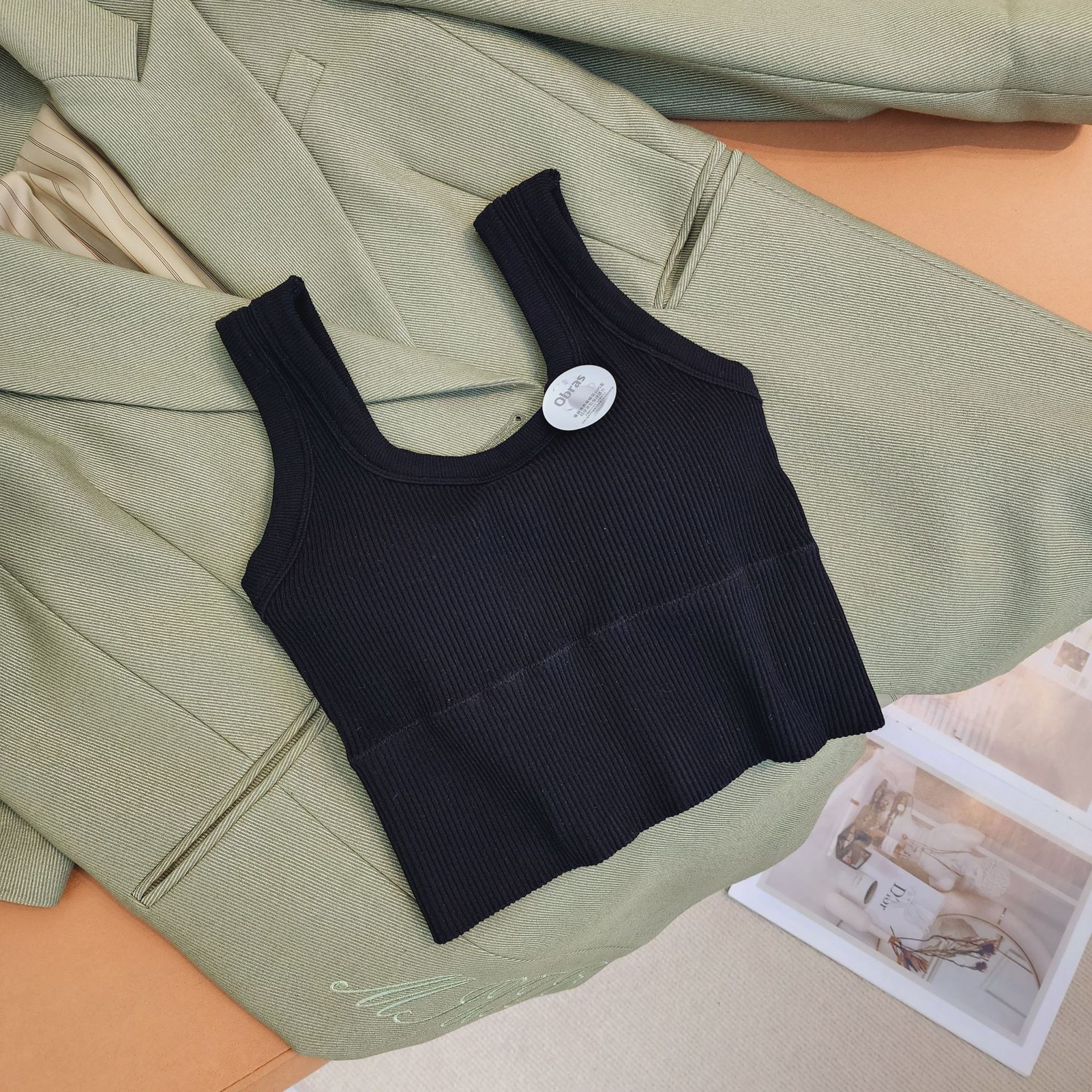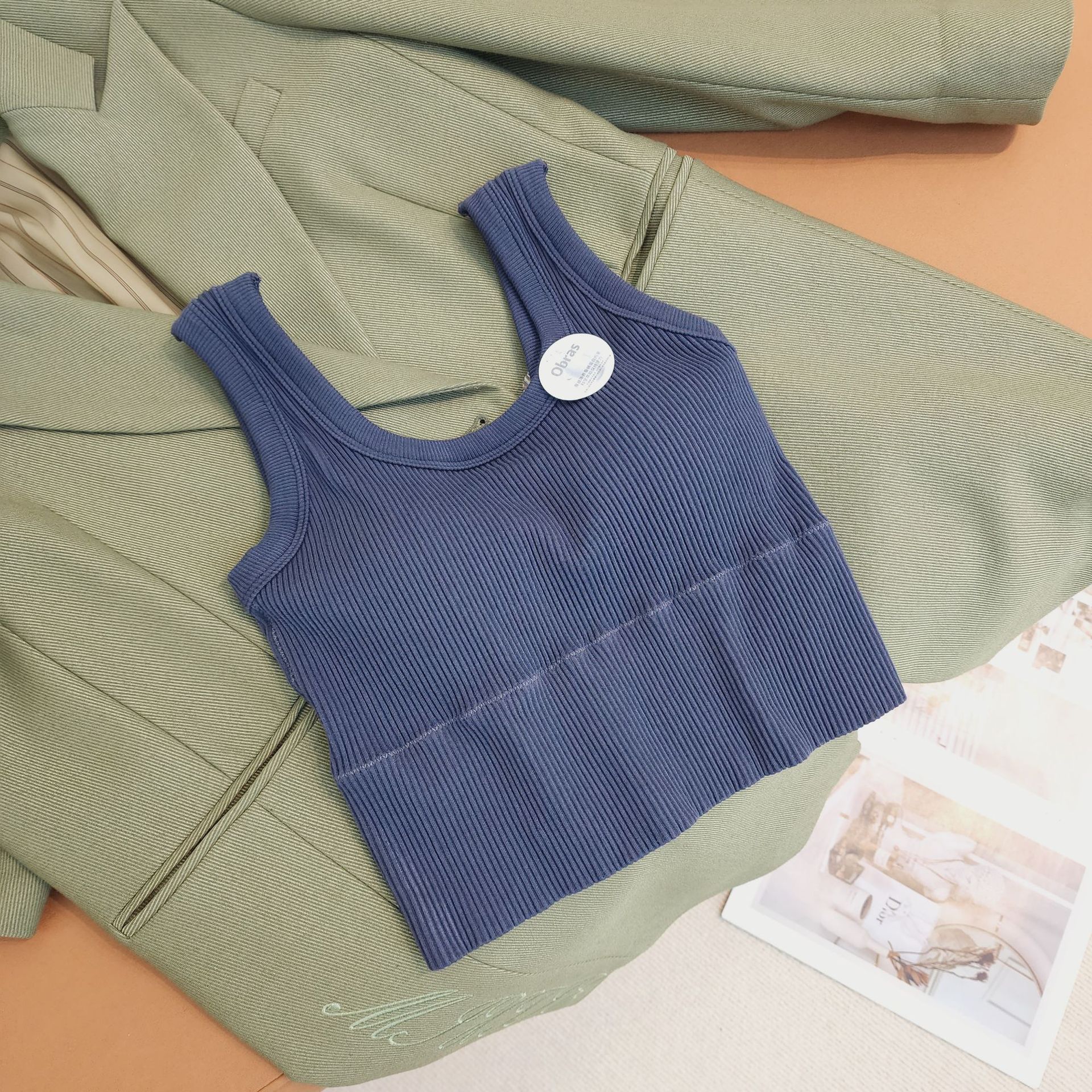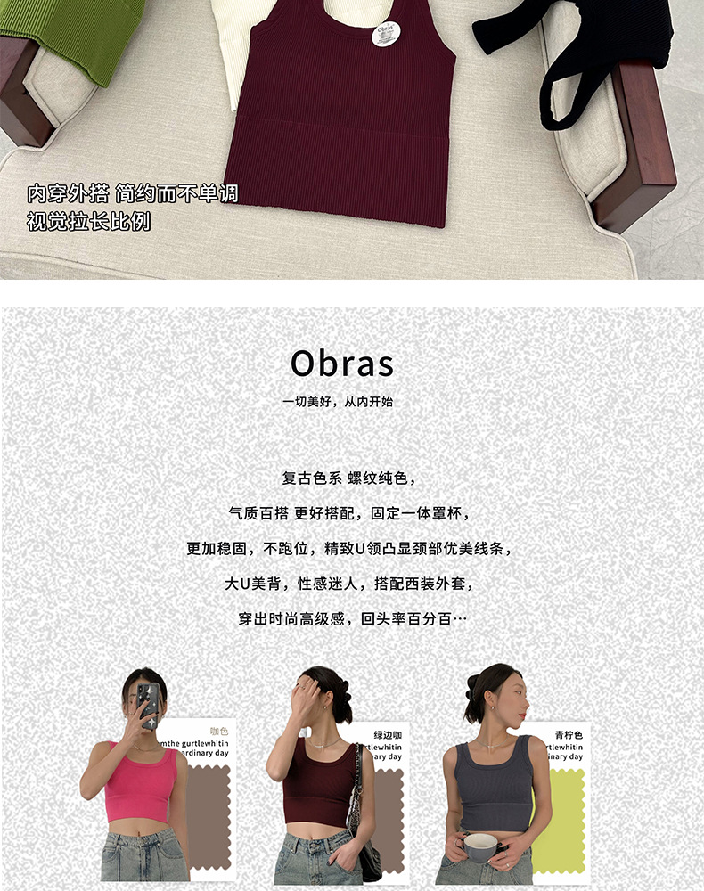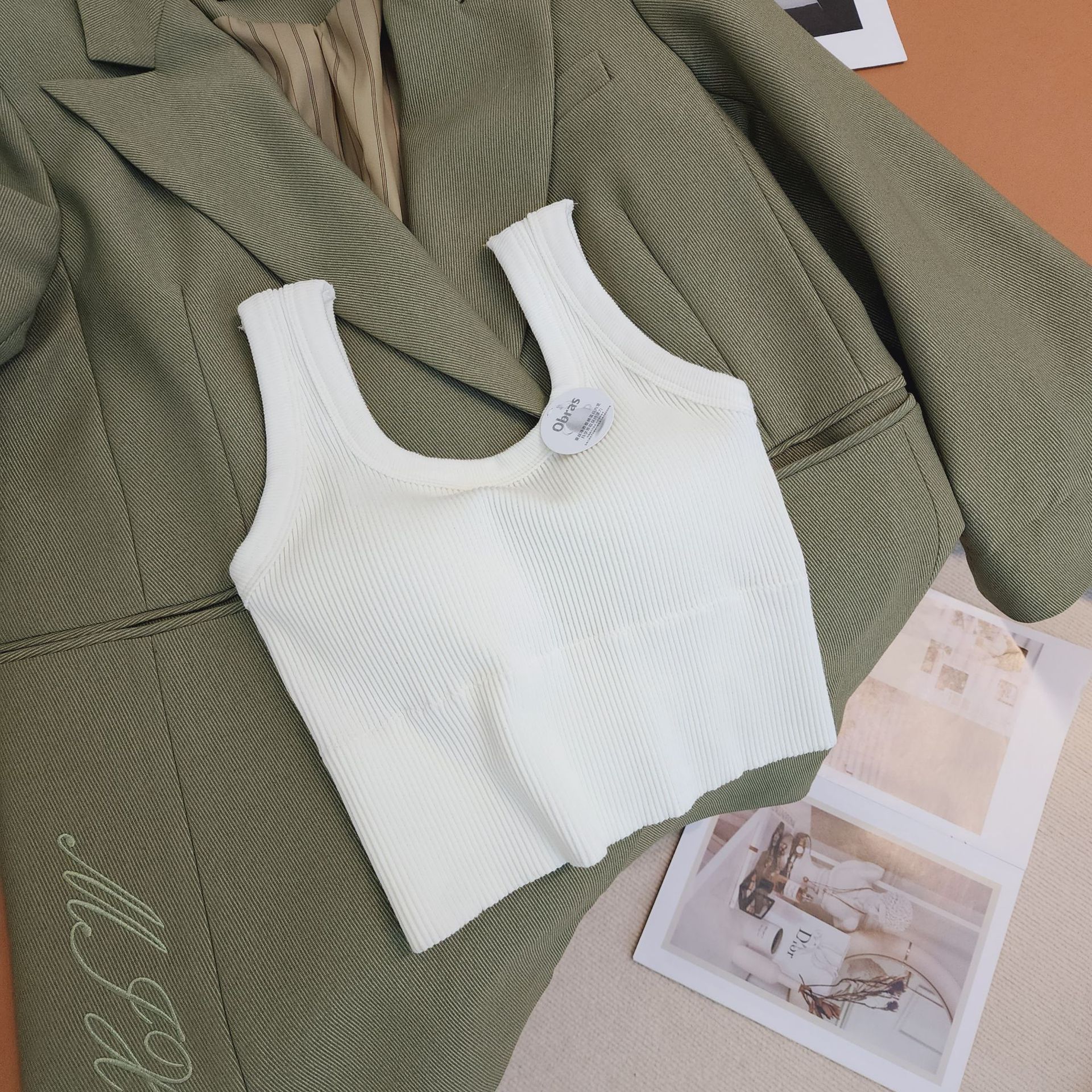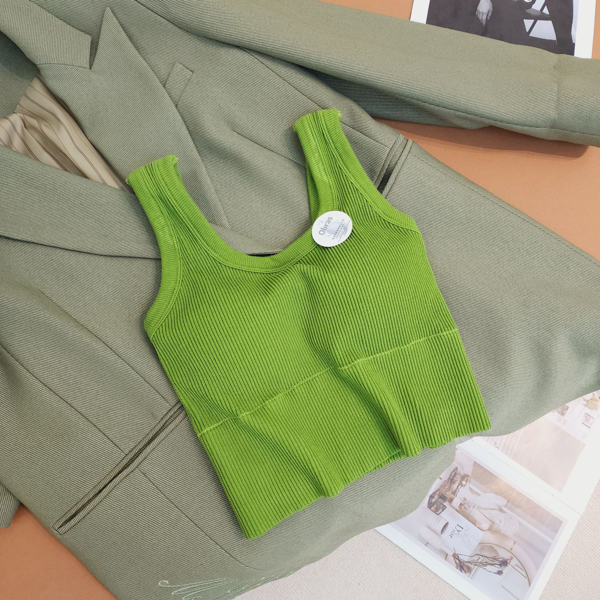 [가을신상] 여성용 짧은 배꼽 노출 대형 U-넥 가슴 패드 통합 조끼 (US 백스레드 니트 슬링 포함)