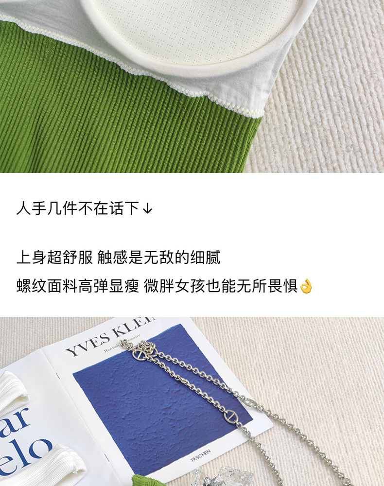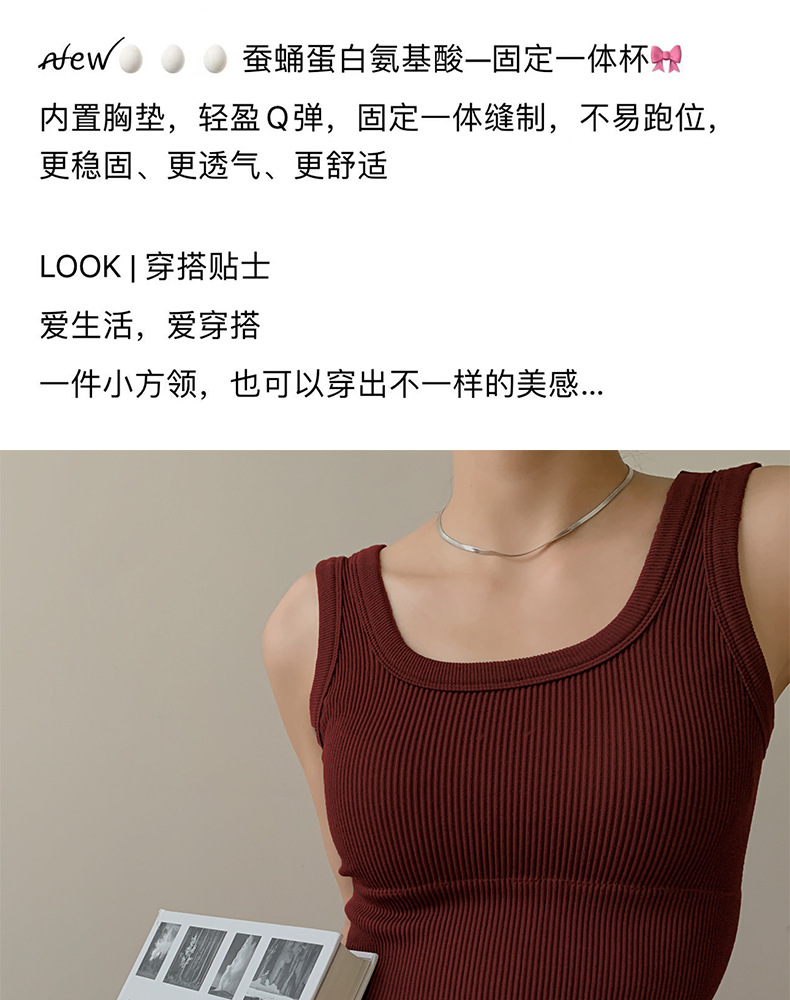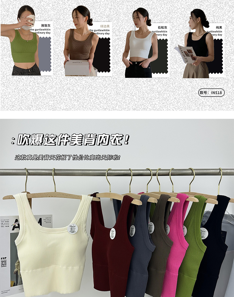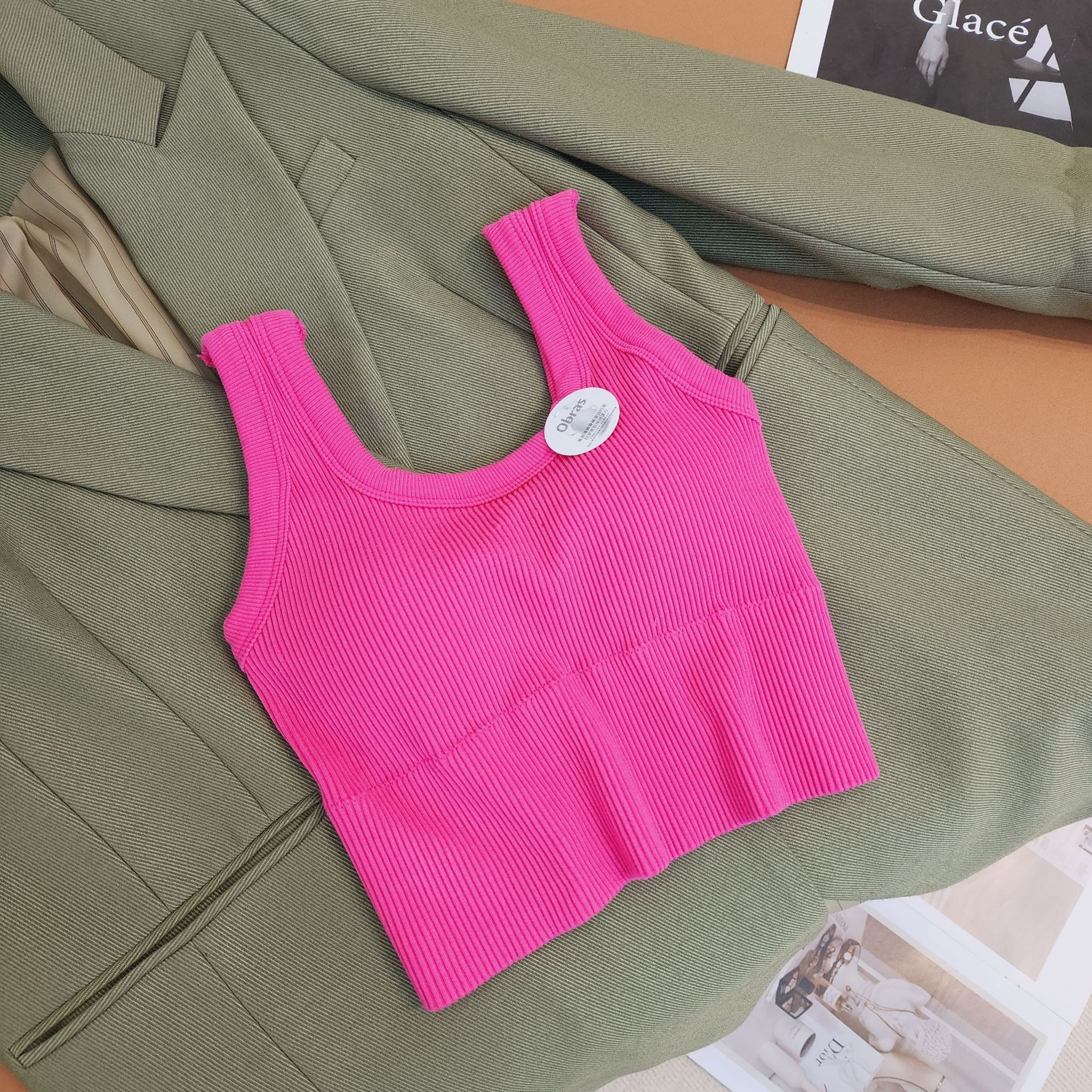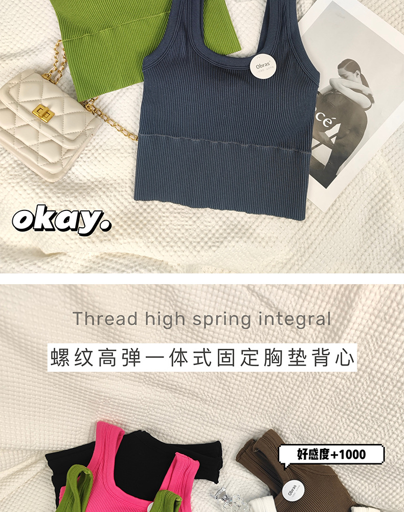 [가을신상] 여성용 짧은 배꼽 노출 대형 U-넥 가슴 패드 통합 조끼 (US 백스레드 니트 슬링 포함)
