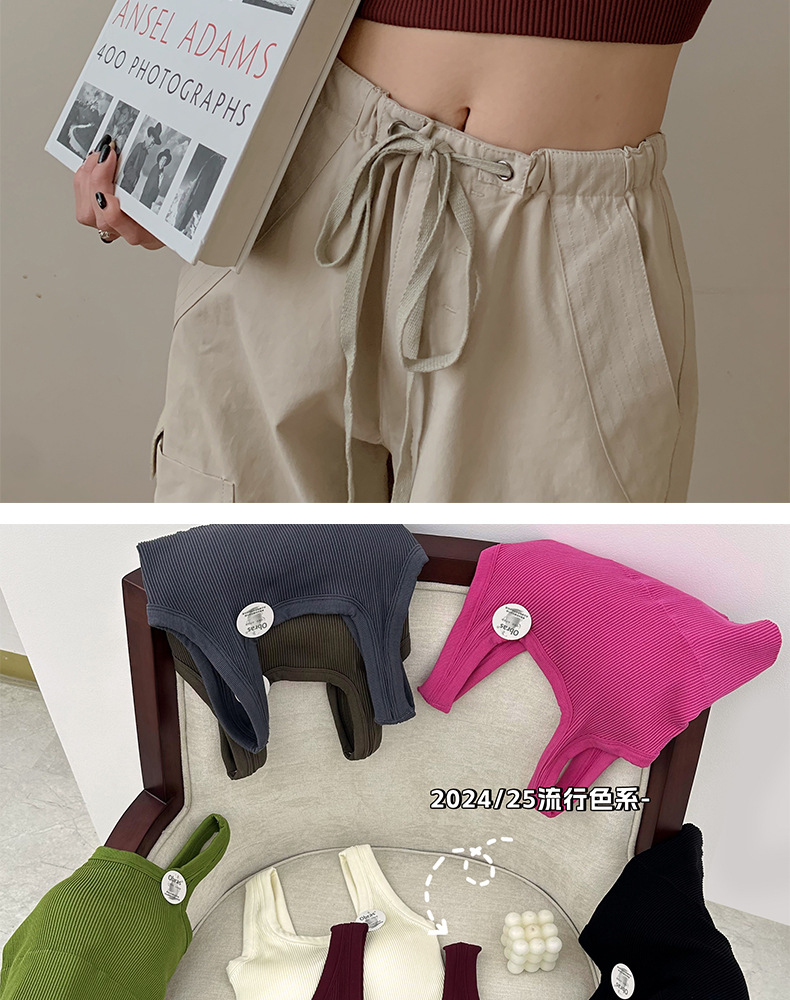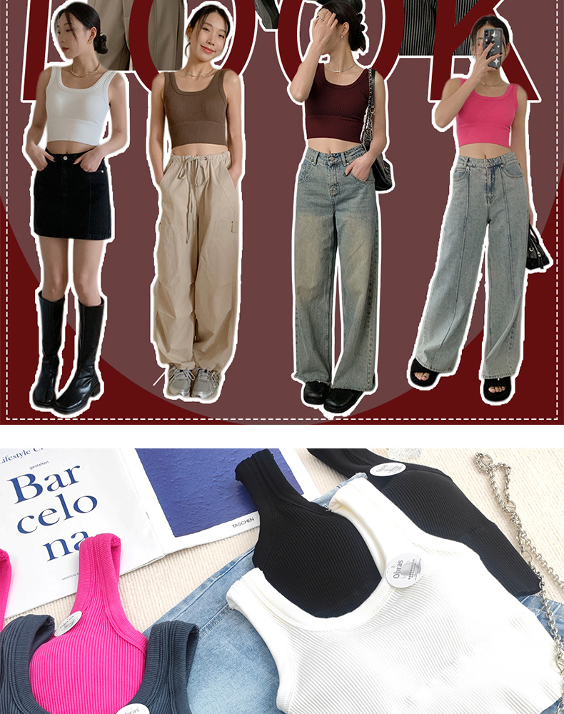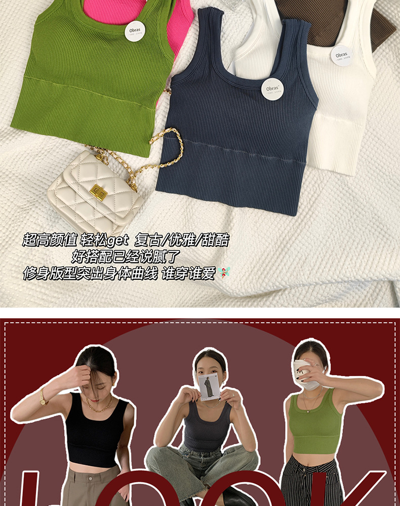 [가을신상] 여성용 짧은 배꼽 노출 대형 U-넥 가슴 패드 통합 조끼 (US 백스레드 니트 슬링 포함)스토어 가기