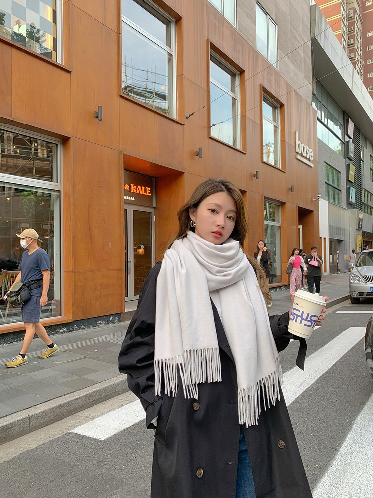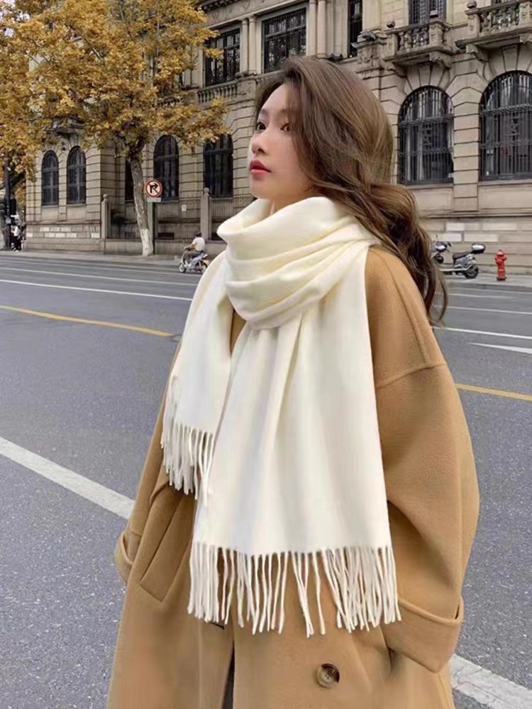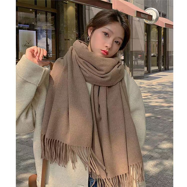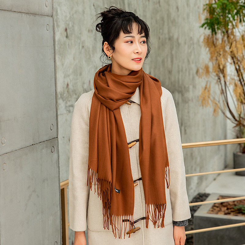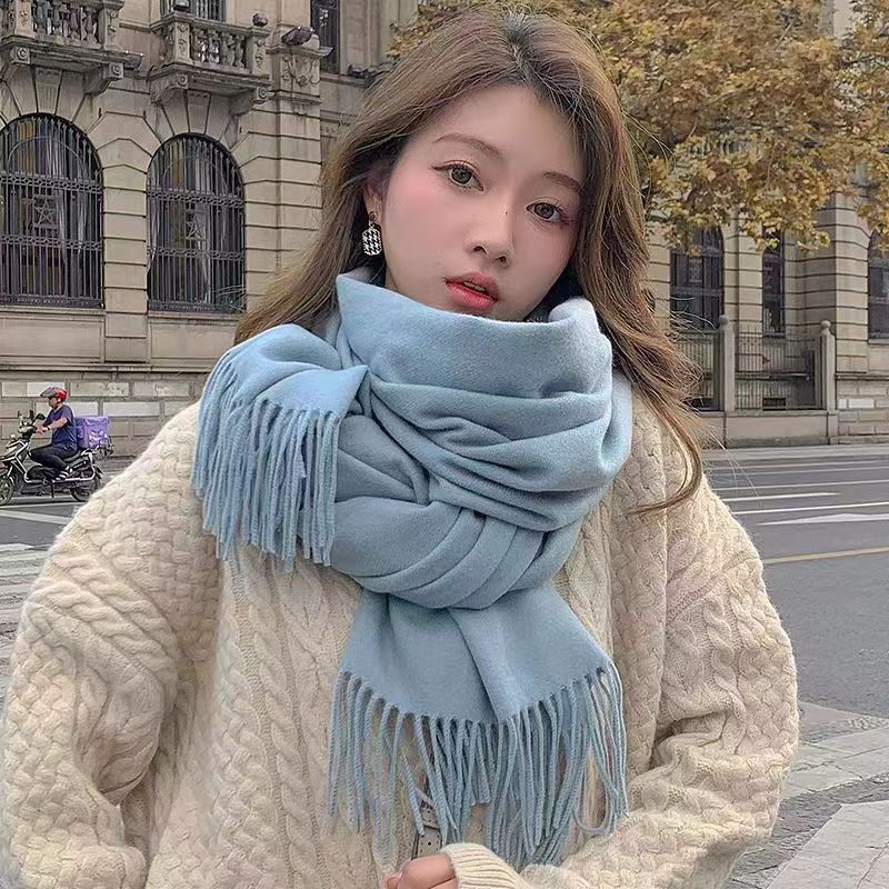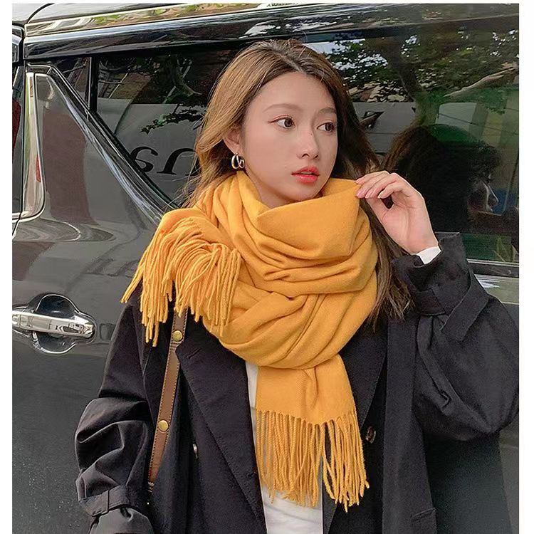 모조 캐시미어 스카프 당긴 양모 단색 두꺼운 긴 수건 가을과 겨울 비 볼 술 목도리 여성 공장 직접 새스토어 가기