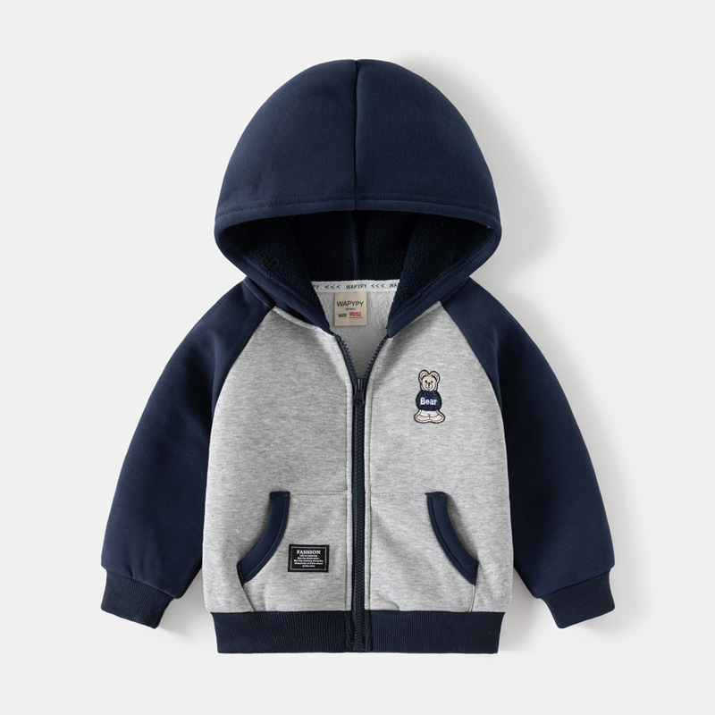 WAPYPY 아동 의류 도매 2025 가을, 겨울 새 소년 지퍼 자켓 아기 두꺼운 후드 드롭 배송