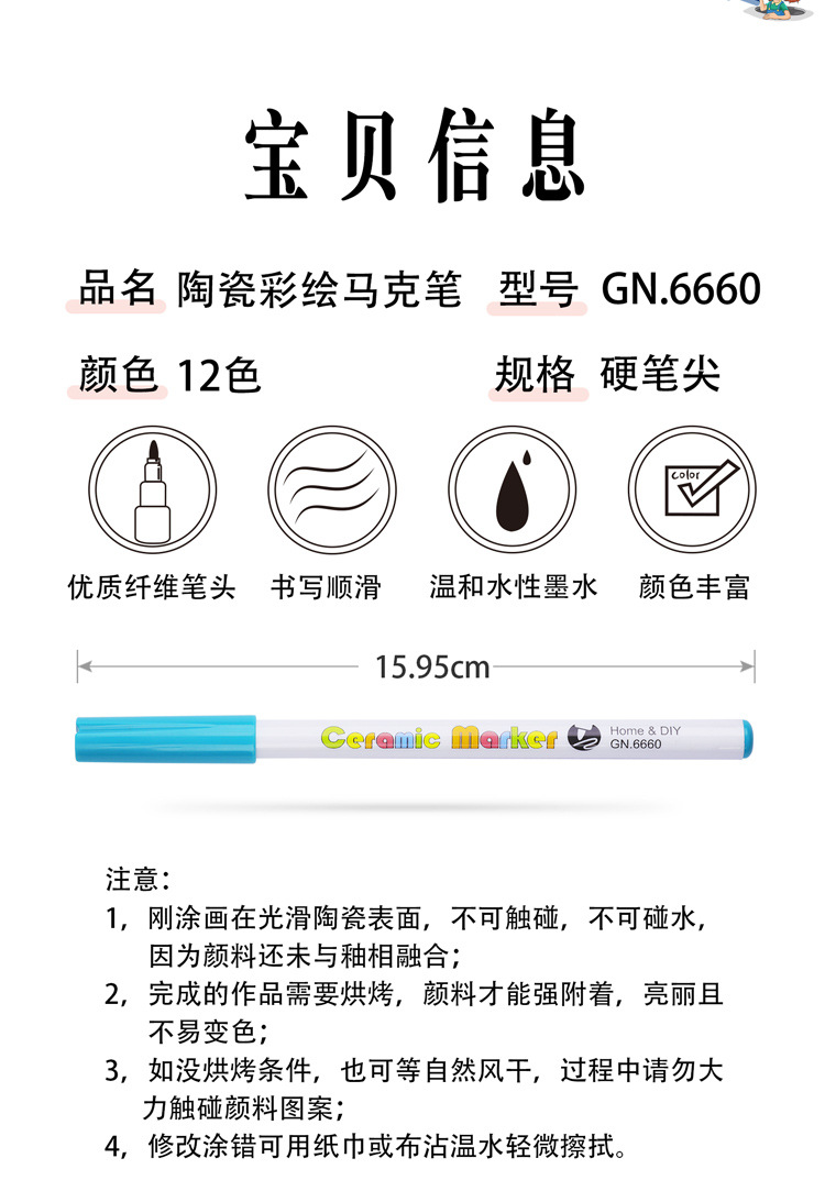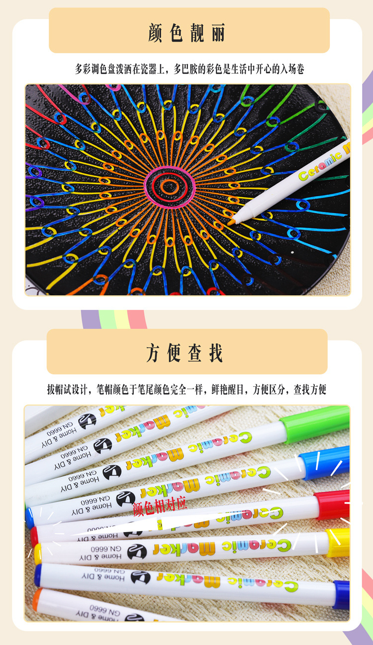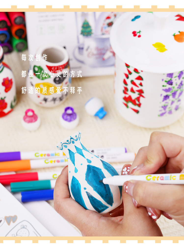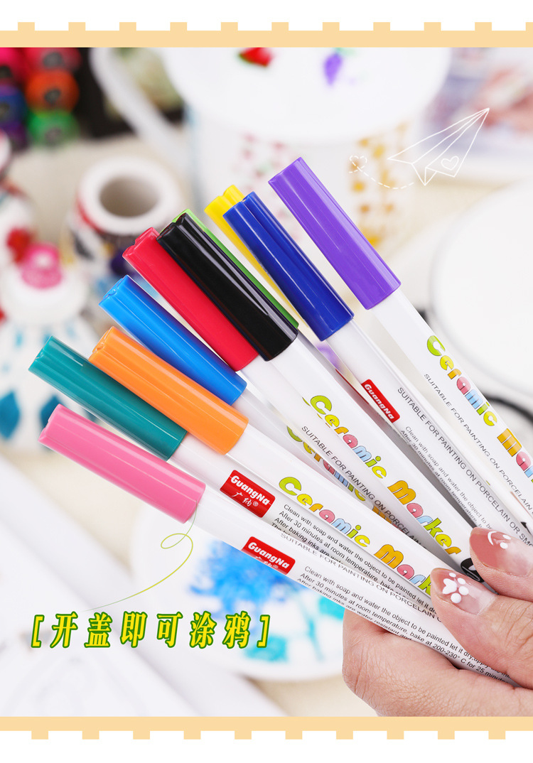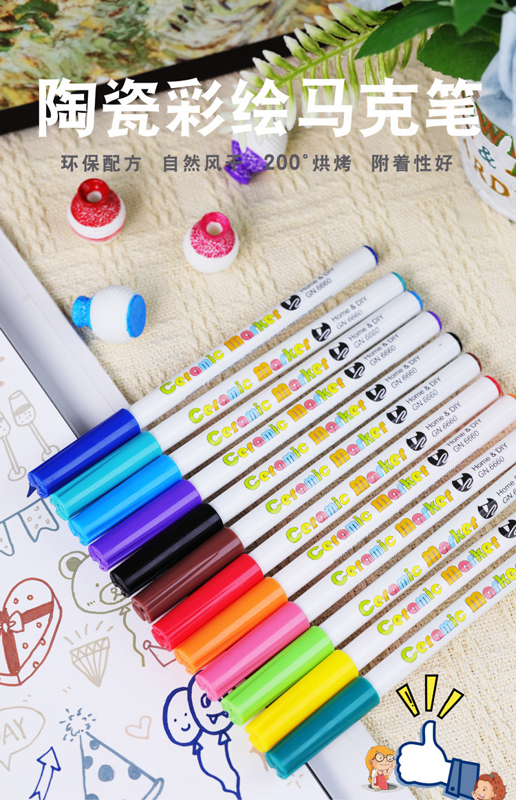 광나 6660 세라믹 마커 펜 방수 비 페이딩 DIY 도자기 낙서 펜 12 색 박스형 페인팅 아트 펜스토어 가기
