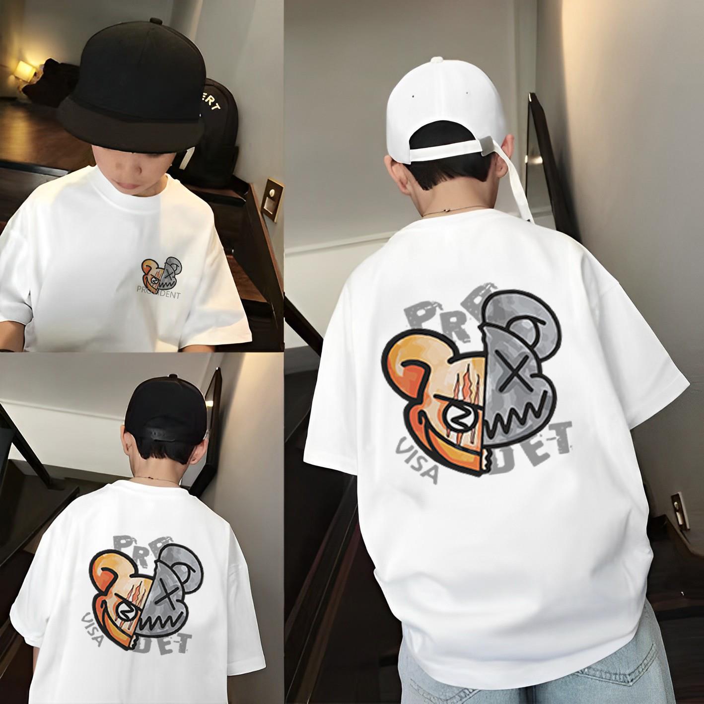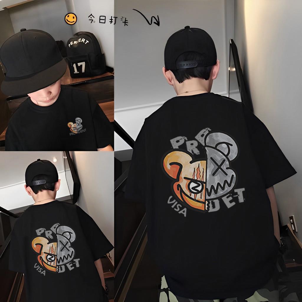 남아 면 반팔 티셔츠 대형 어린이 여름 한국 인쇄 탑 어린이 잘 생긴 소년 느슨한 티셔츠스토어 가기