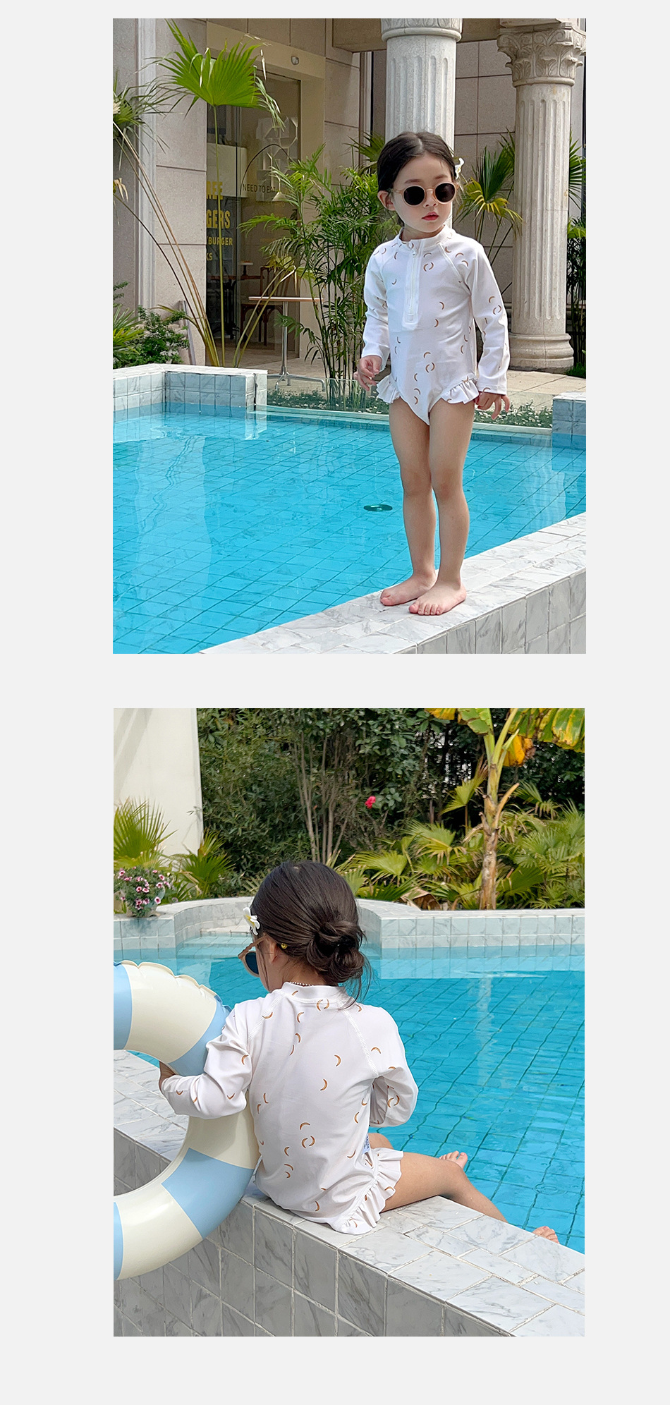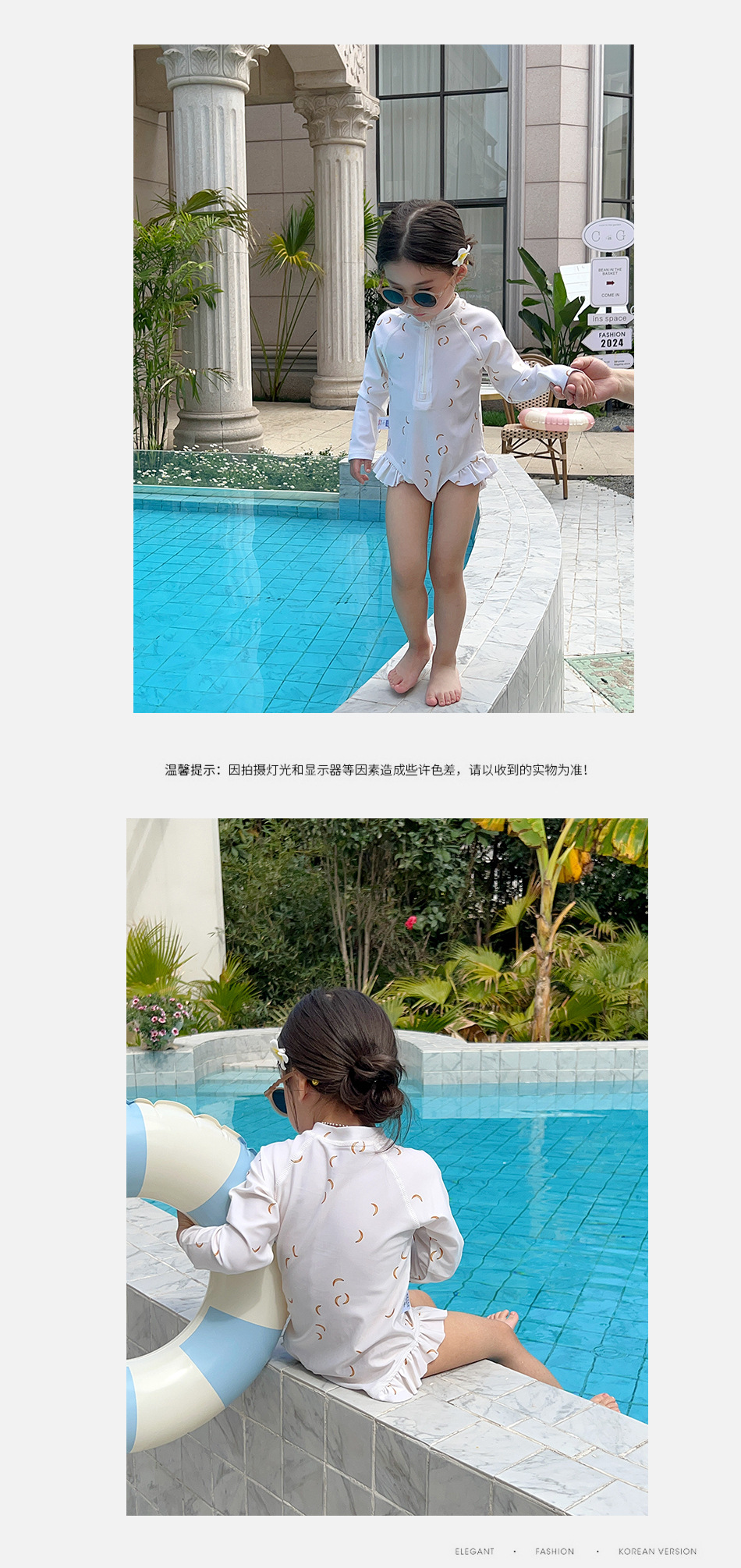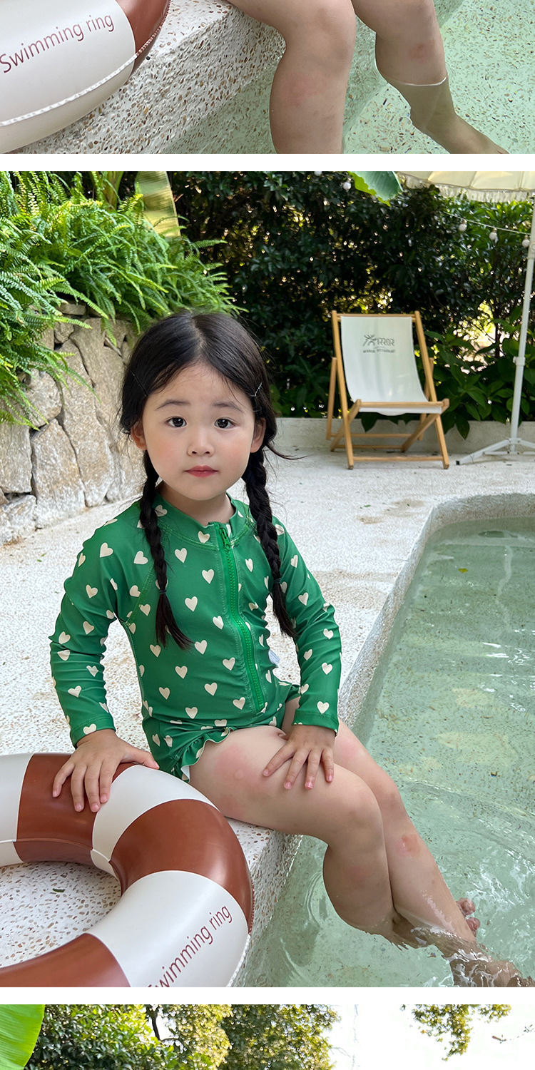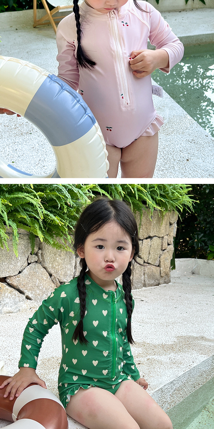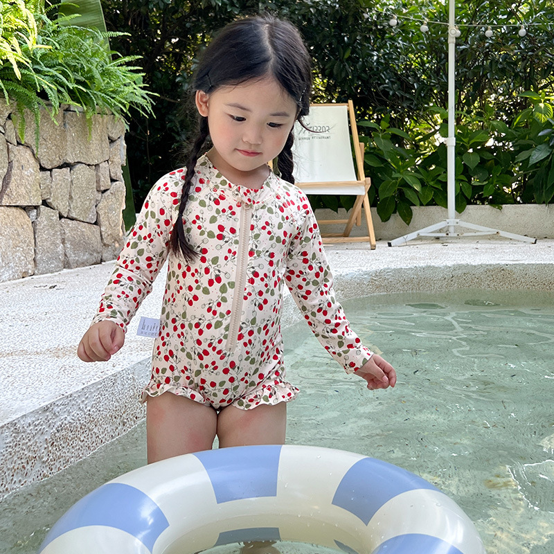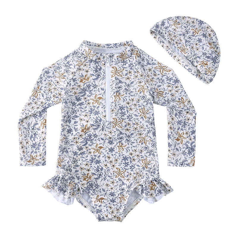 여아 여름 새로운 속건 3 색 꽃무늬 긴팔 자외선 차단제 수영복 여아 아기 어린이 외국 스타일 공주스토어 가기