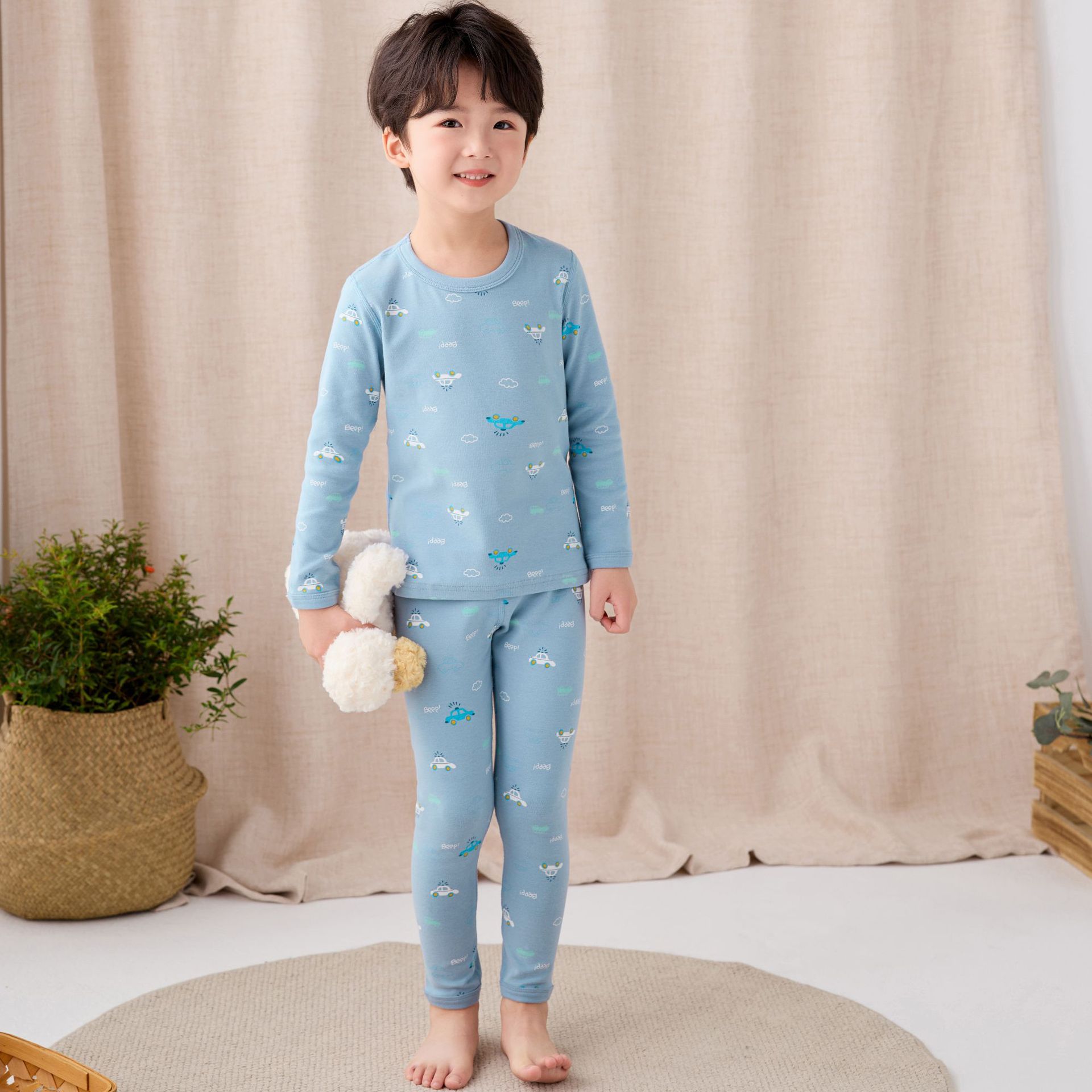가을 의류 및 가을 바지 어린이 순면 기모 가을과 겨울 소년 열 속옷 세트 뼈없는 카테고리 A 중대형 어린이 면화 스웨터스토어 가기