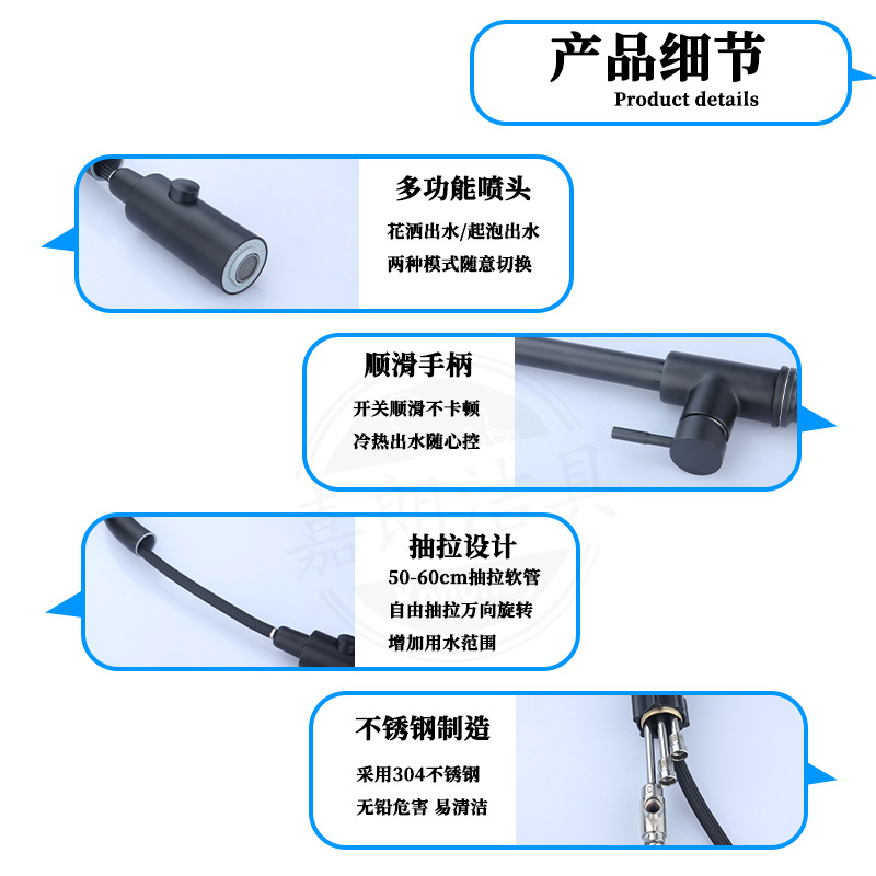 304 스테인레스 스틸 주방 비압 풀 아웃 수도꼭지 차갑고 뜨거운 야채 세면대 설거지 텔레스코픽 크로스 보더 비압 수도꼭지스토어 가기