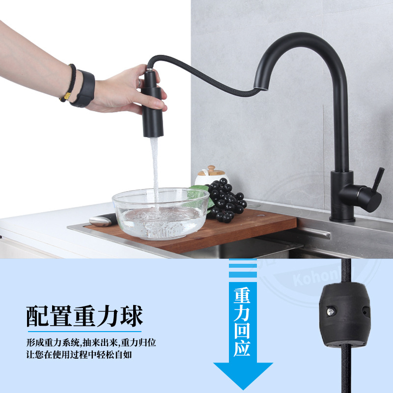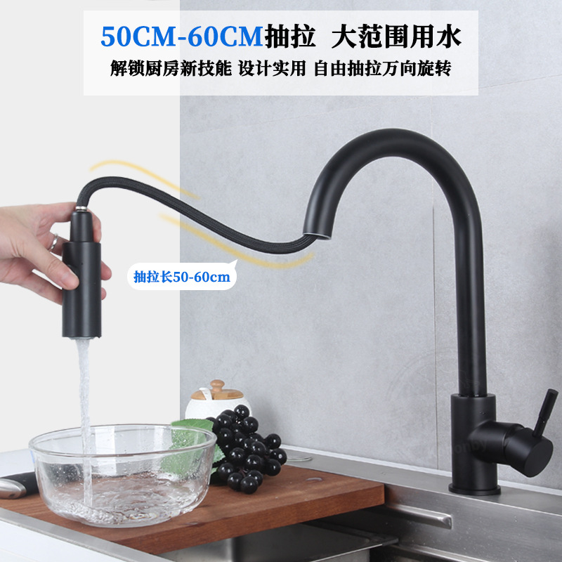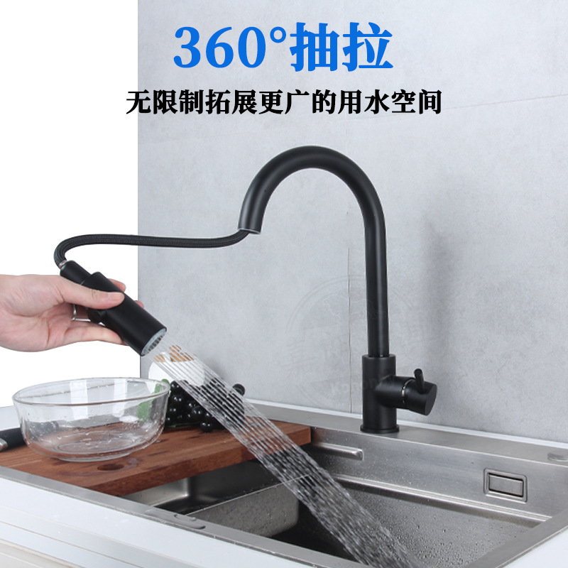 304 스테인레스 스틸 주방 비압 풀 아웃 수도꼭지 차갑고 뜨거운 야채 세면대 설거지 텔레스코픽 크로스 보더 비압 수도꼭지