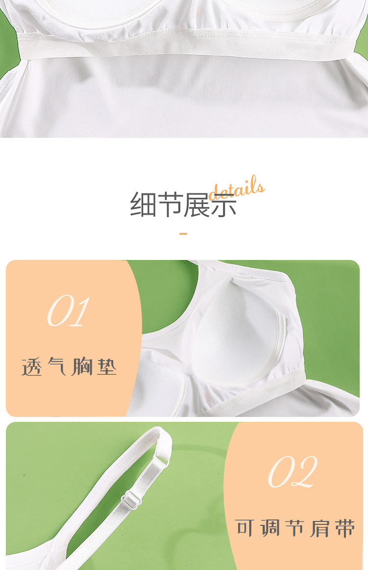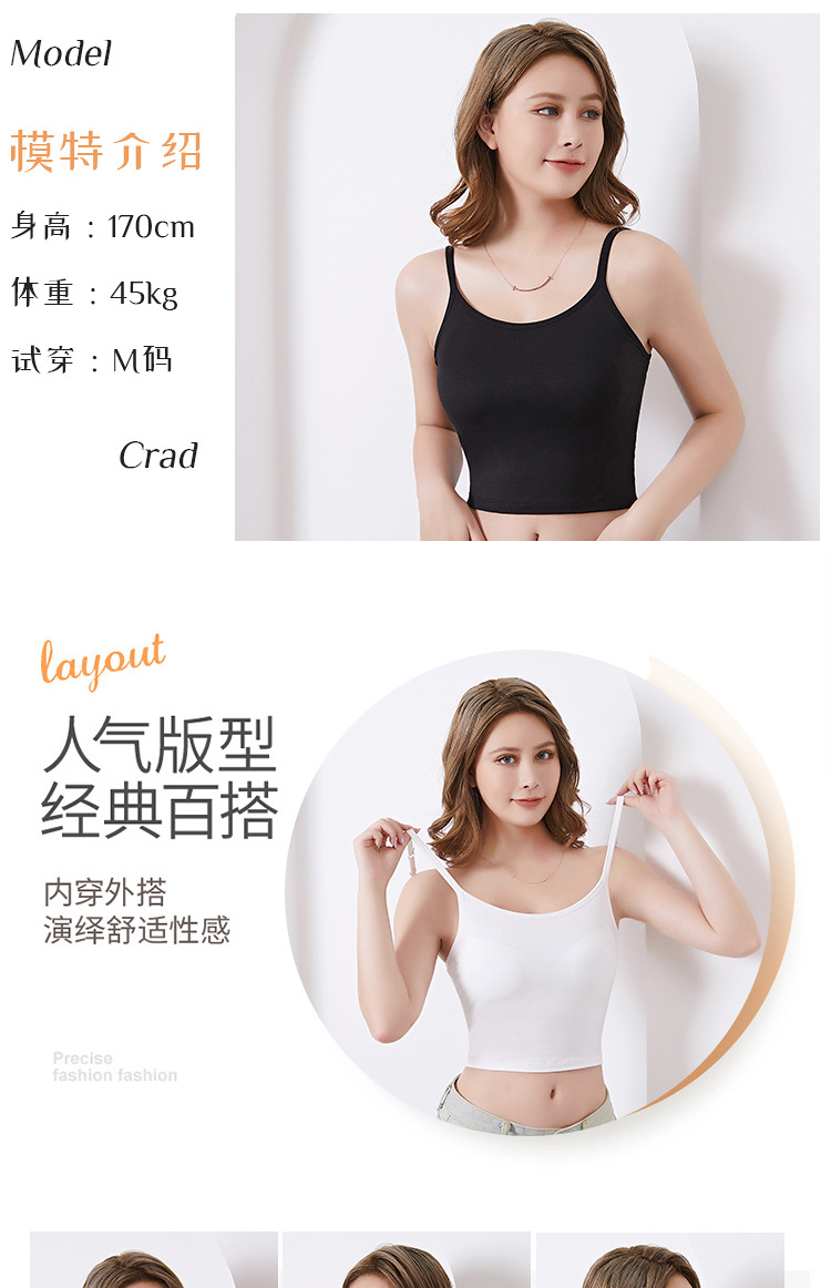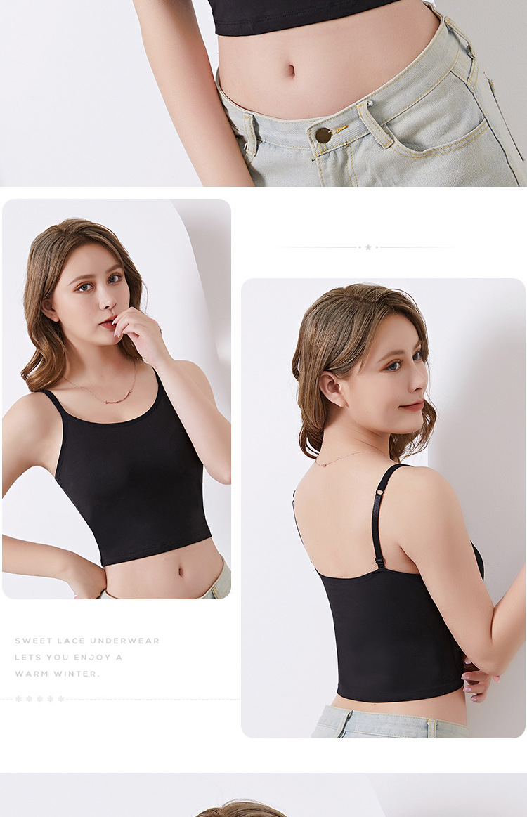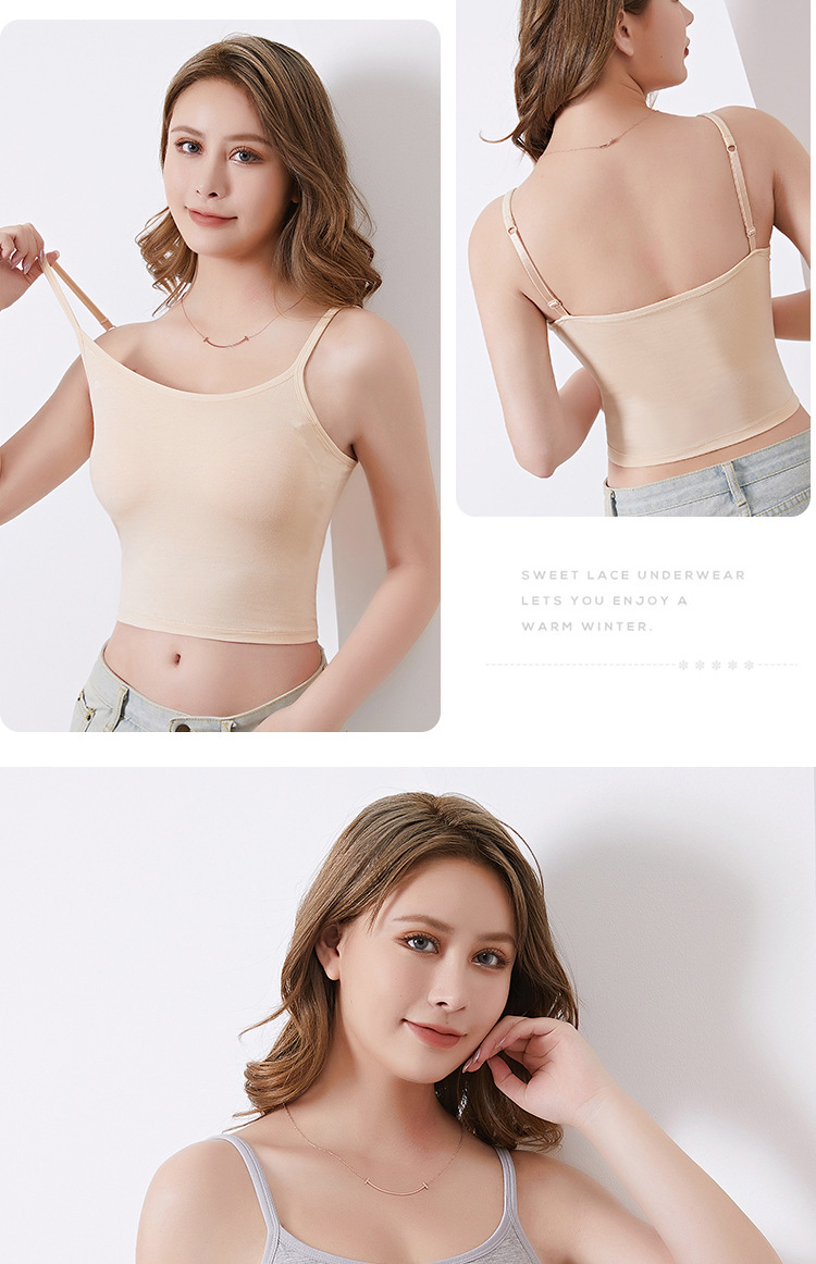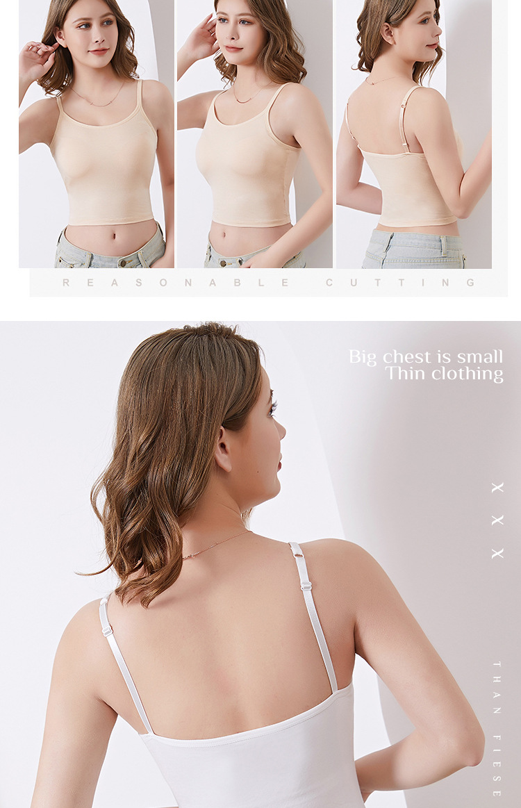 모달 슬링 조끼 벨트 가슴 패드 고정 컵 조절 가능한 어깨 스트랩 플러스 사이즈 베이스 내부 원피스 짧은 아름다운 뒤