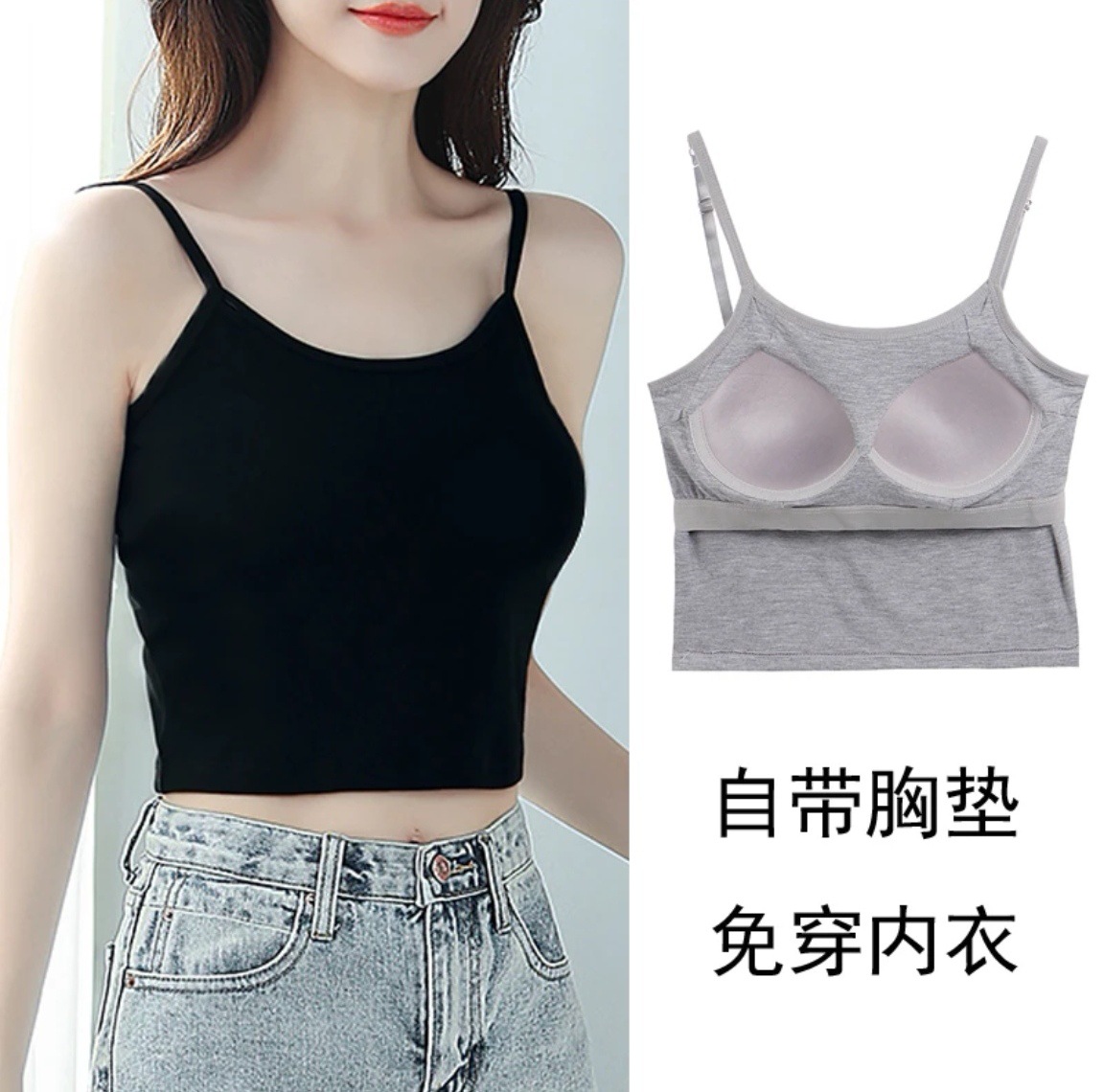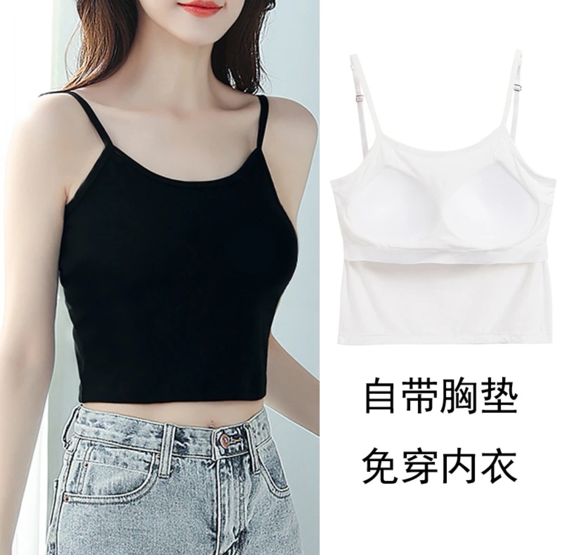 모달 슬링 조끼 벨트 가슴 패드 고정 컵 조절 가능한 어깨 스트랩 플러스 사이즈 베이스 내부 원피스 짧은 아름다운 뒤스토어 가기