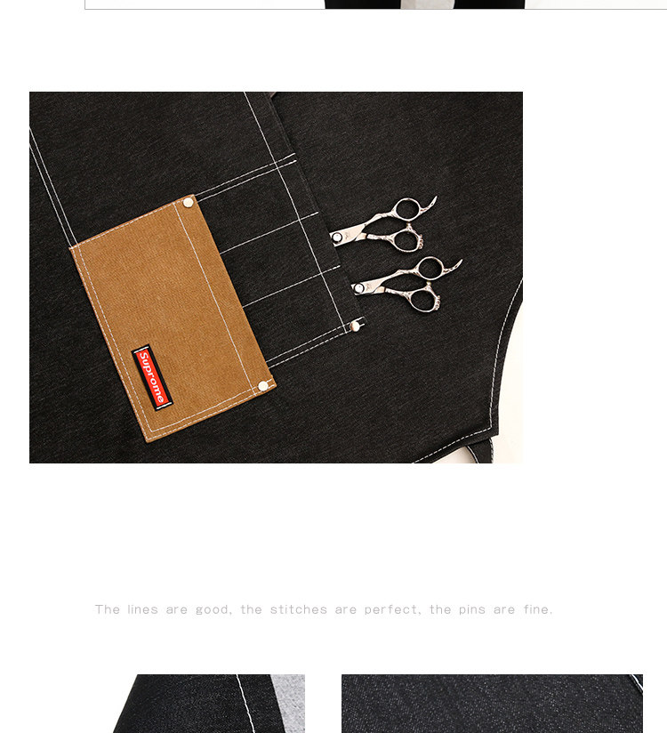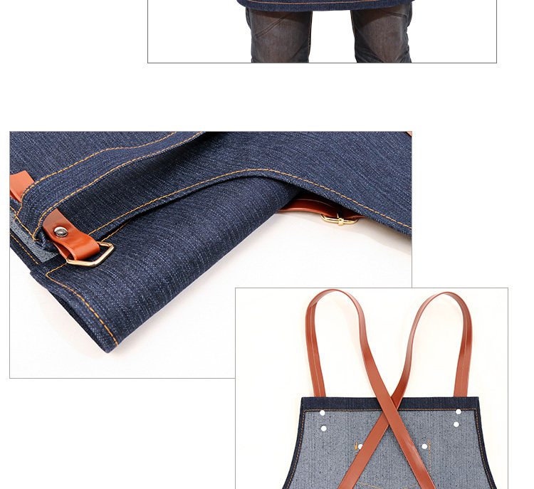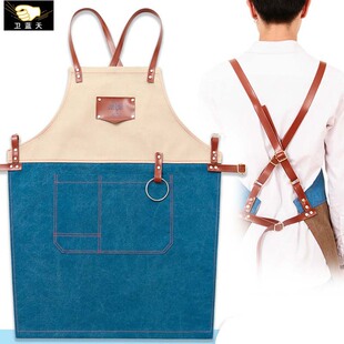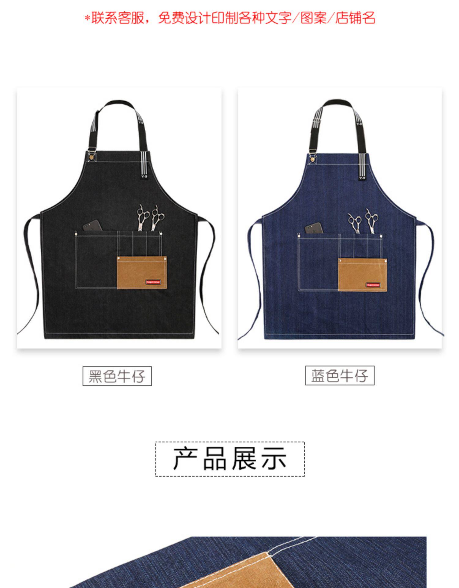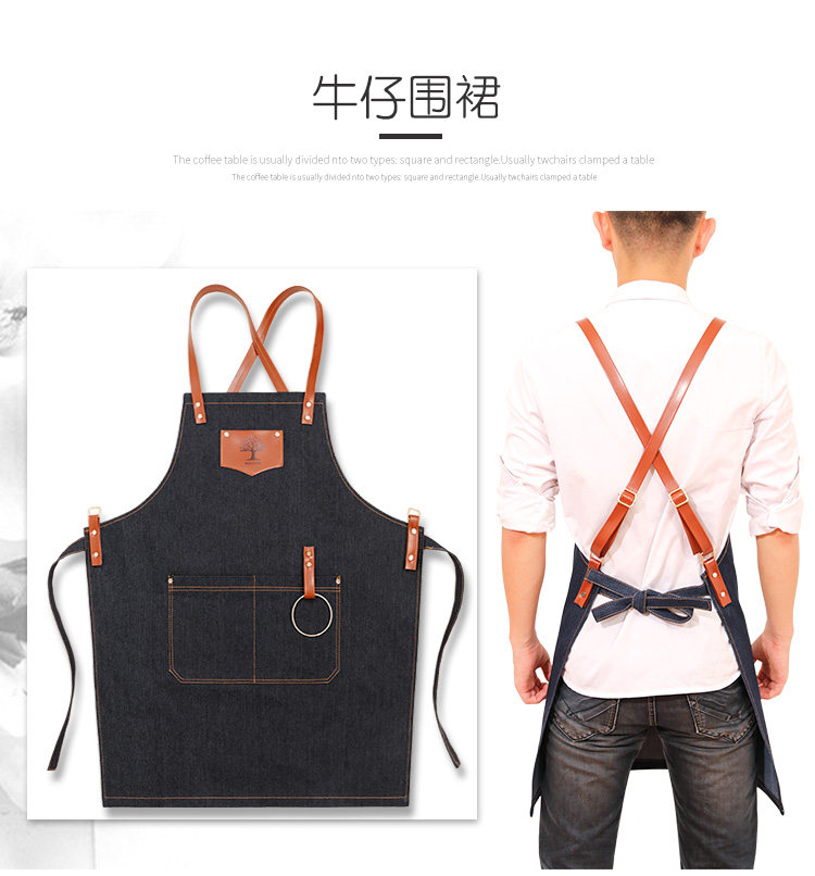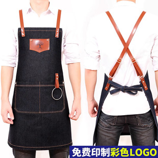 맞춤형 데님 앞치마, 이발소, 밀크티 카페, 웨이터 작업복, 남성용 PU 가죽 벨트 작업복 맞춤 제작스토어 가기