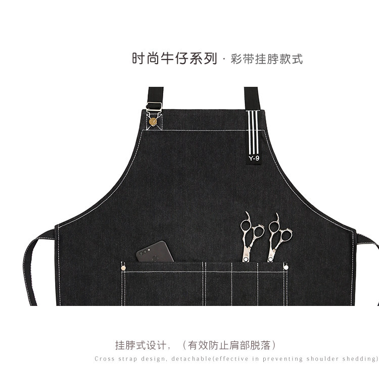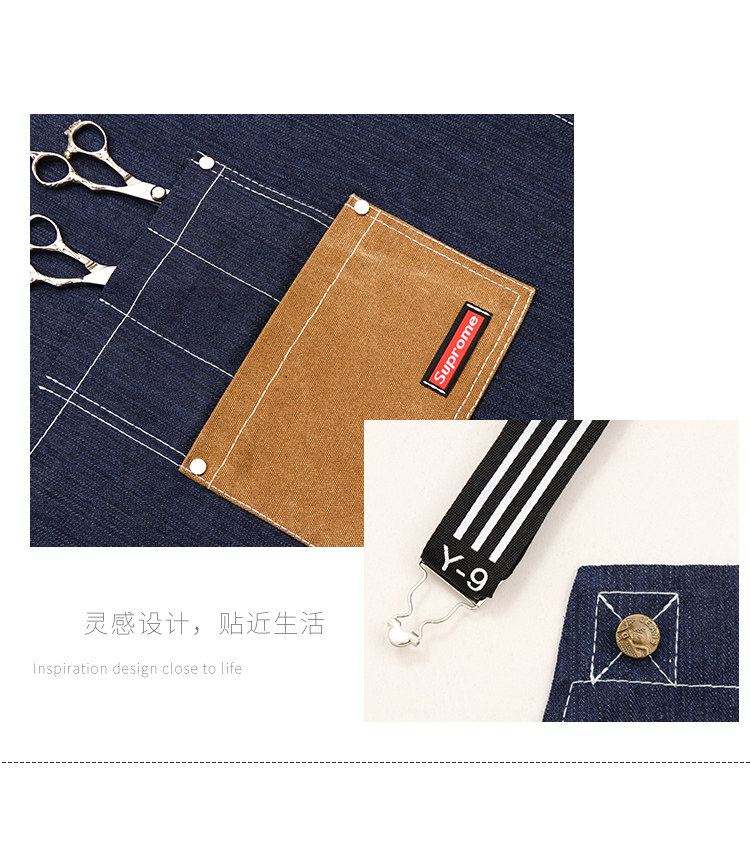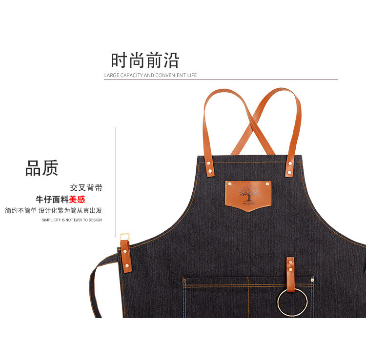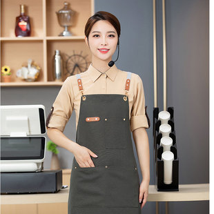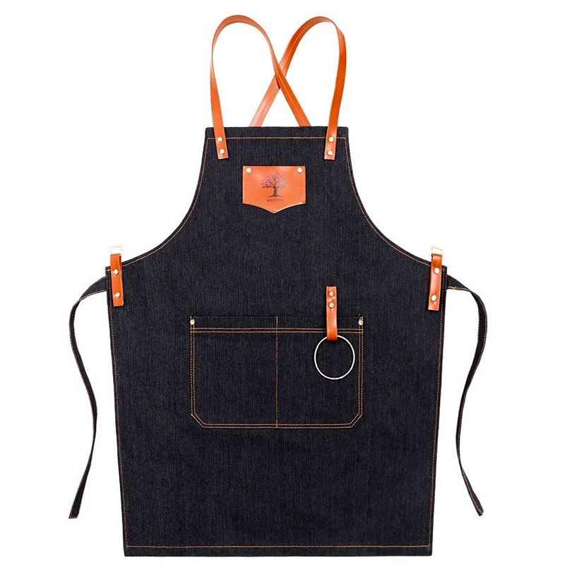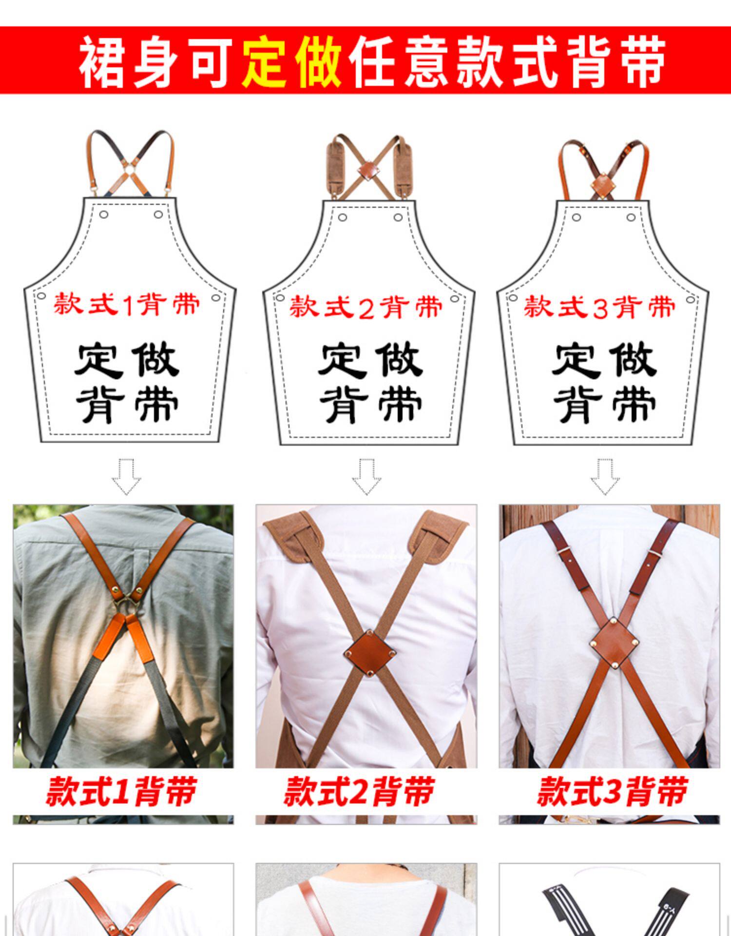 맞춤형 데님 앞치마, 이발소, 밀크티 카페, 웨이터 작업복, 남성용 PU 가죽 벨트 작업복 맞춤 제작스토어 가기
