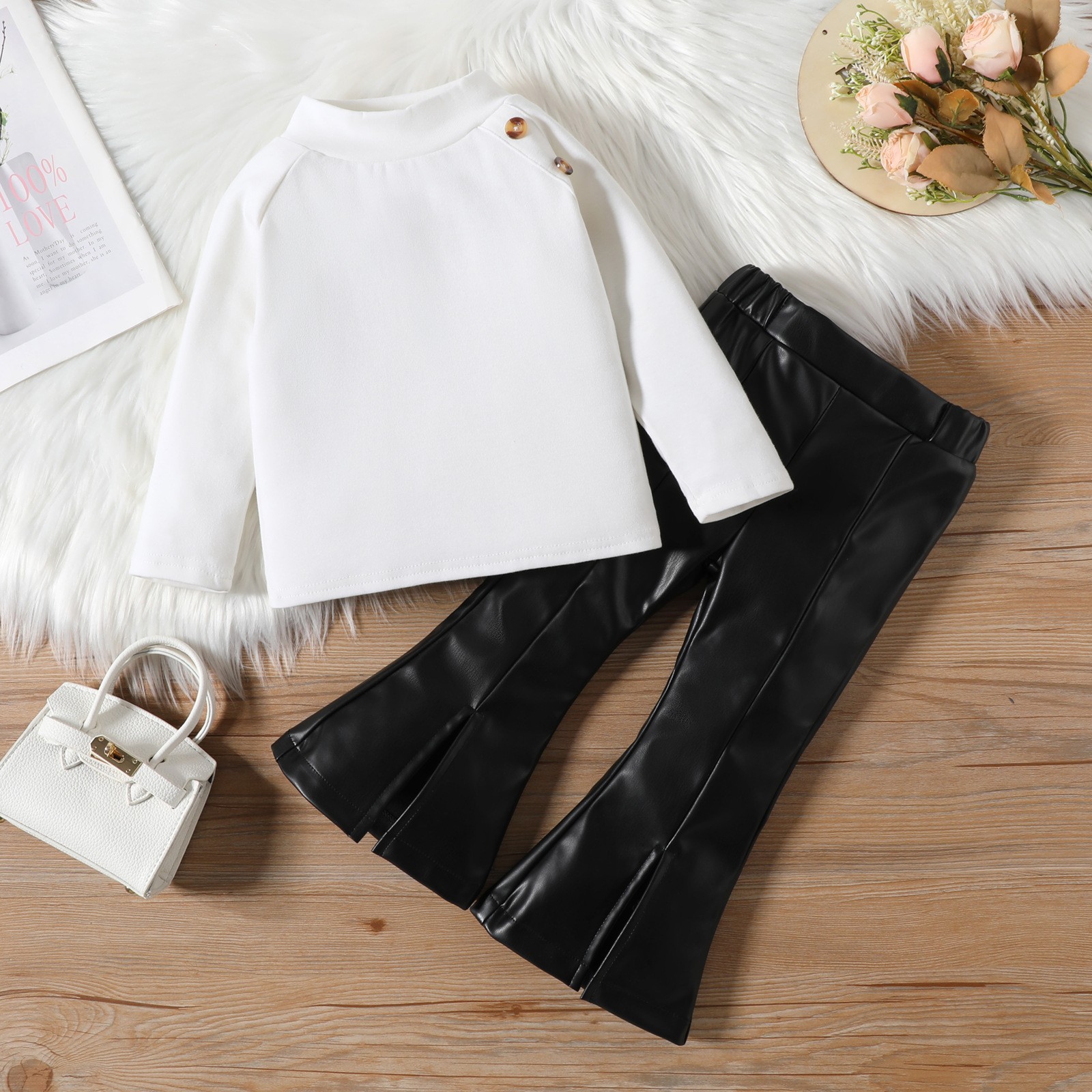 Baopin 어린이 착용 유럽과 미국 가을과 겨울 긴 소매 버튼 탑 패션 PU 가죽 스플릿 혼 가죽 바지 세트