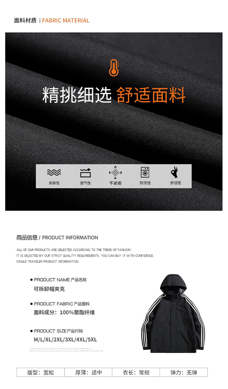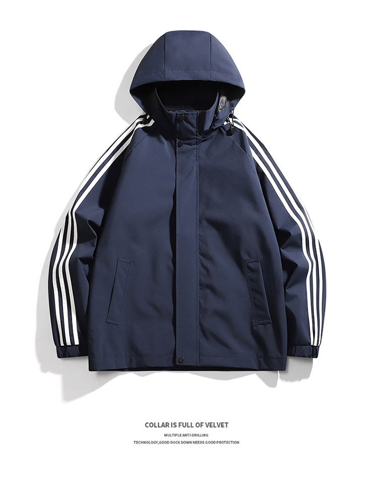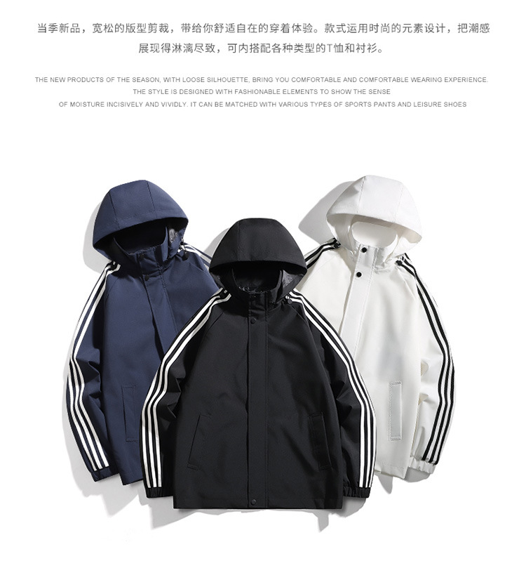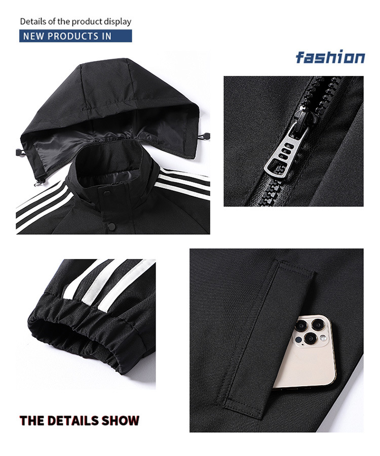 재킷 남성용 봄과 가을 새로운 트렌디 남성 스포츠 캐주얼 3 바 이동식 후드 트렌디 작업복 윈드 브레이커 재킷 남성용