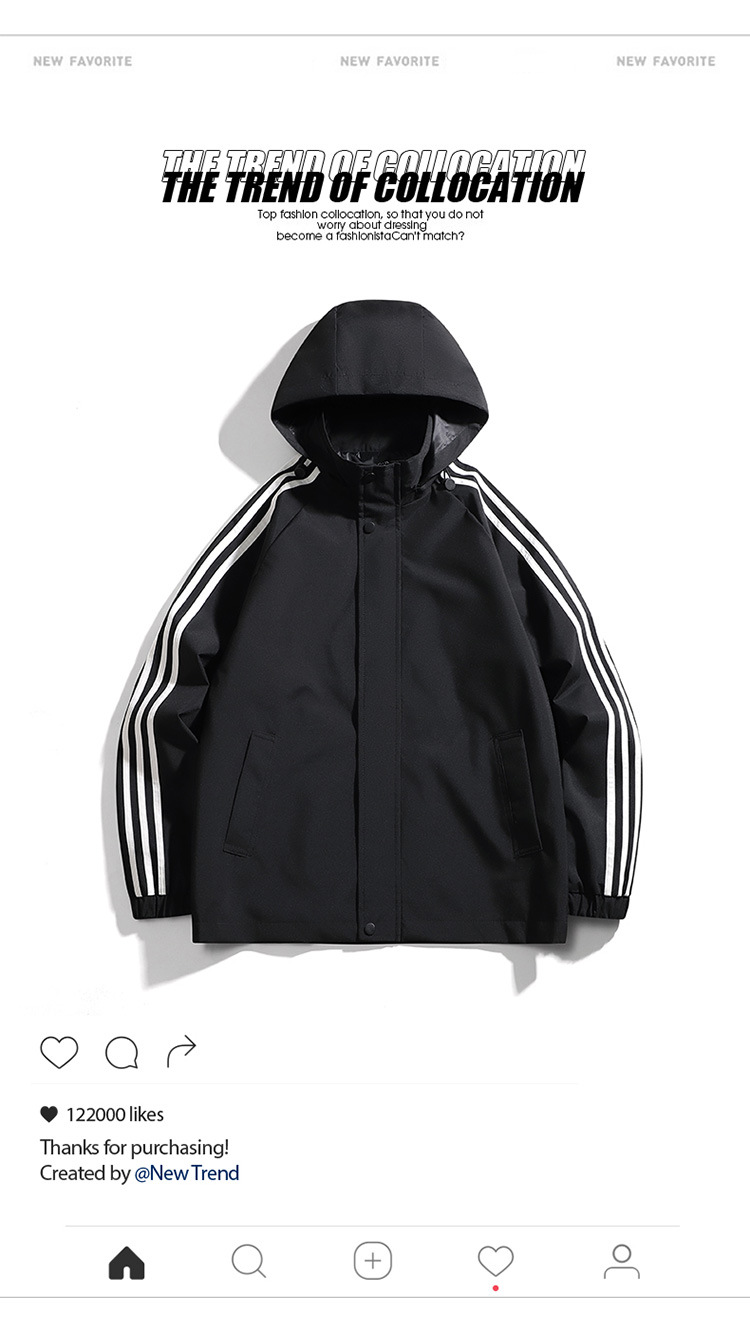 재킷 남성용 봄과 가을 새로운 트렌디 남성 스포츠 캐주얼 3 바 이동식 후드 트렌디 작업복 윈드 브레이커 재킷 남성용스토어 가기