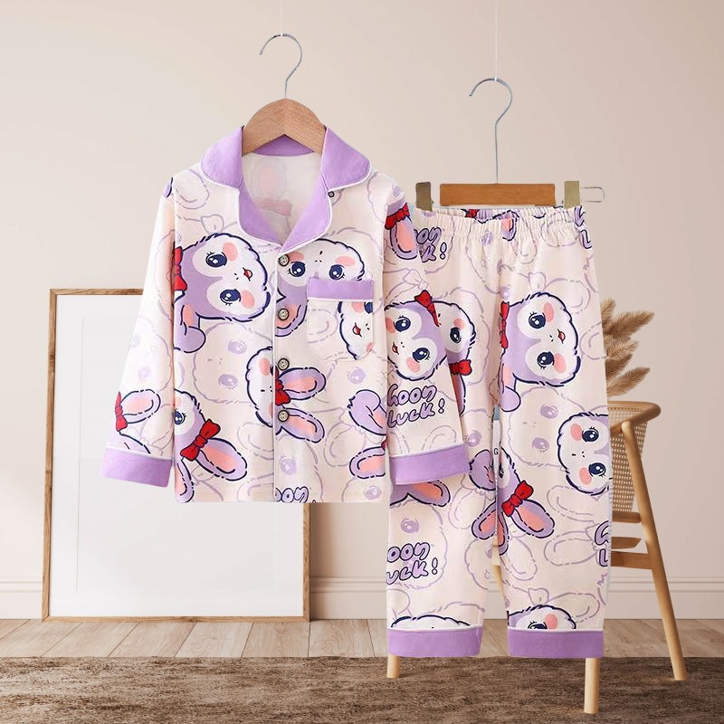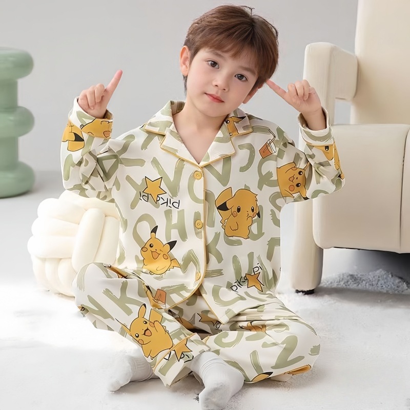 아동 잠옷 클래스 A 면 봄, 가을 소년 만화 긴팔 카디건 홈웨어 라펠 캐주얼 소녀 정장
