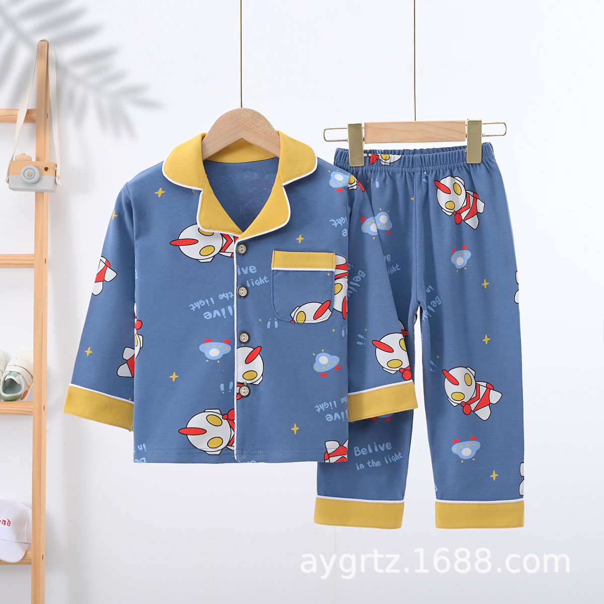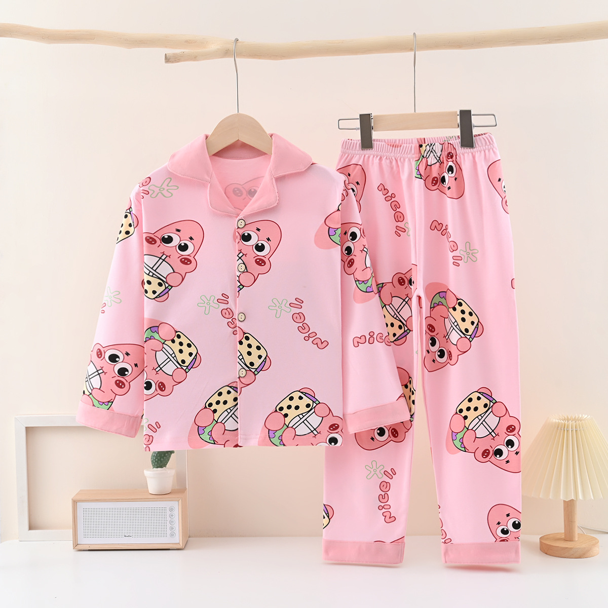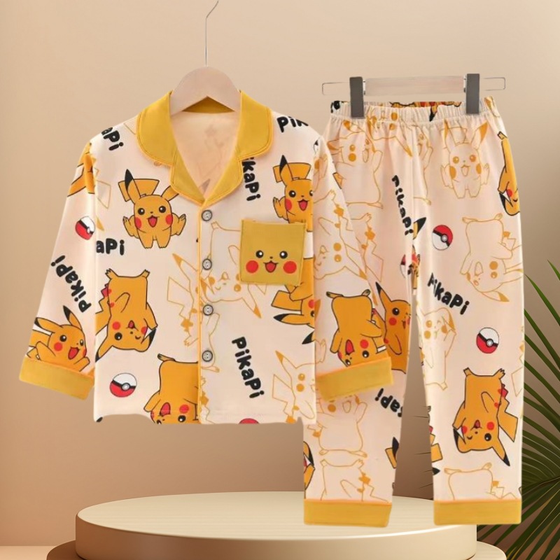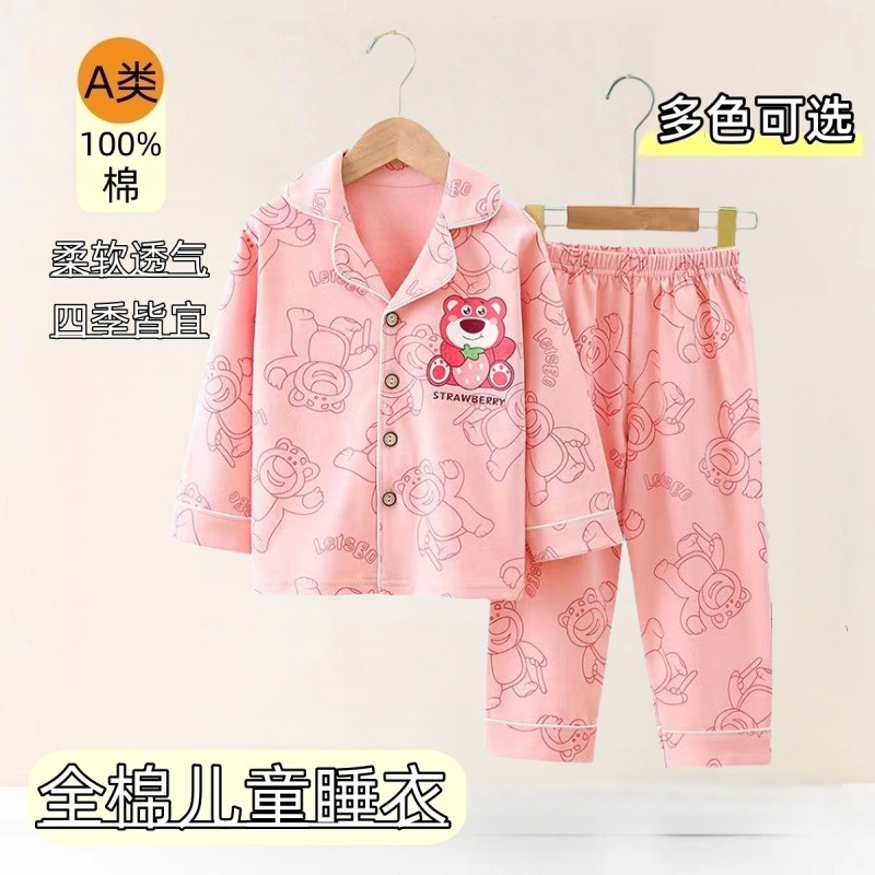 아동 잠옷 클래스 A 면 봄, 가을 소년 만화 긴팔 카디건 홈웨어 라펠 캐주얼 소녀 정장스토어 가기