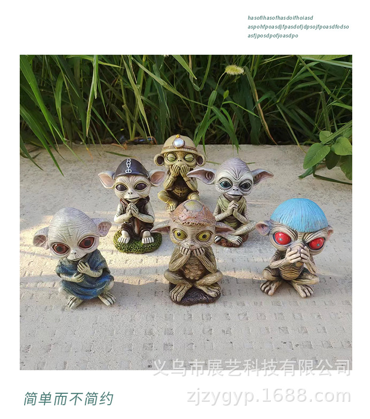 국경 간 새로운 외계인 정원 조각 할로윈 외계인 정원 조각 수지 공예스토어 가기