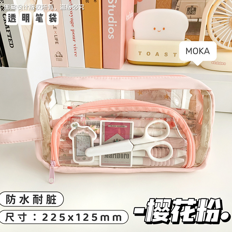 New ins 스타일 하이 컬러 값 더블 레이어 펜 가방 도매 대용량 휴대용 문구 수납 가방 연필 상자 심플스토어 가기