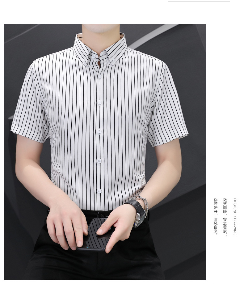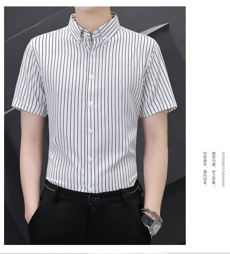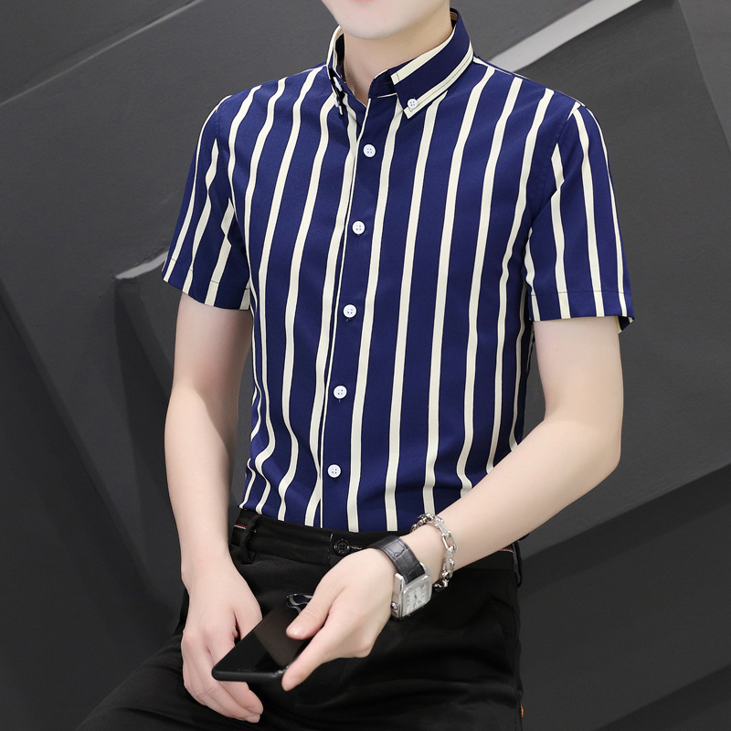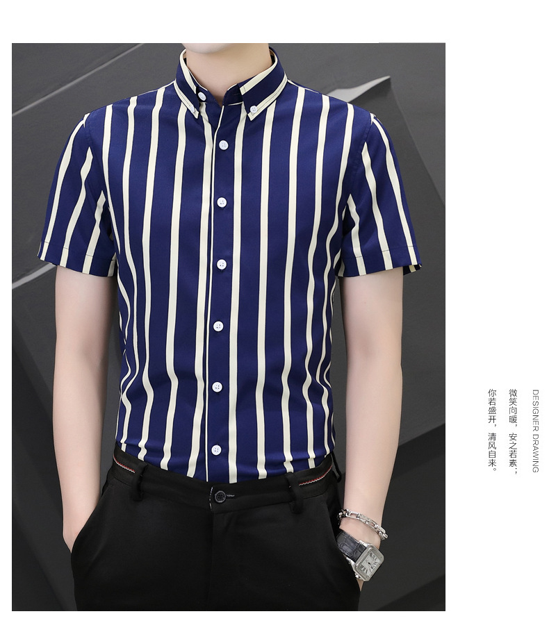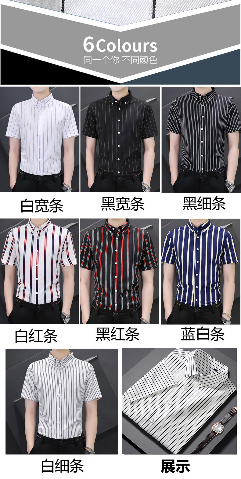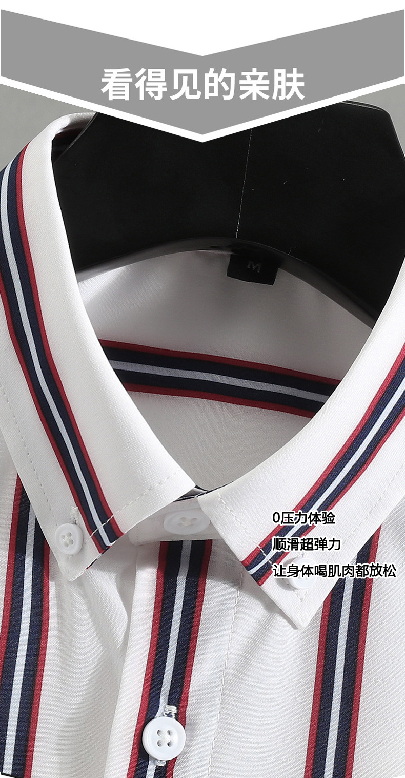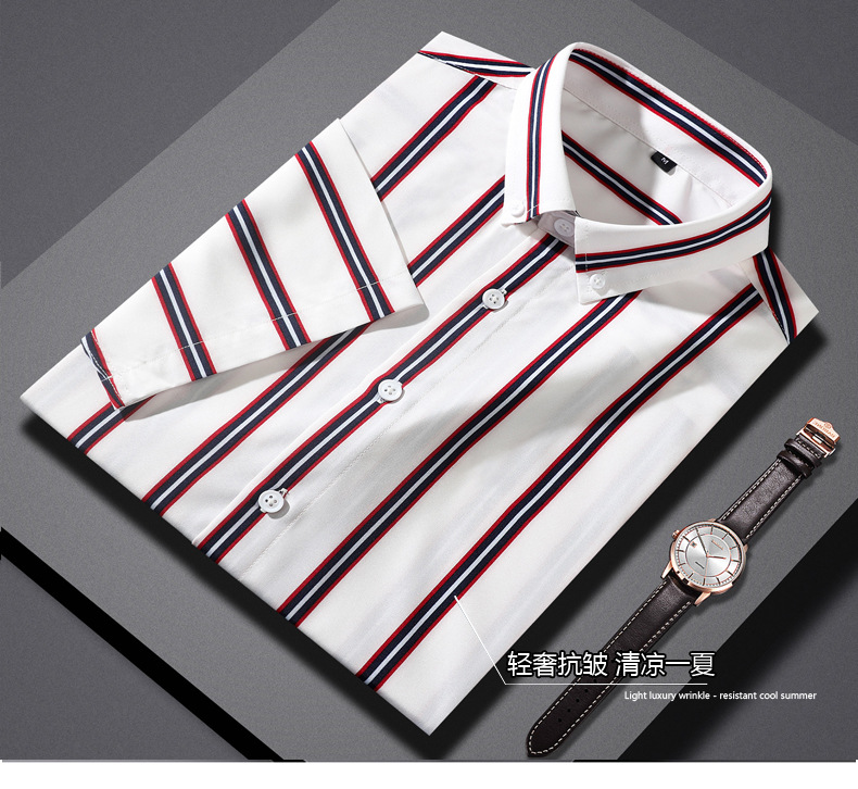 국경 간 대외 무역 세대 Four Seasons 남성 사각 칼라 셔츠 고품질 탄성 안티 주름 스트라이프 반팔 셔츠