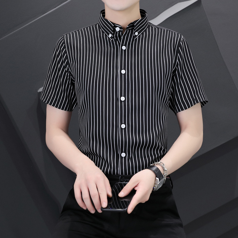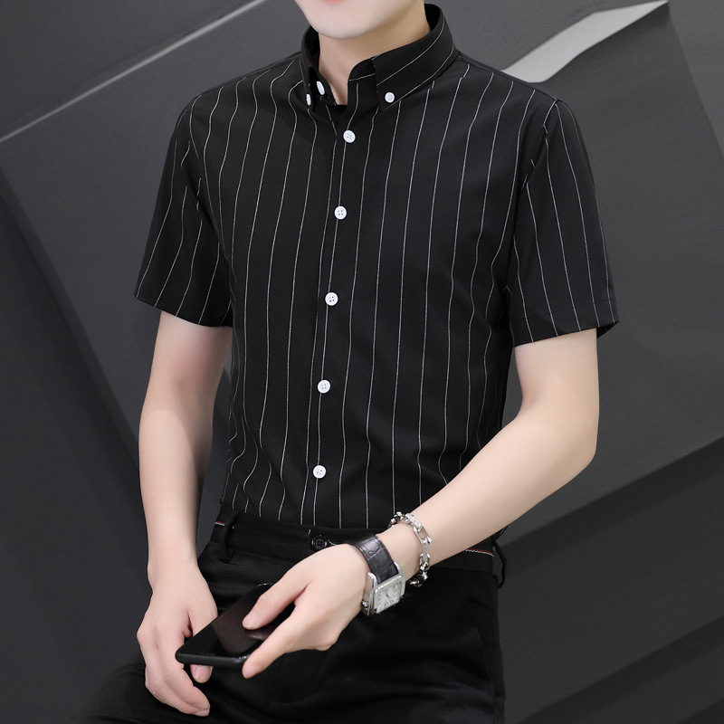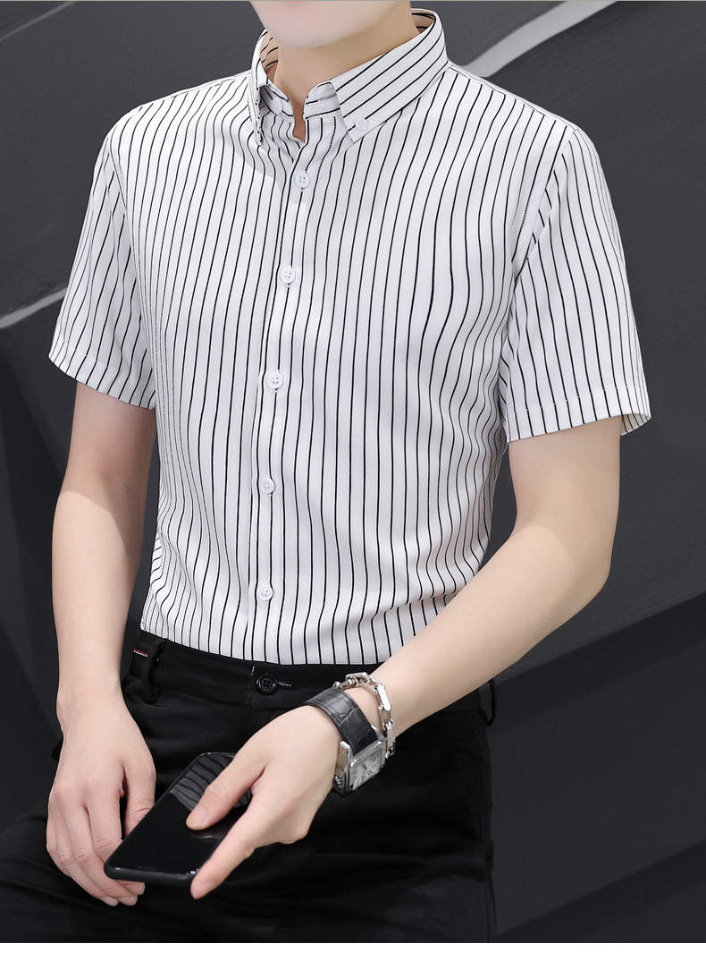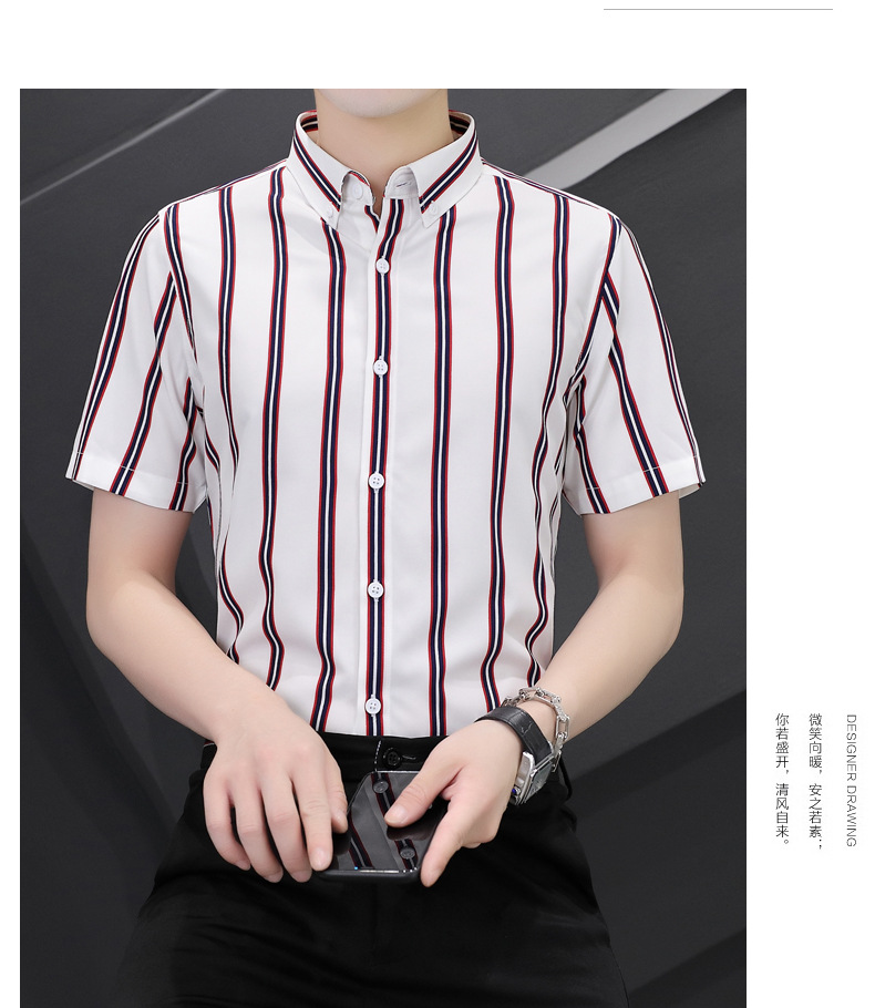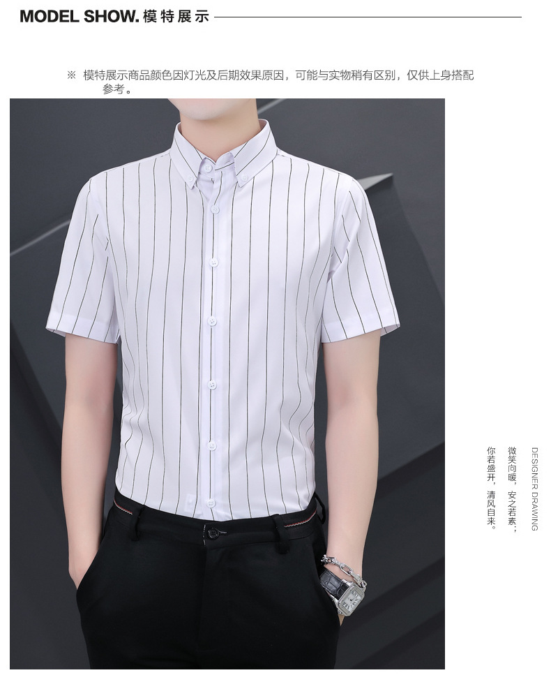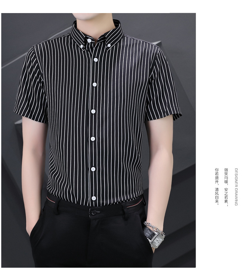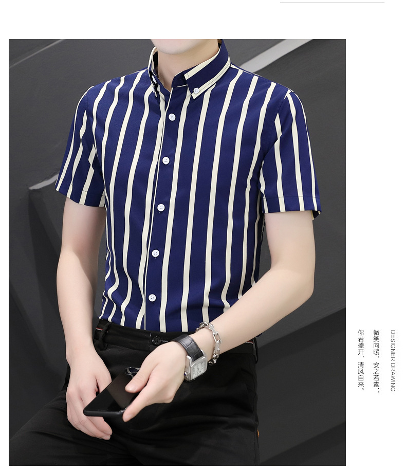 국경 간 대외 무역 세대 Four Seasons 남성 사각 칼라 셔츠 고품질 탄성 안티 주름 스트라이프 반팔 셔츠
