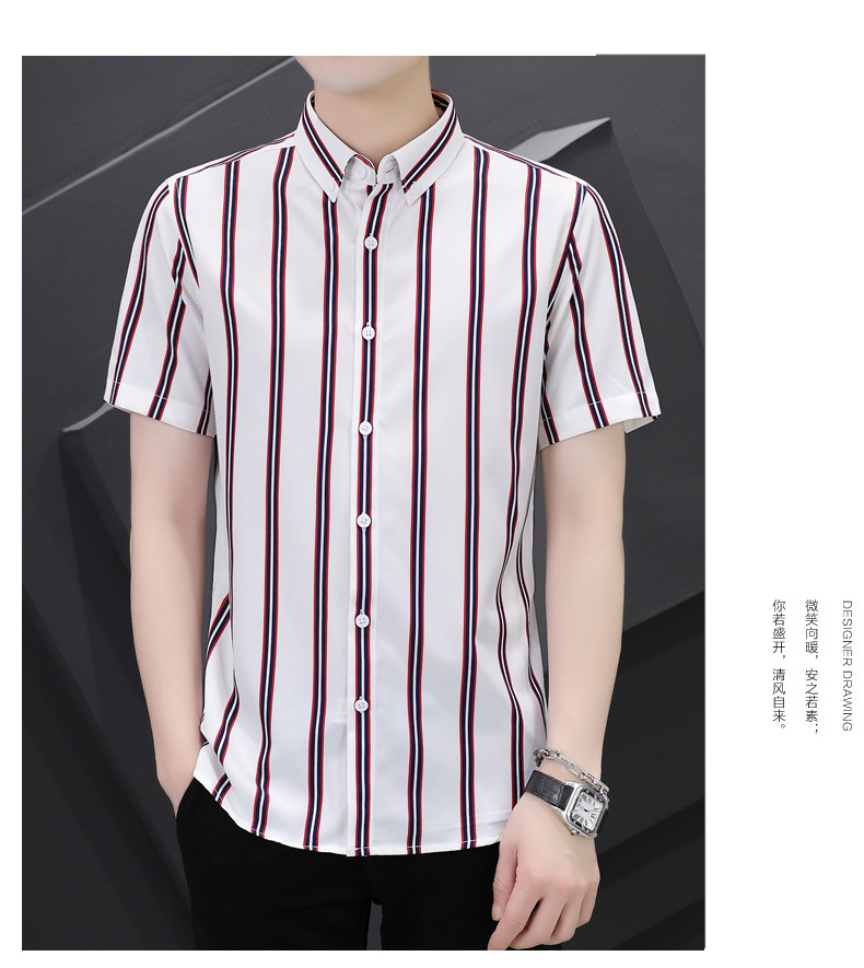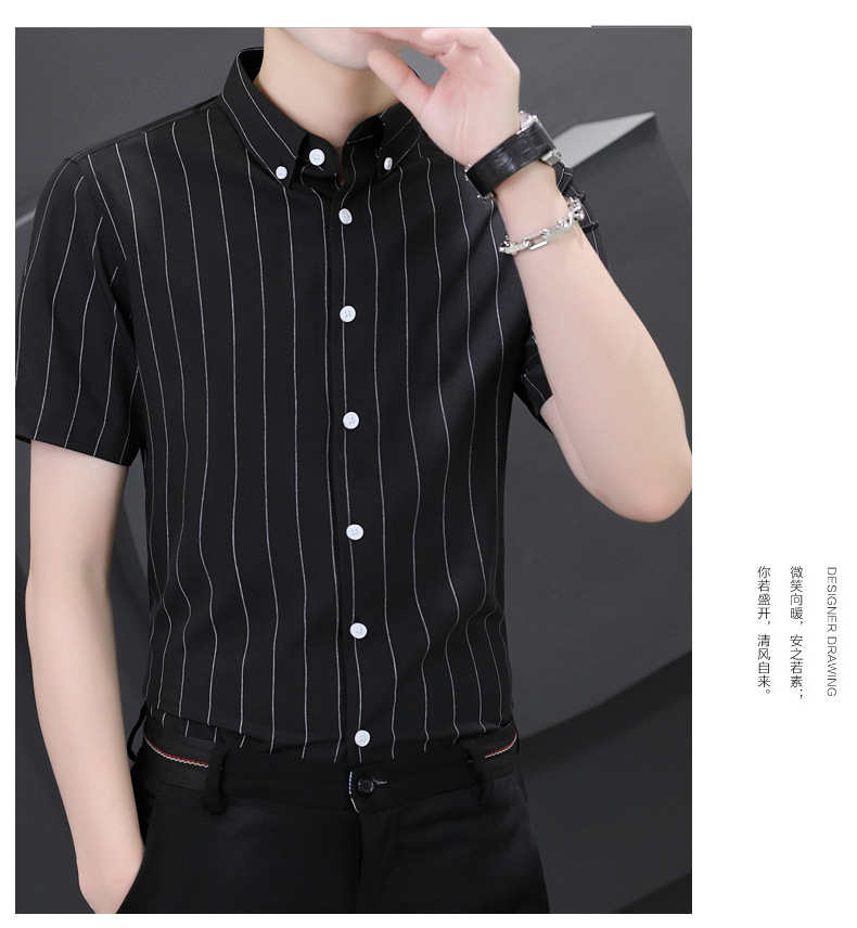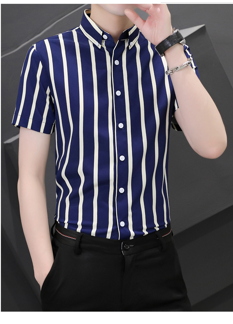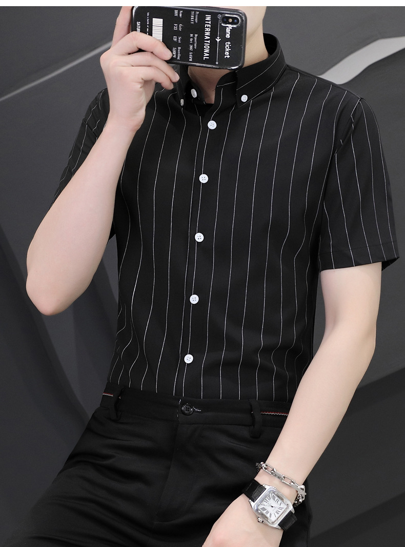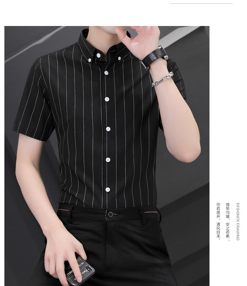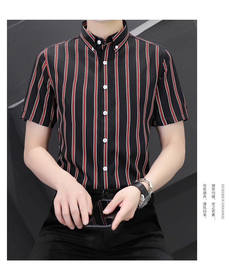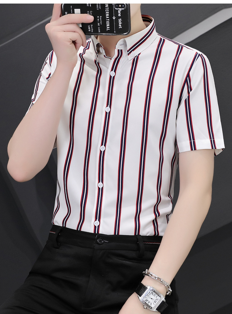 국경 간 대외 무역 세대 Four Seasons 남성 사각 칼라 셔츠 고품질 탄성 안티 주름 스트라이프 반팔 셔츠