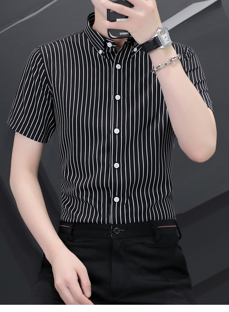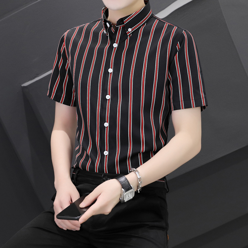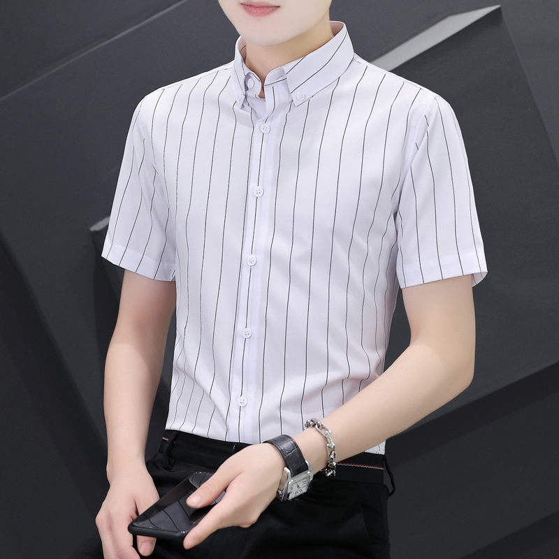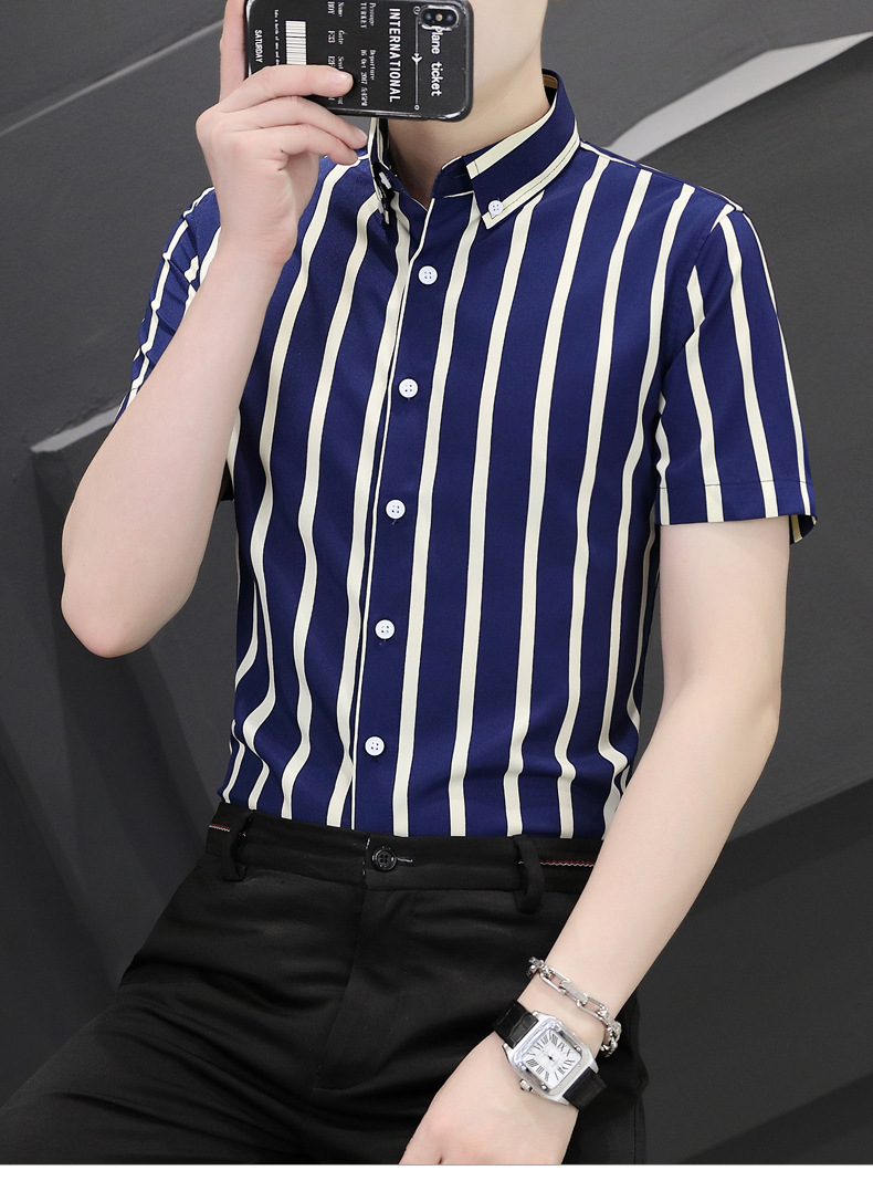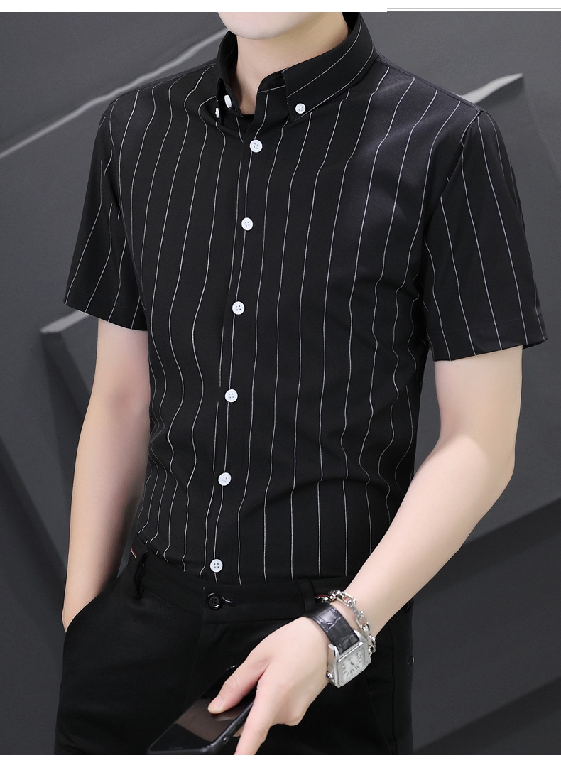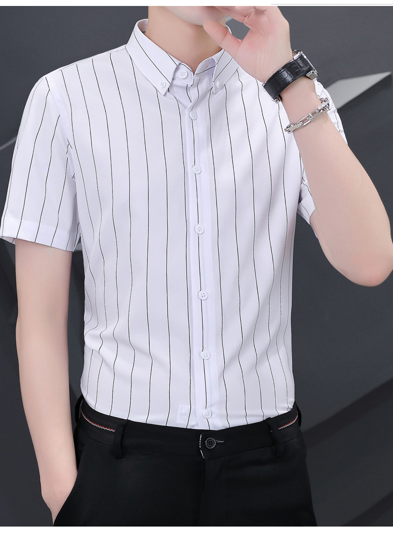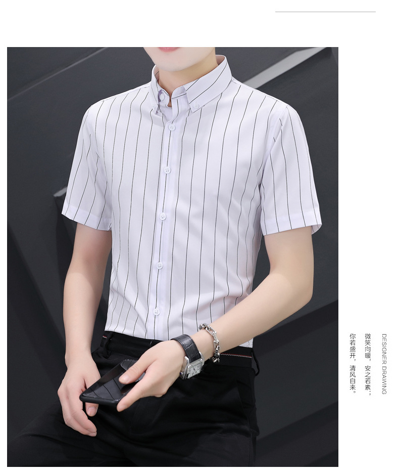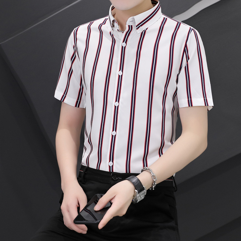 국경 간 대외 무역 세대 Four Seasons 남성 사각 칼라 셔츠 고품질 탄성 안티 주름 스트라이프 반팔 셔츠