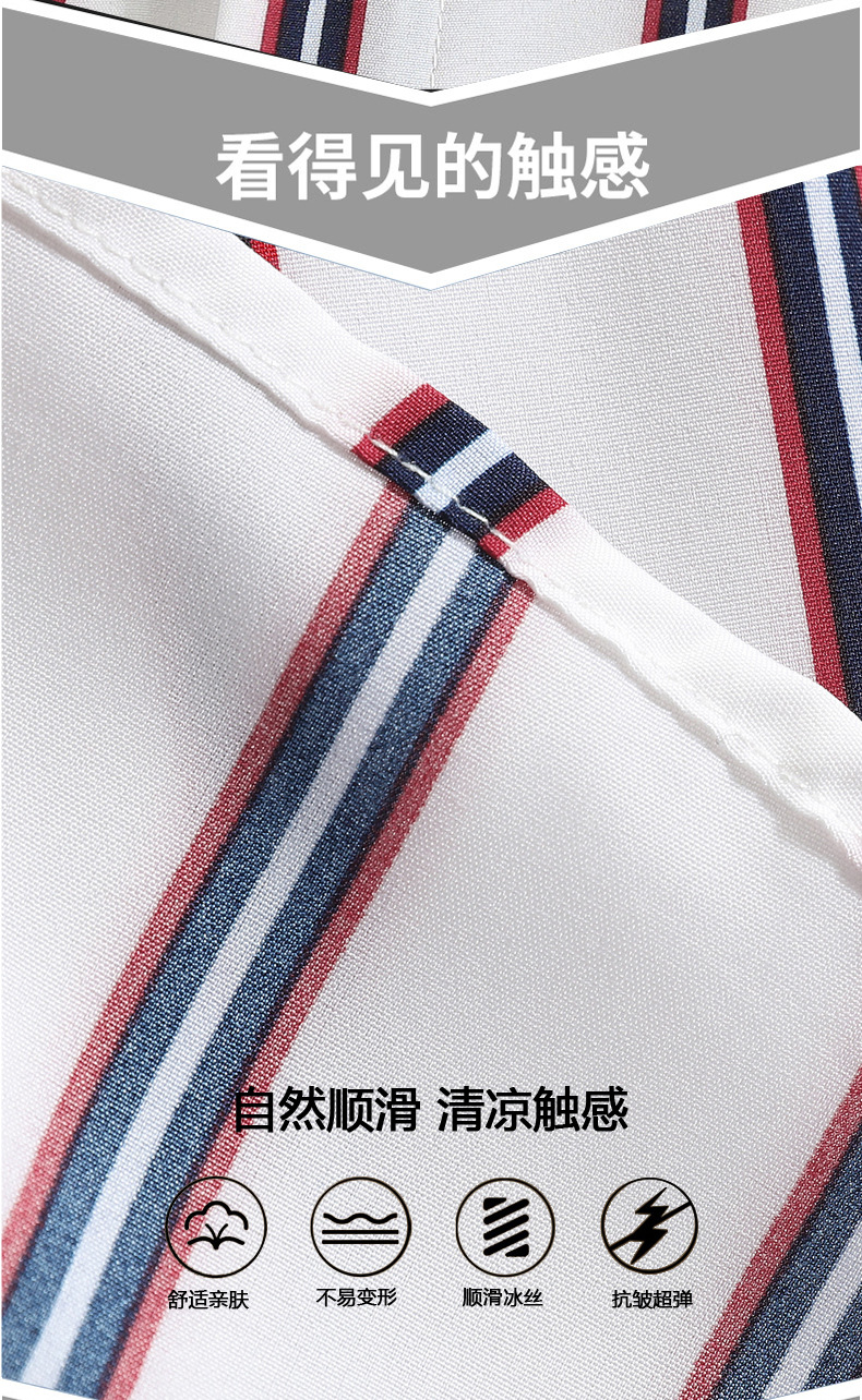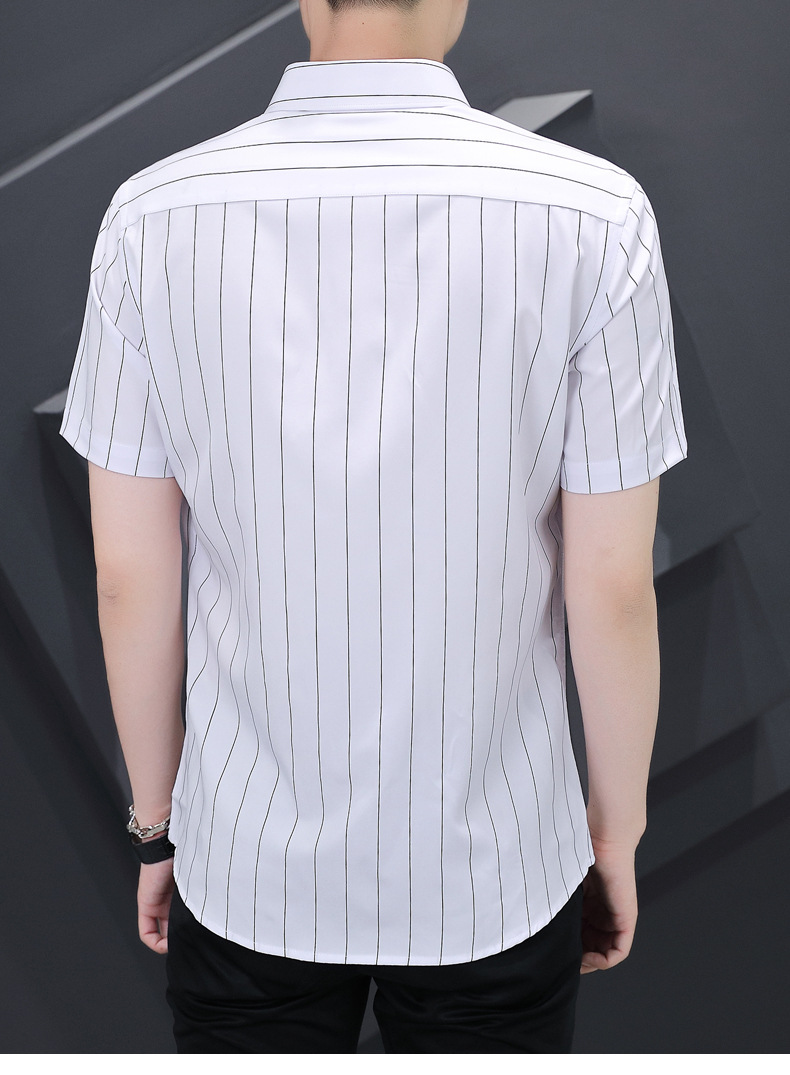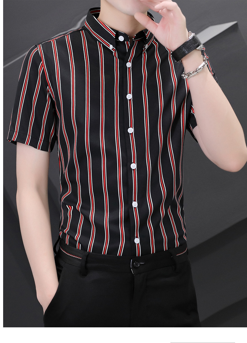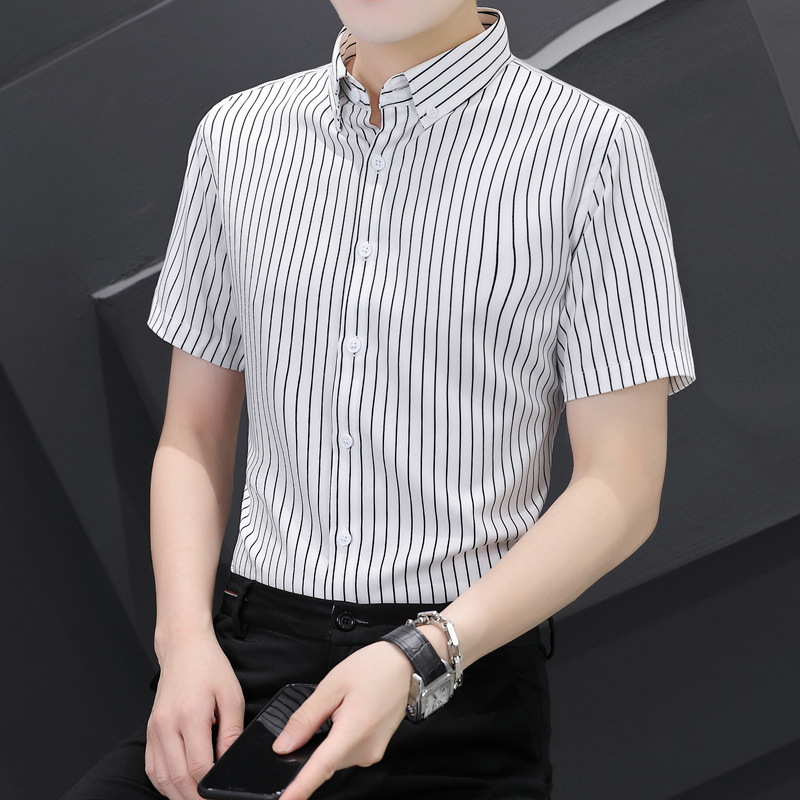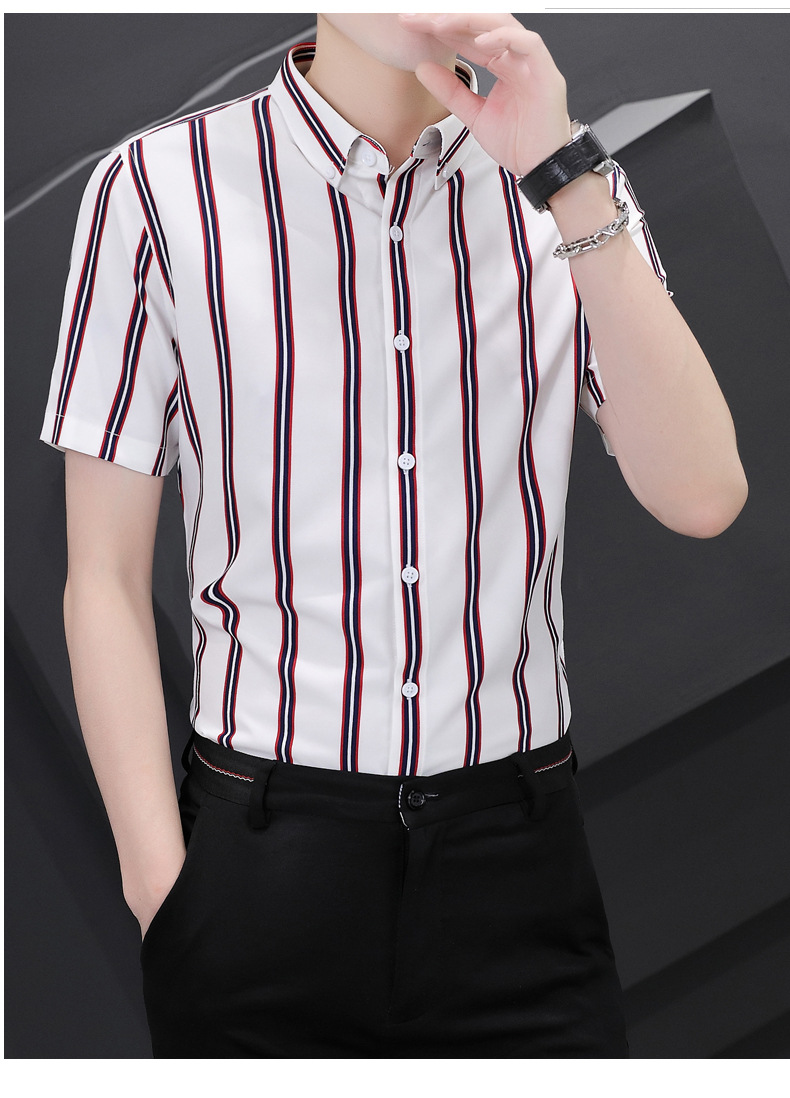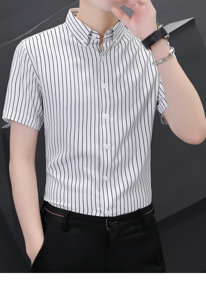 국경 간 대외 무역 세대 Four Seasons 남성 사각 칼라 셔츠 고품질 탄성 안티 주름 스트라이프 반팔 셔츠
