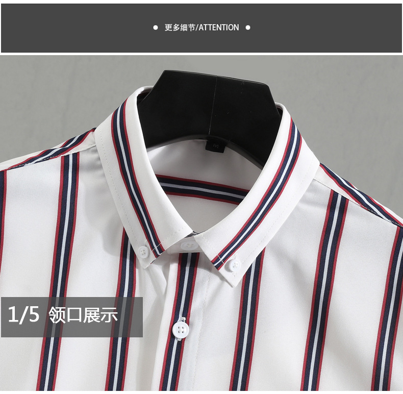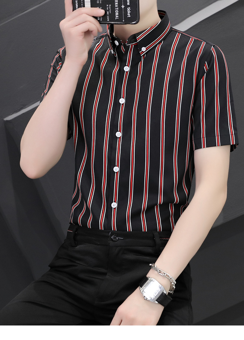 국경 간 대외 무역 세대 Four Seasons 남성 사각 칼라 셔츠 고품질 탄성 안티 주름 스트라이프 반팔 셔츠스토어 가기