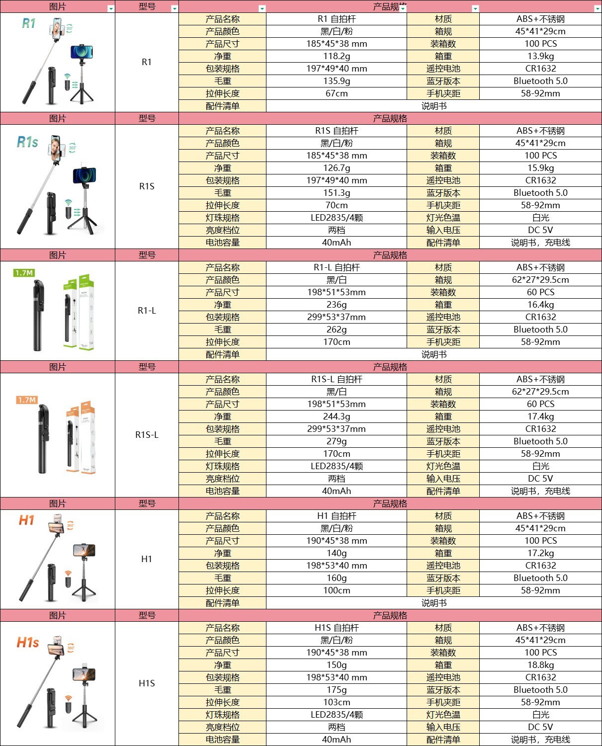 • R1S-0.7m 채우기 라이트 셀카 스틱 핑크