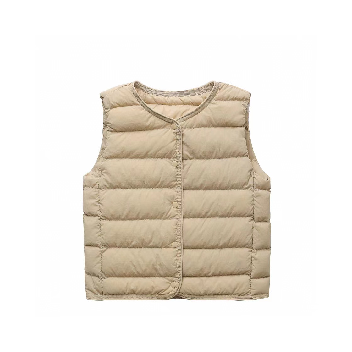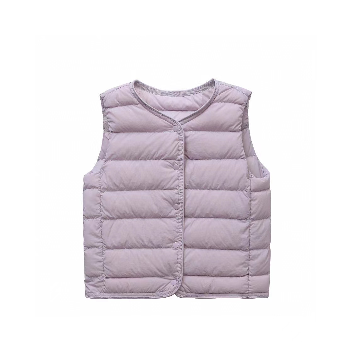 어린이는 겨울에 소년과 소녀를위한 조끼 칼라없는 초박형 따뜻한 라이너 90% 흰색 오리 다운 착용