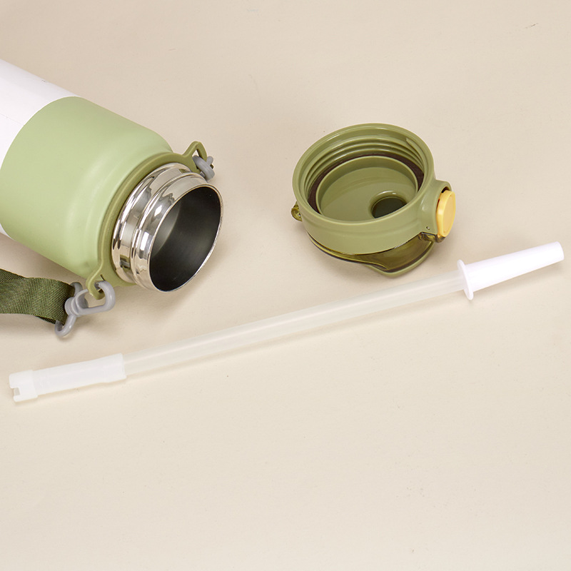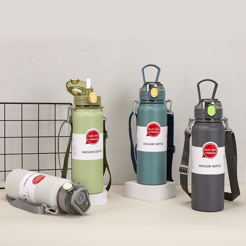 크로스 보더 진공 스테인레스 스틸 보온병 야외 휴대용 휴대용 바운스 밀짚 물 컵 자동차 등산 주전자