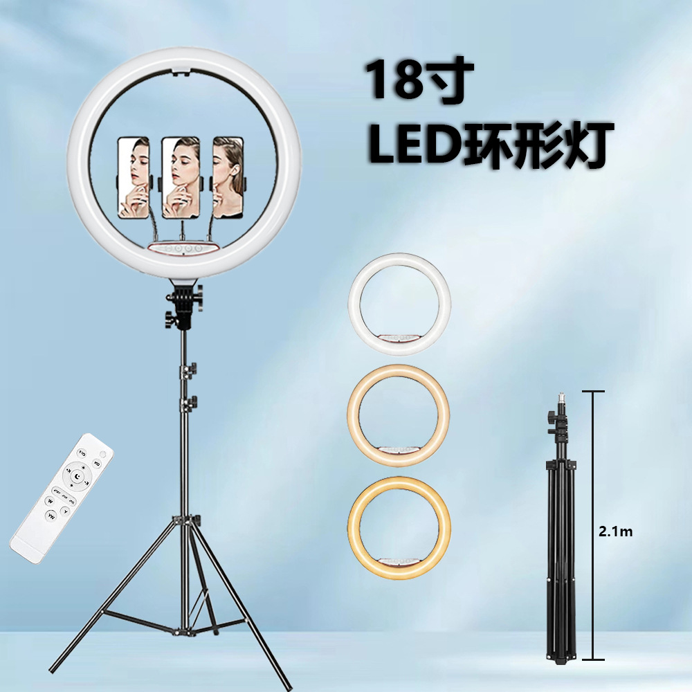 18inch 링 라이트 사진 셀카 휴대폰 라이브 방송 LED 필 라이트 플로어 모델 3색 조명 링라이트 45cm