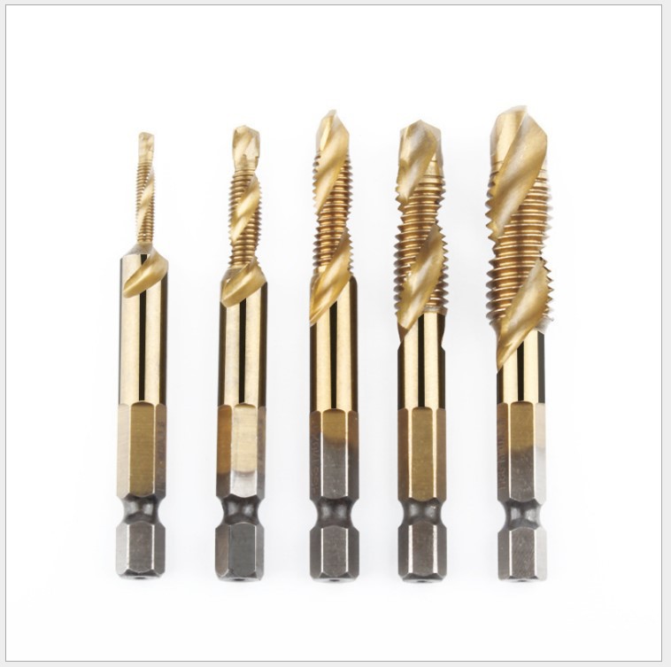 육각 핸들 복합 탭 고속 강철 티타늄 도금 3-in-1 다기능 드릴링 및 커프링 기계용 나선형 하드웨어스토어 가기