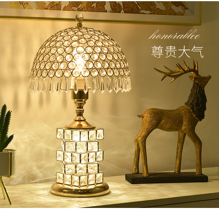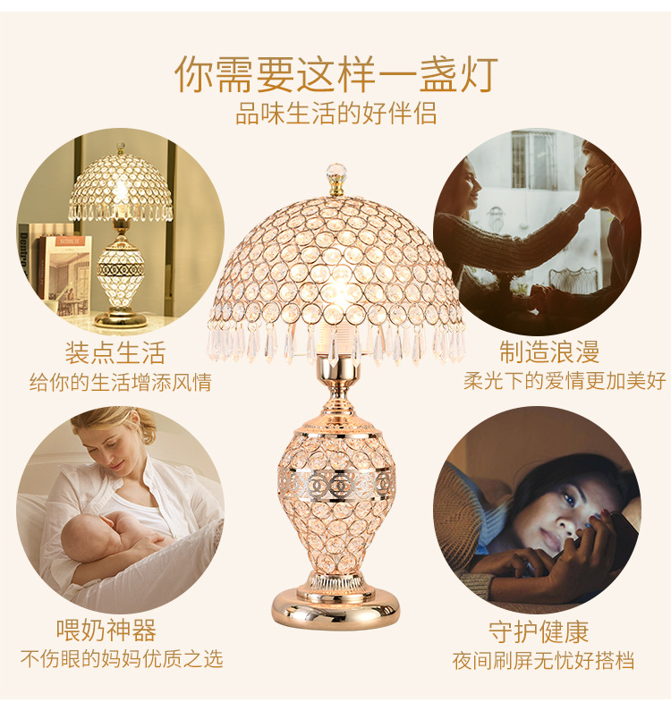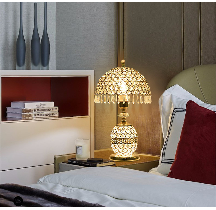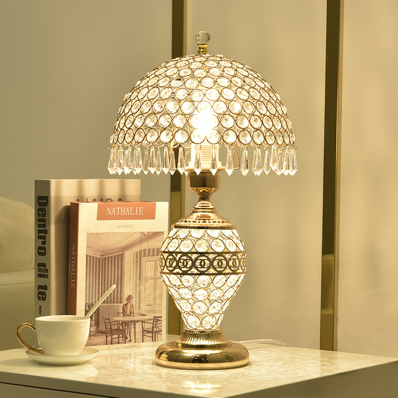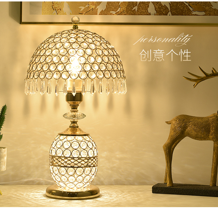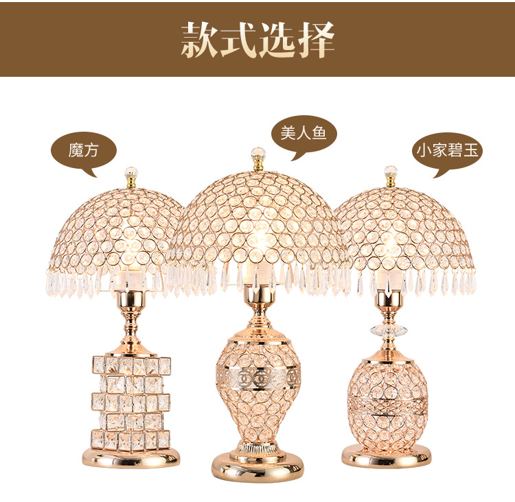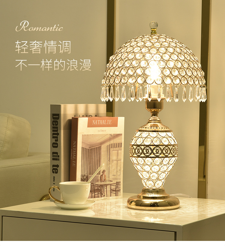 가벼운 럭셔리 크리스탈 테이블 램프 침실 로맨틱 유럽 스타일 중공 따뜻한 결혼식 간단한 현대 창조적 인 웨딩 룸 침대 옆 램프스토어 가기