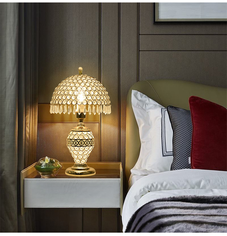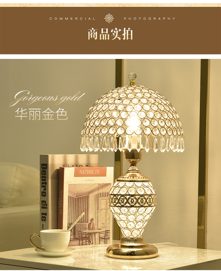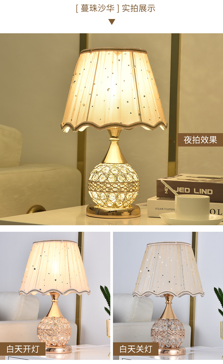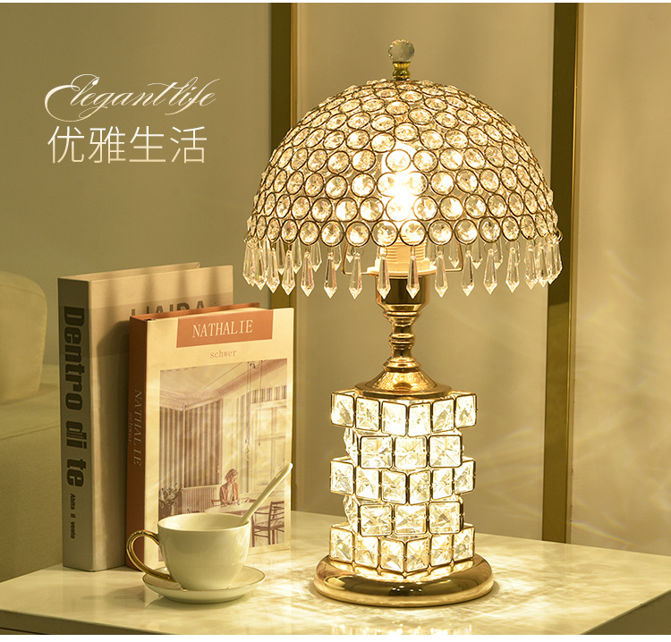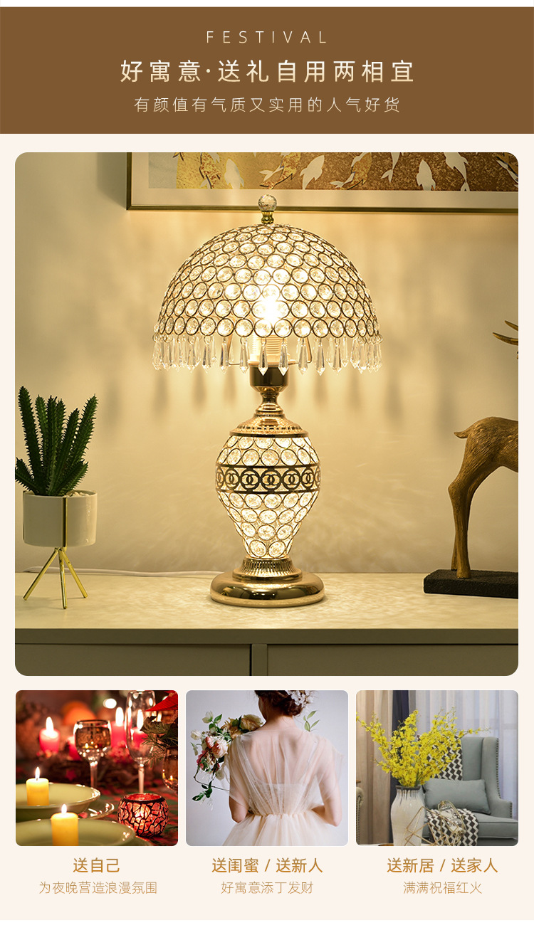 가벼운 럭셔리 크리스탈 테이블 램프 침실 로맨틱 유럽 스타일 중공 따뜻한 결혼식 간단한 현대 창조적 인 웨딩 룸 침대 옆 램프스토어 가기