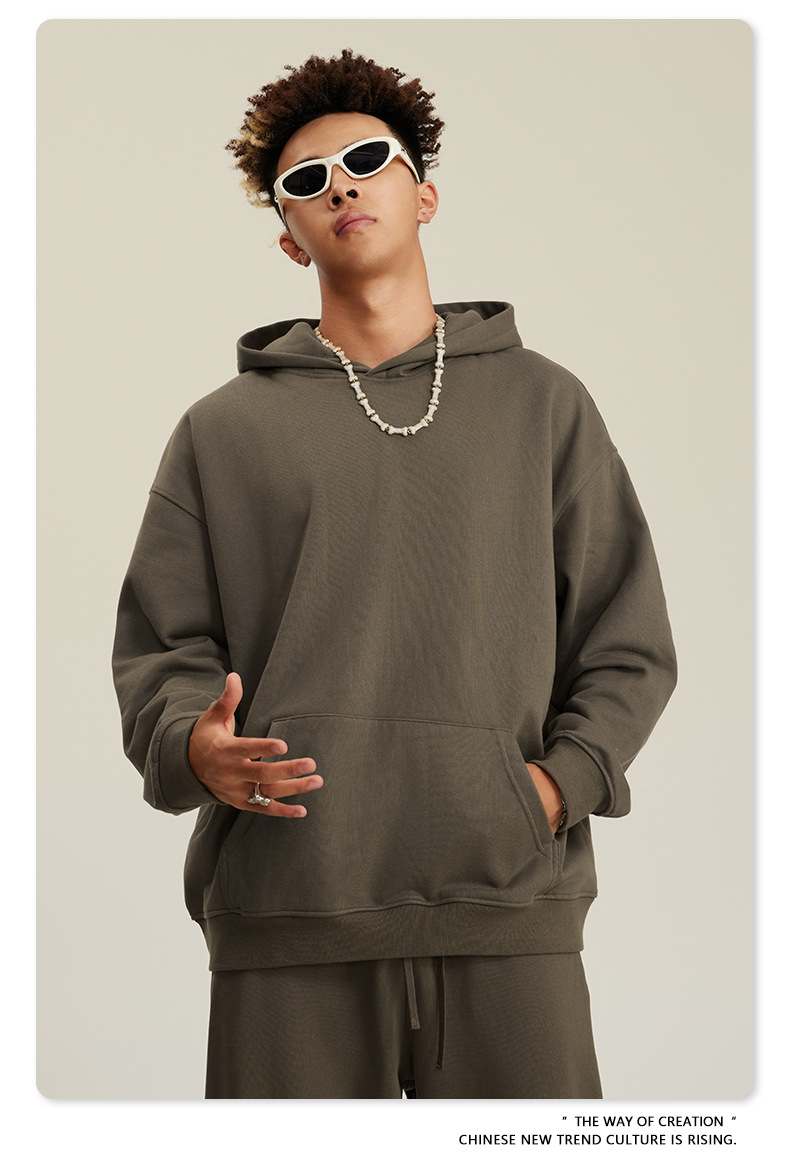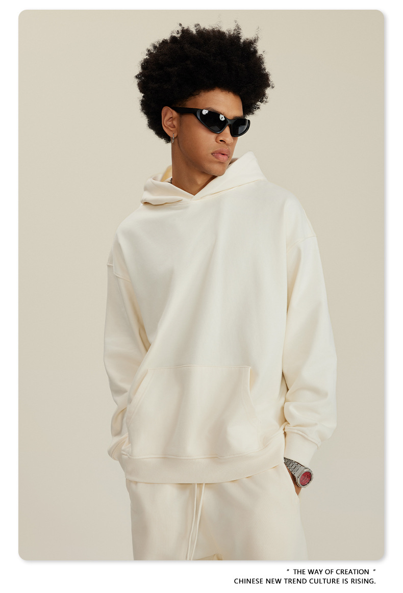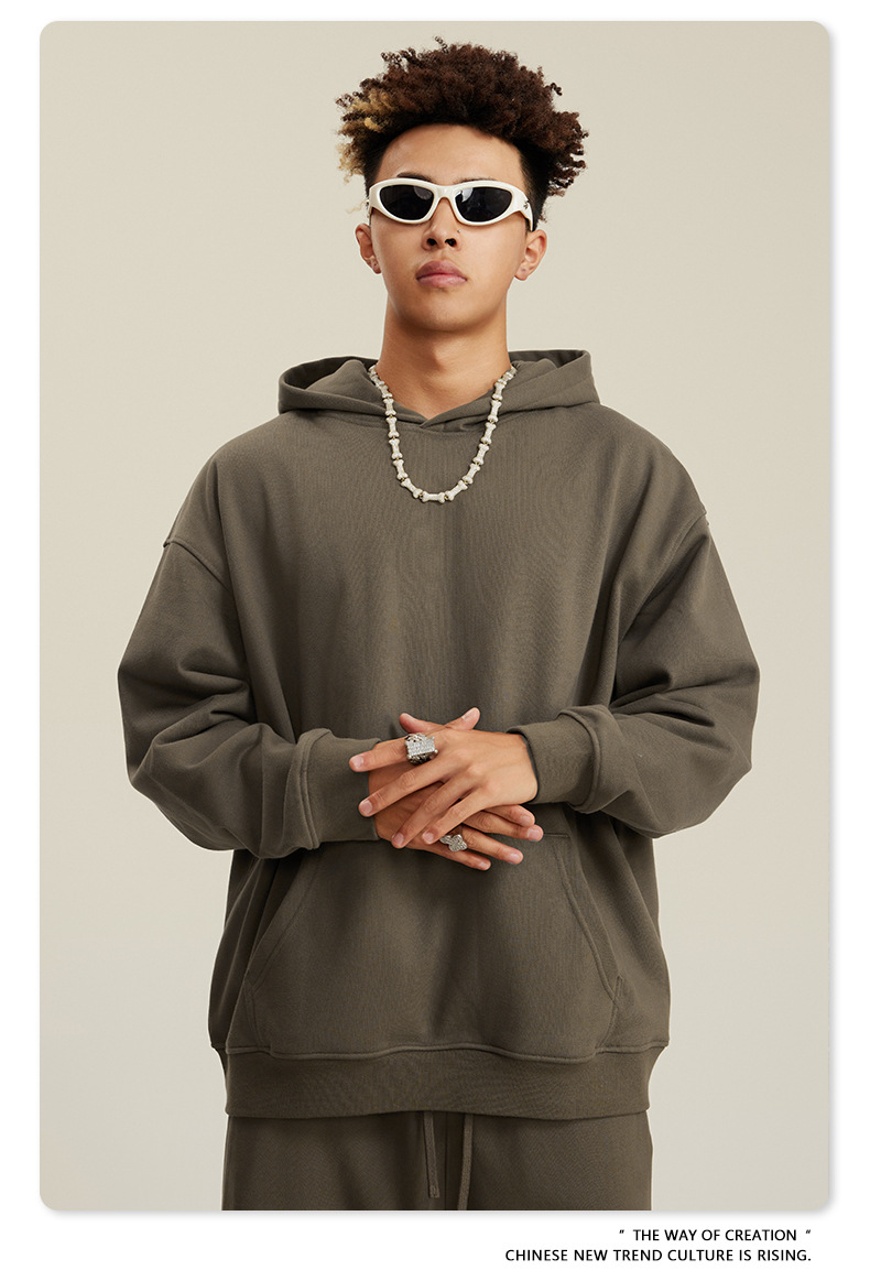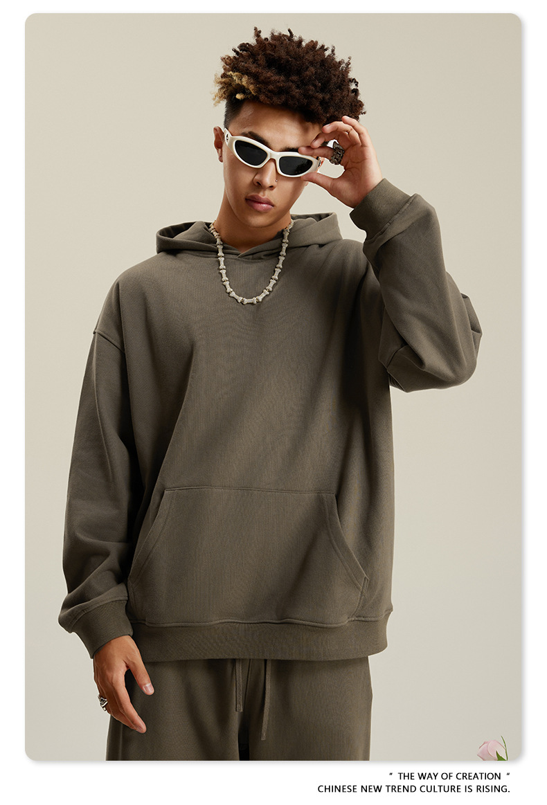 BE 남성복 2025 가을 헤비웨이트 테리 스웨트셔츠 아메리칸 스타일 트렌디 브랜드 솔리드 컬러 풀오버 후드티 세트 남성용스토어 가기