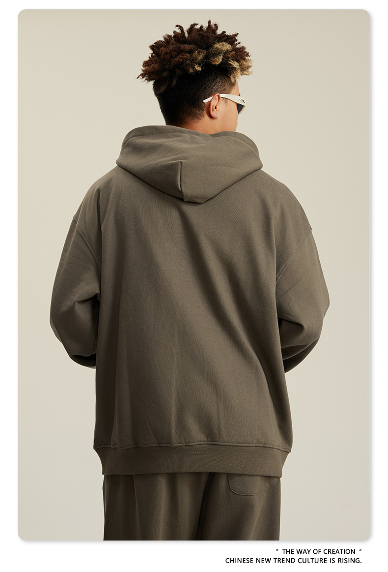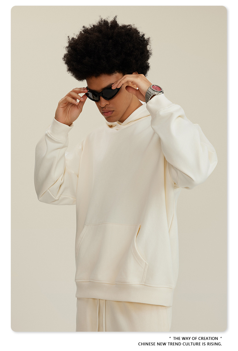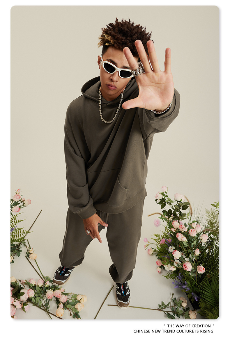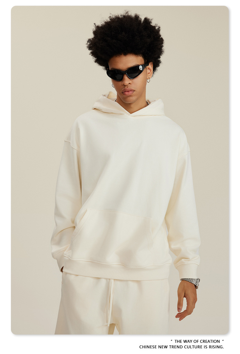 BE 남성복 2025 가을 헤비웨이트 테리 스웨트셔츠 아메리칸 스타일 트렌디 브랜드 솔리드 컬러 풀오버 후드티 세트 남성용스토어 가기