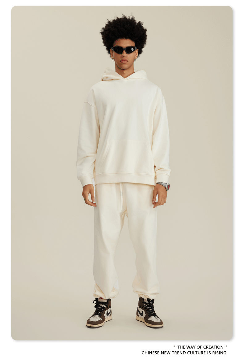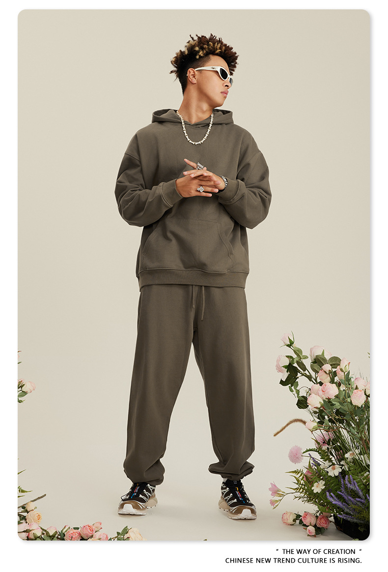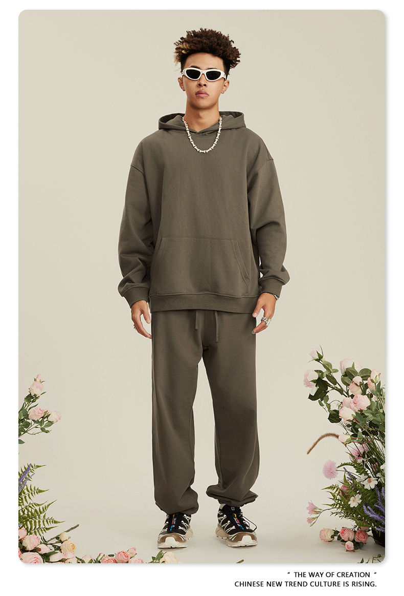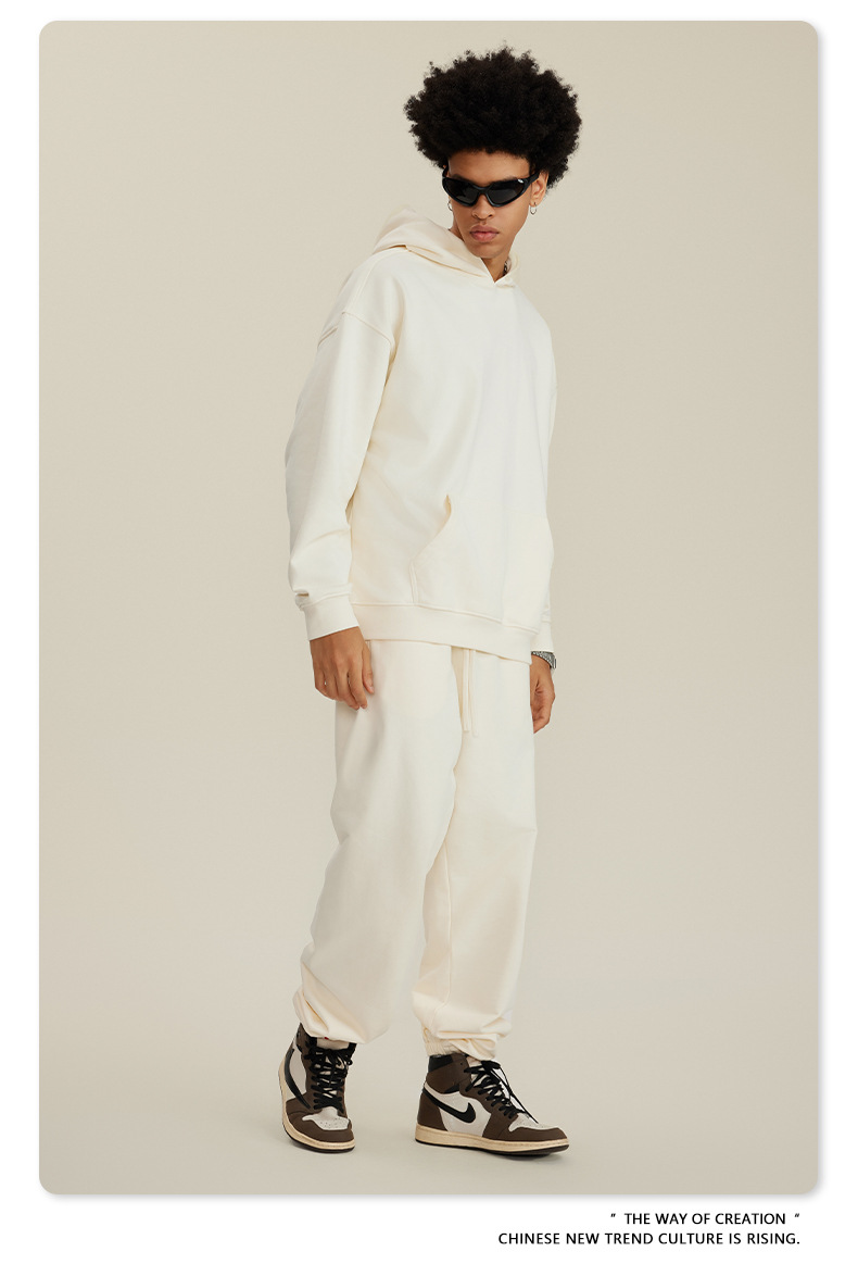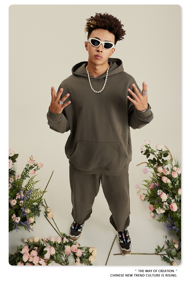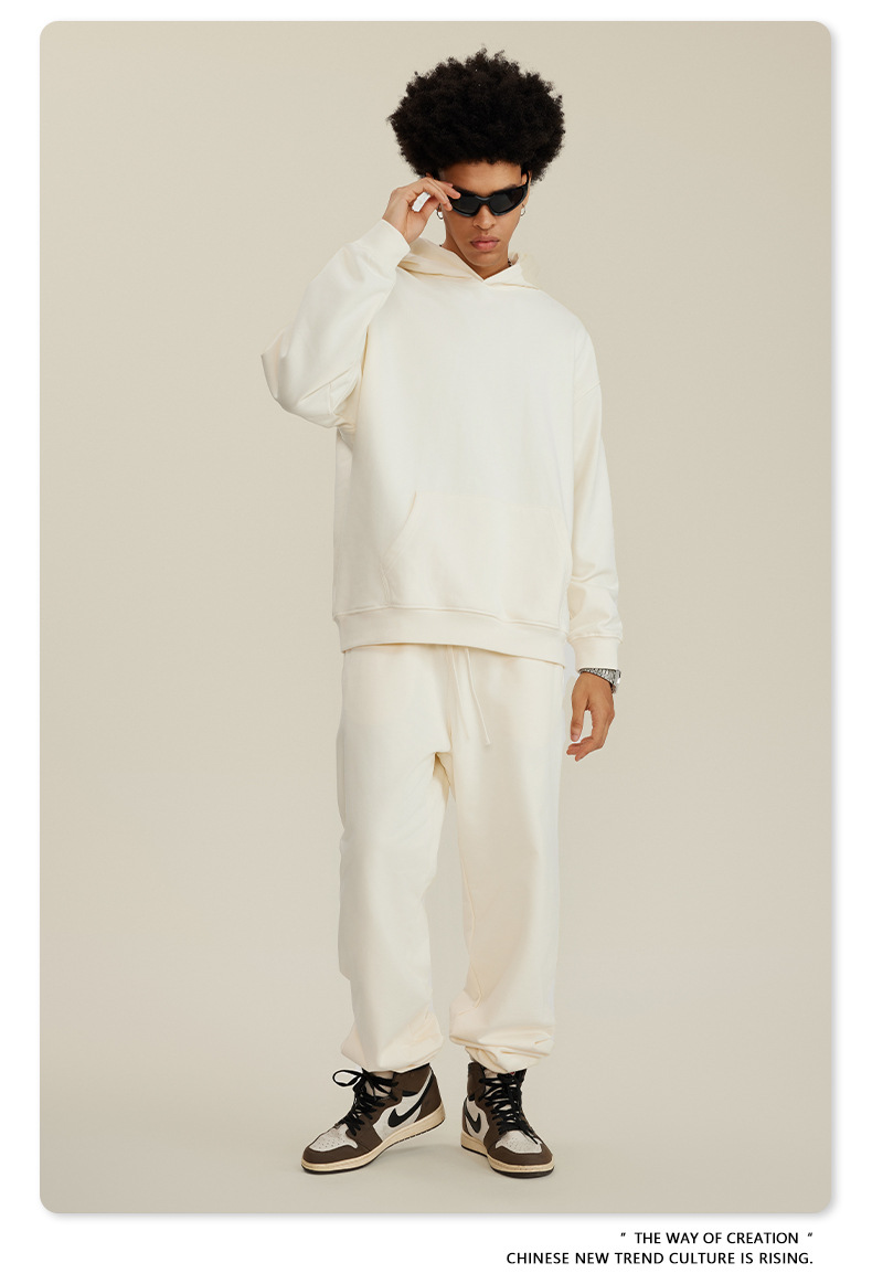 BE 남성복 2025 가을 헤비웨이트 테리 스웨트셔츠 아메리칸 스타일 트렌디 브랜드 솔리드 컬러 풀오버 후드티 세트 남성용