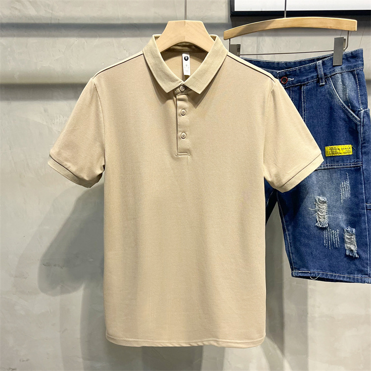 여름 2023 새로운 남성용 반팔 폴로 셔츠 고급 랩 아이스 실크 티셔츠 슬림핏 반팔 티셔츠 남성 패션스토어 가기