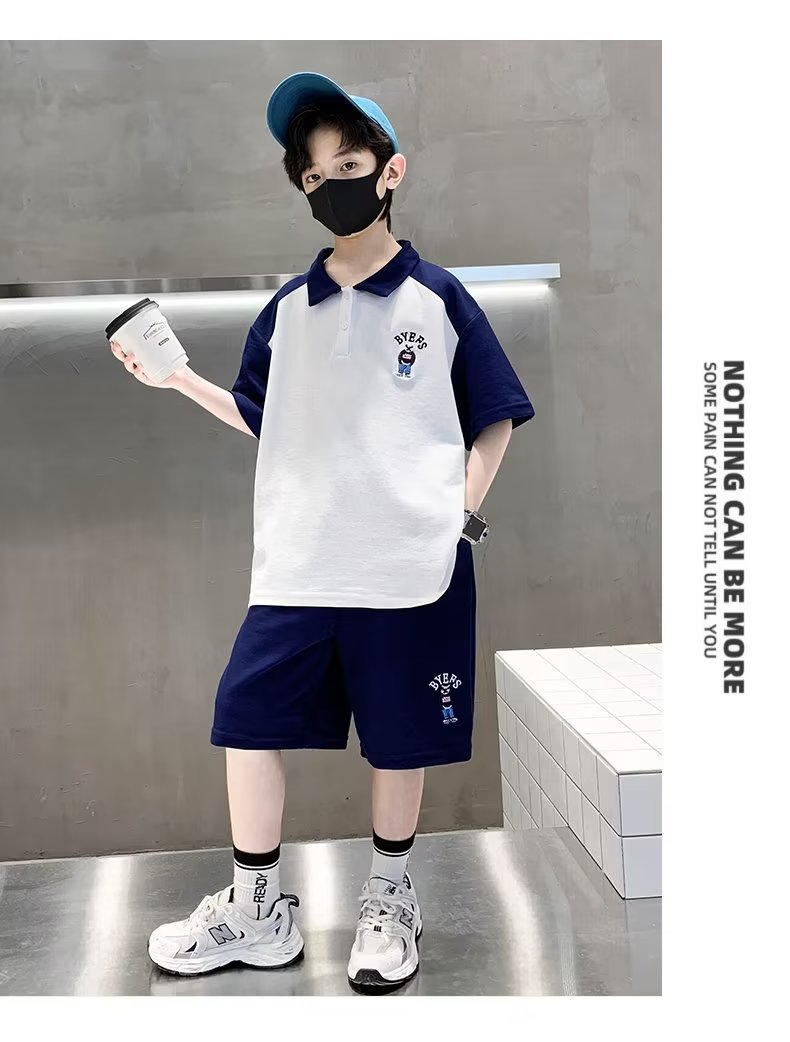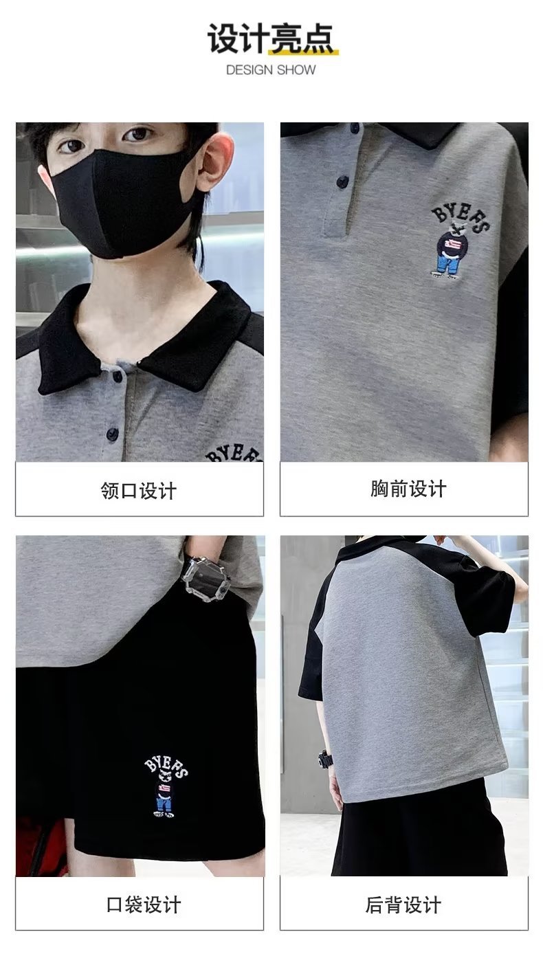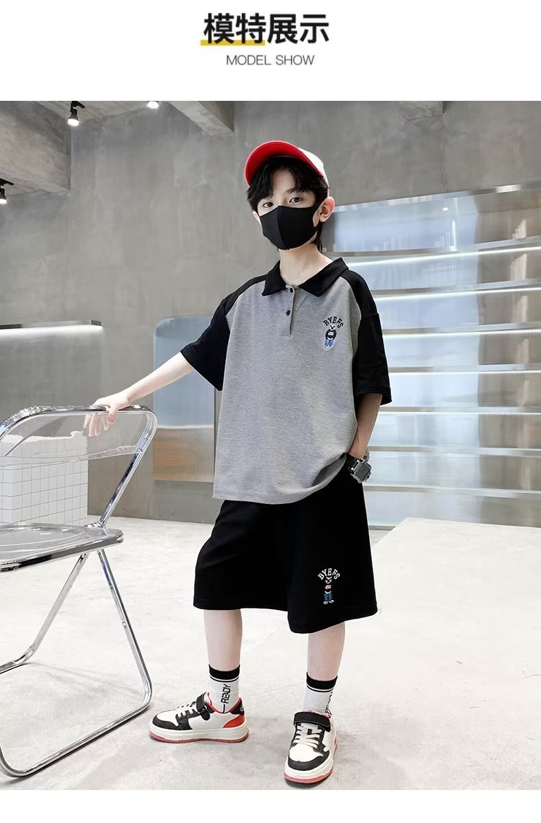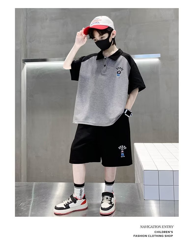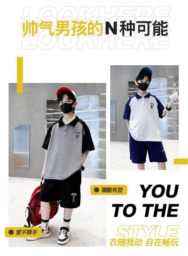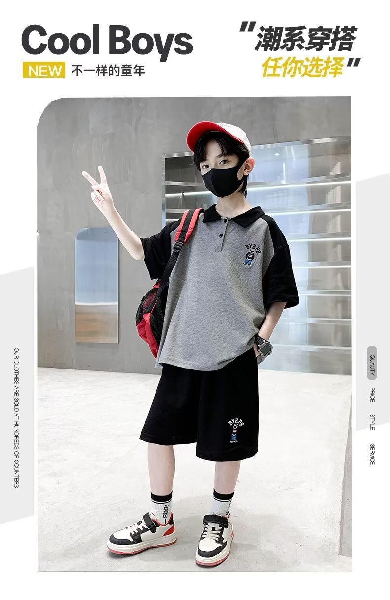 소년 여름 정장 2025 새로운 스타일 소년 중대형 어린이 여름 반팔 폴로 셔츠 스포츠, 멋지고 패셔너블스토어 가기