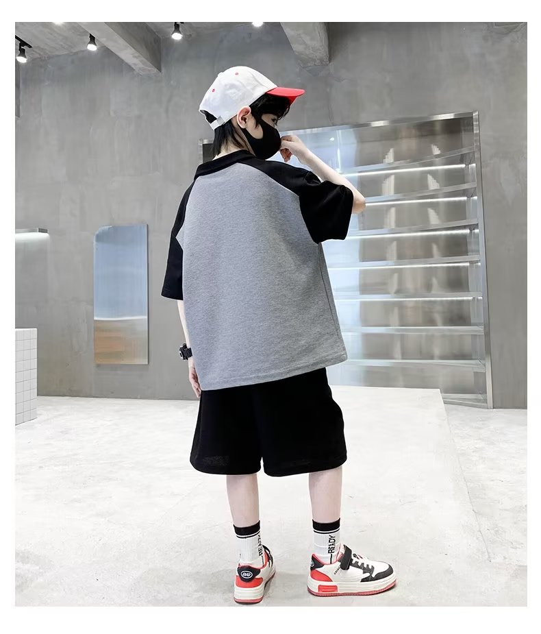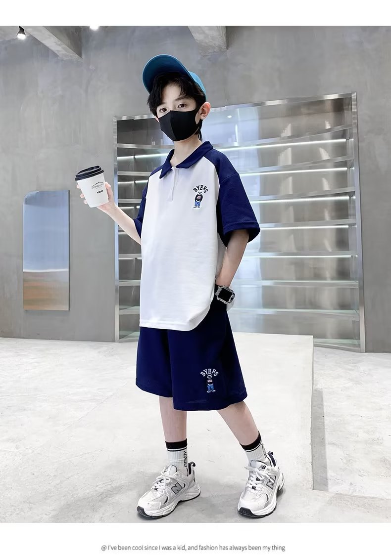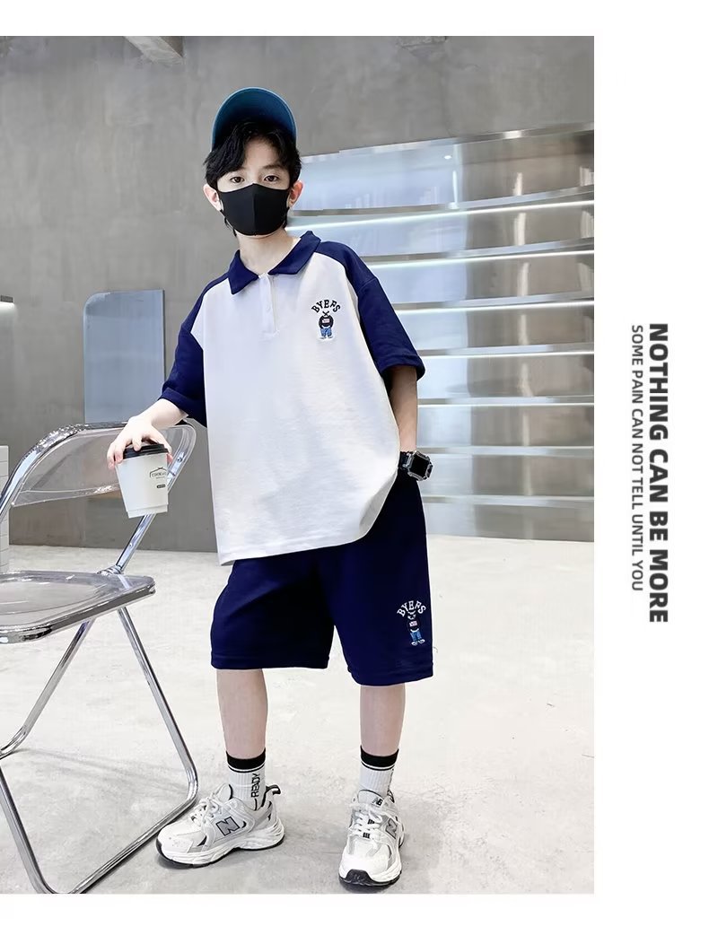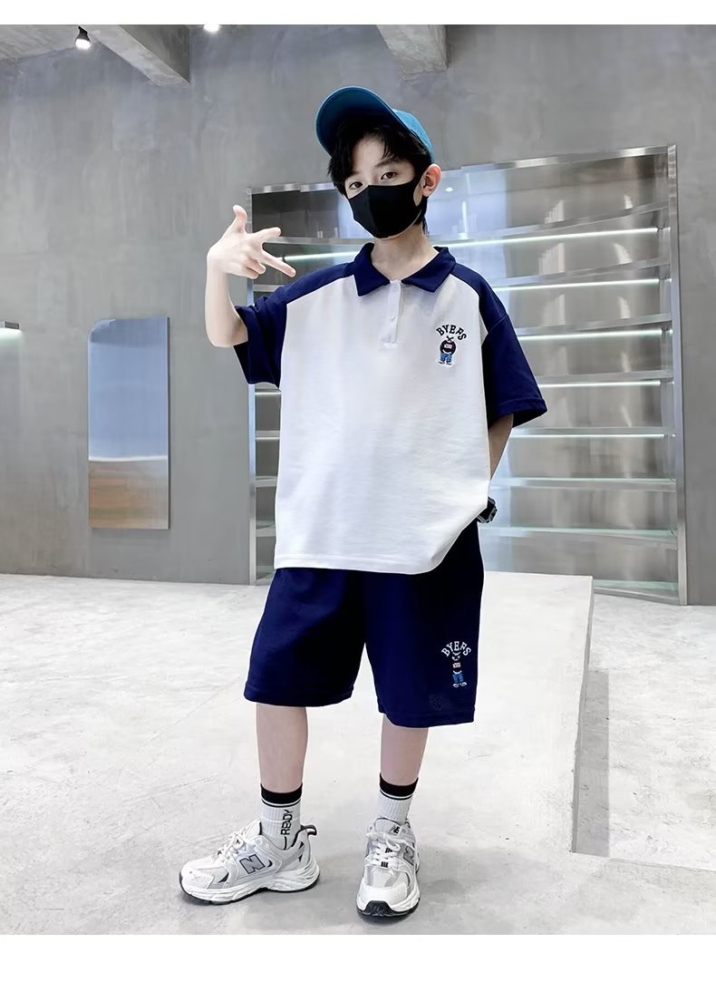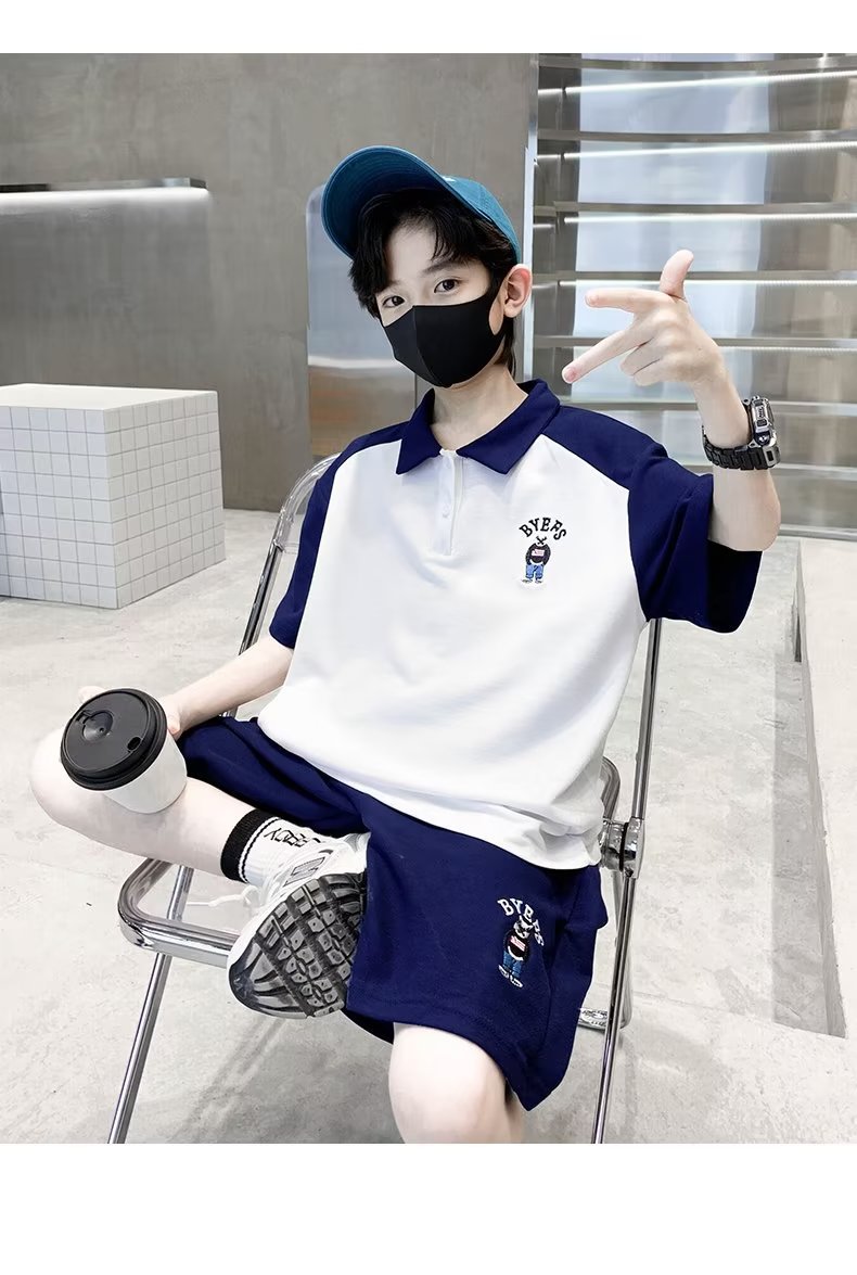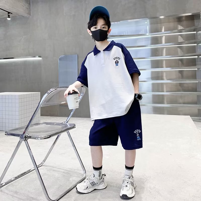 소년 여름 정장 2025 새로운 스타일 소년 중대형 어린이 여름 반팔 폴로 셔츠 스포츠, 멋지고 패셔너블스토어 가기