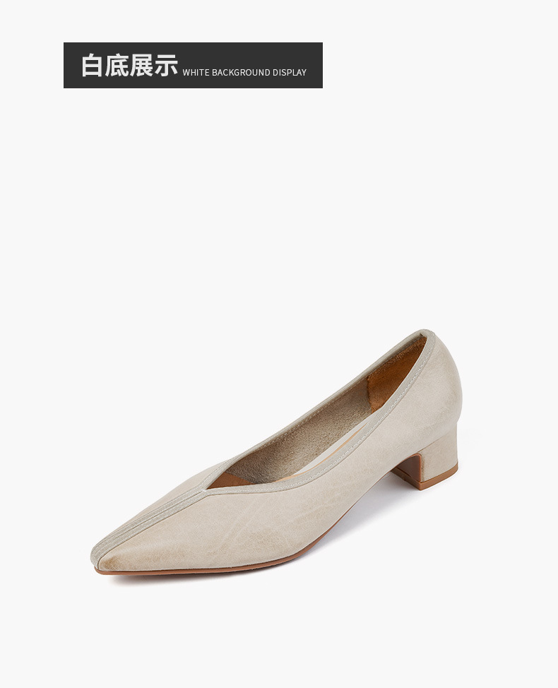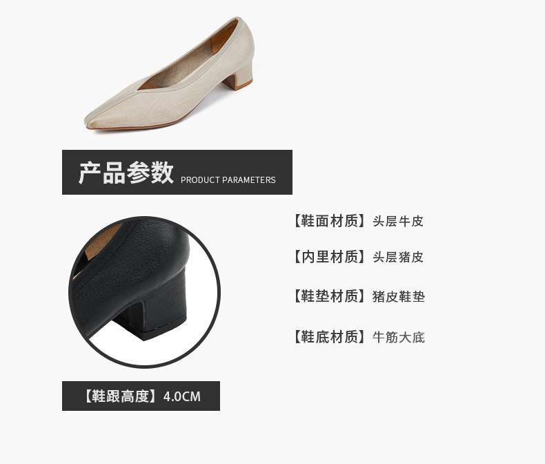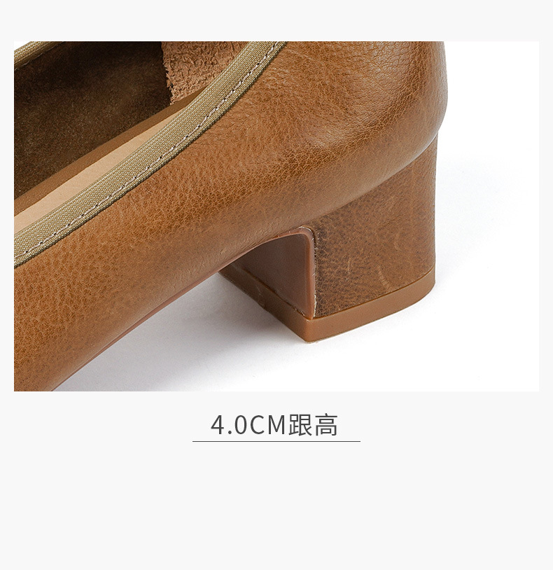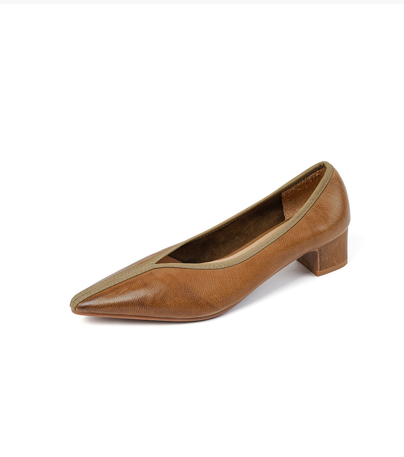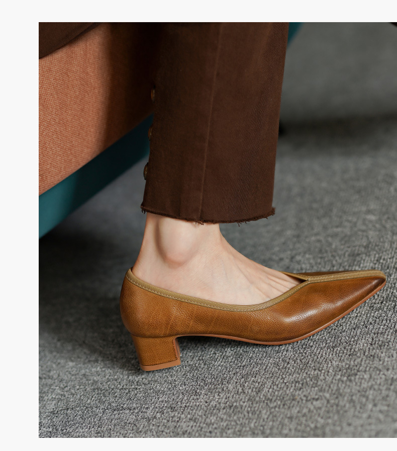 ~ 고대 스타일 ~ 2023 봄과 가을 레저 복고풍 두꺼운 뒤꿈치 뾰족한 여성 신발 풀 가죽 얕은 통근 하이힐 40스토어 가기