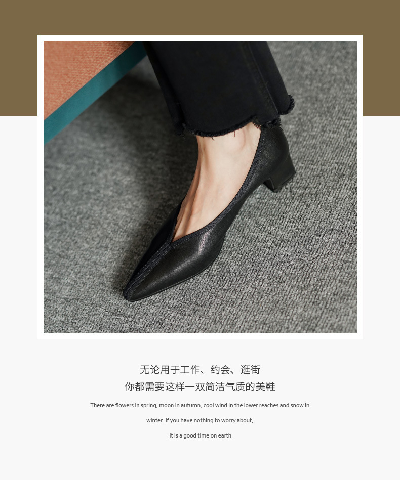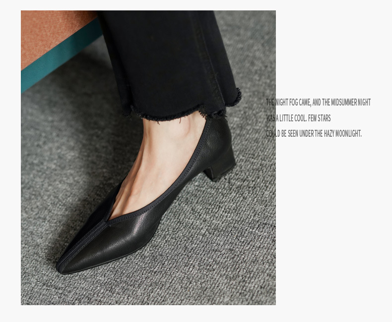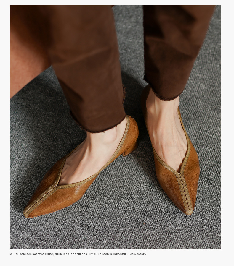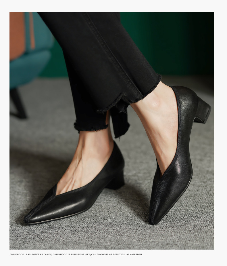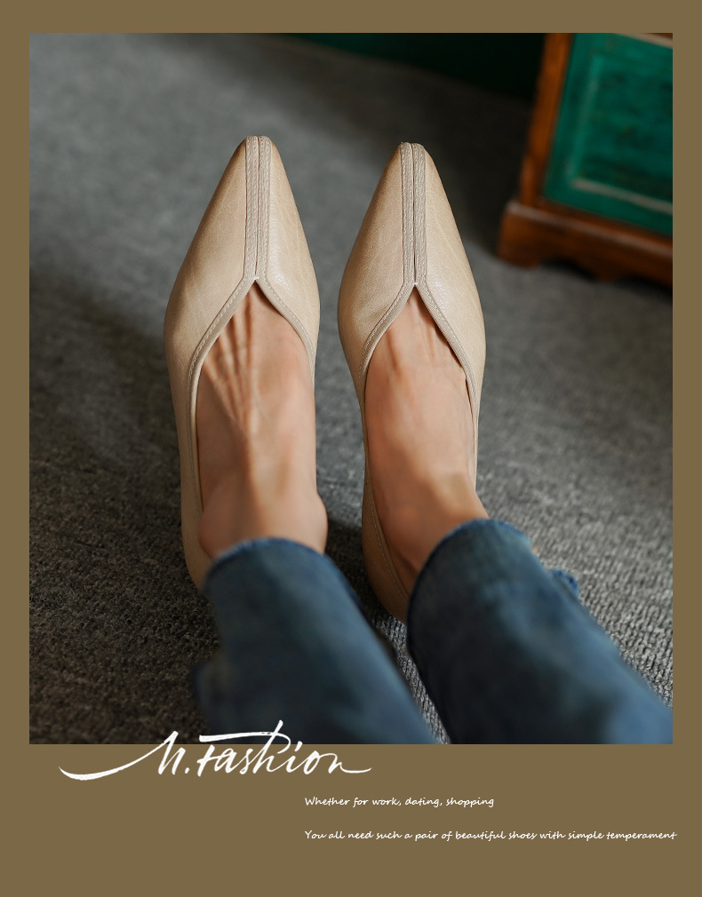 ~ 고대 스타일 ~ 2023 봄과 가을 레저 복고풍 두꺼운 뒤꿈치 뾰족한 여성 신발 풀 가죽 얕은 통근 하이힐 40스토어 가기
