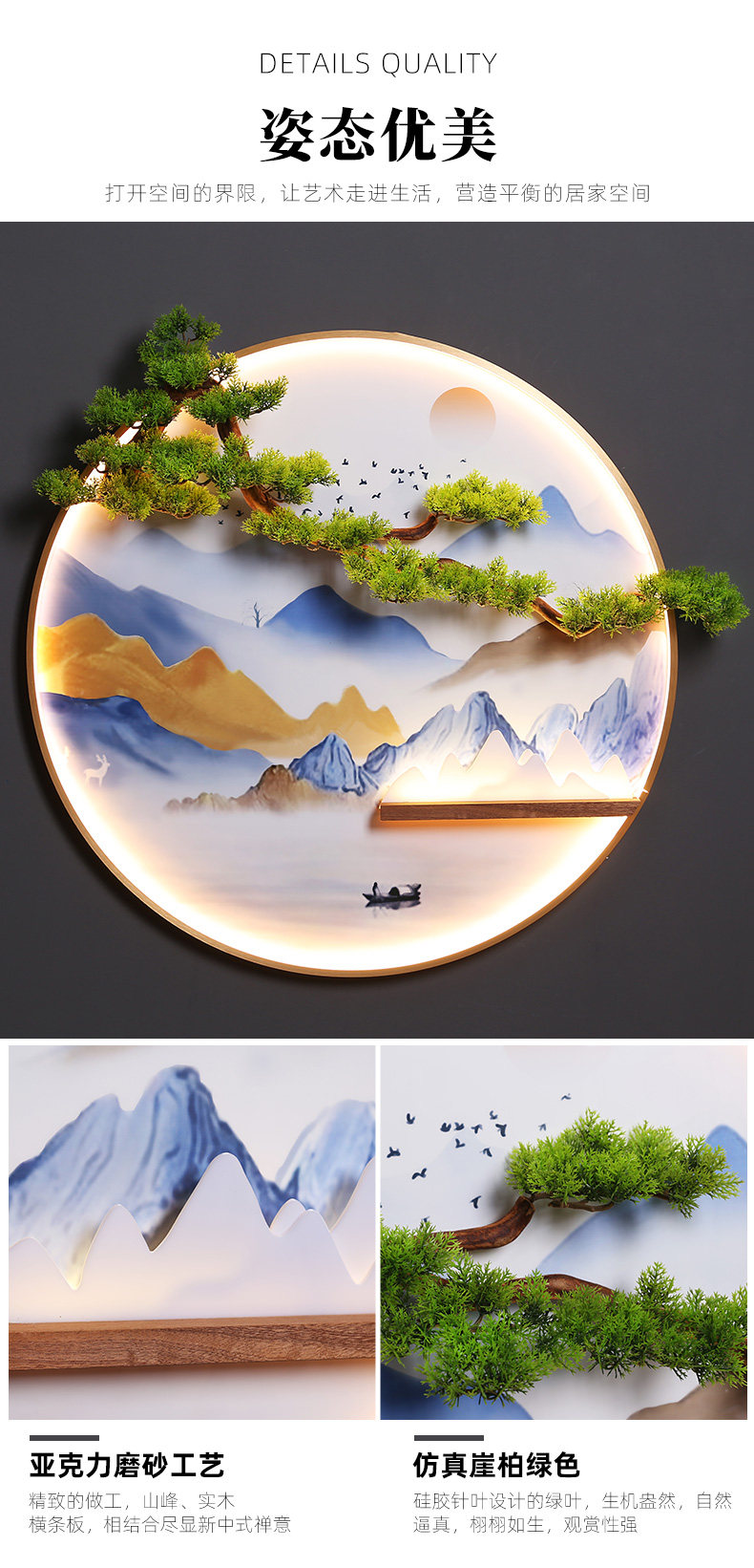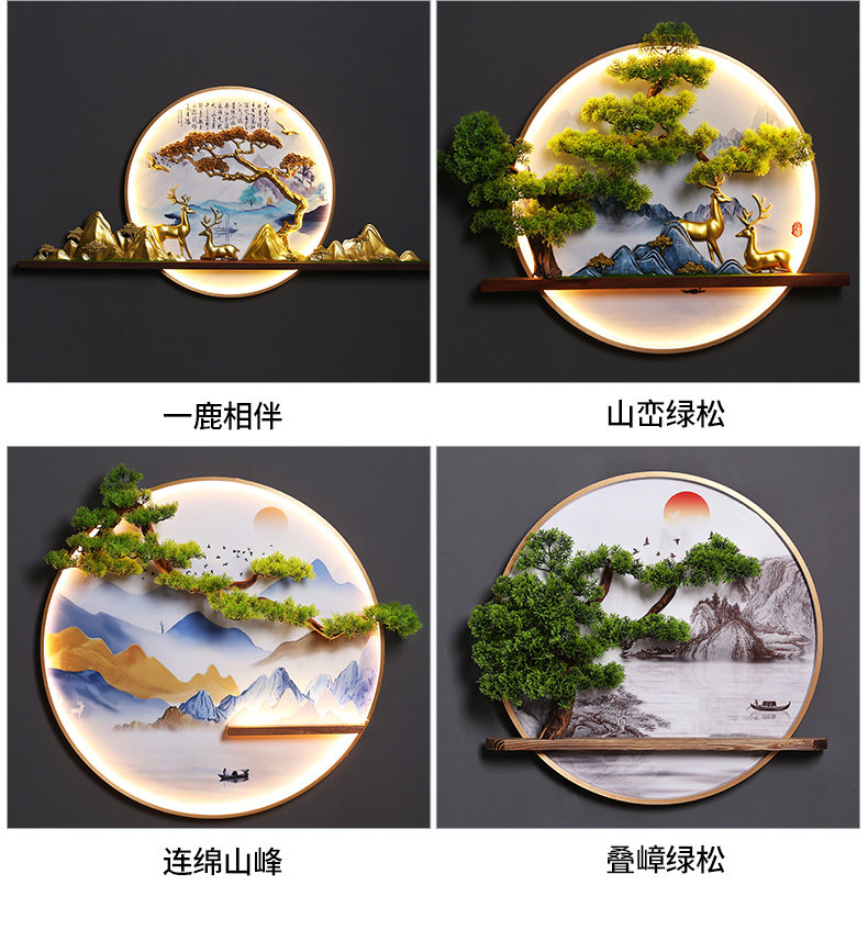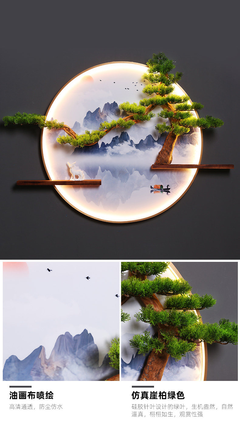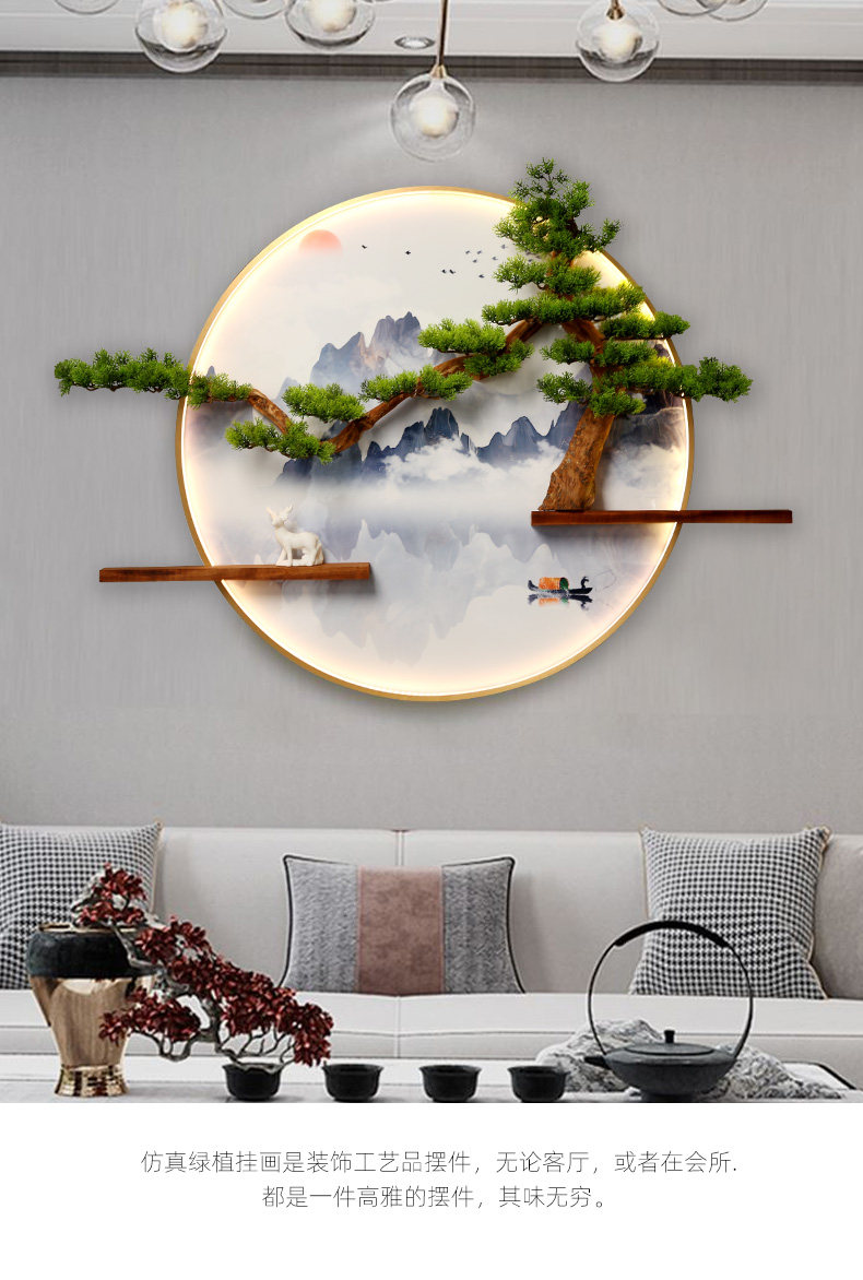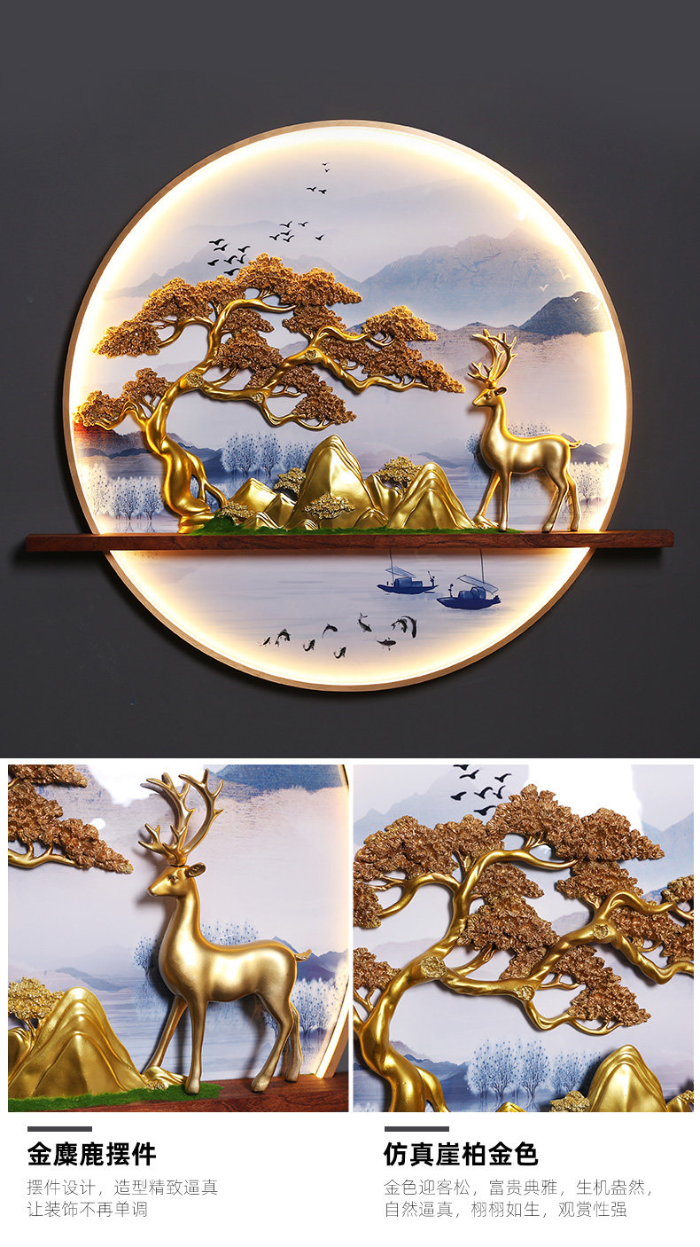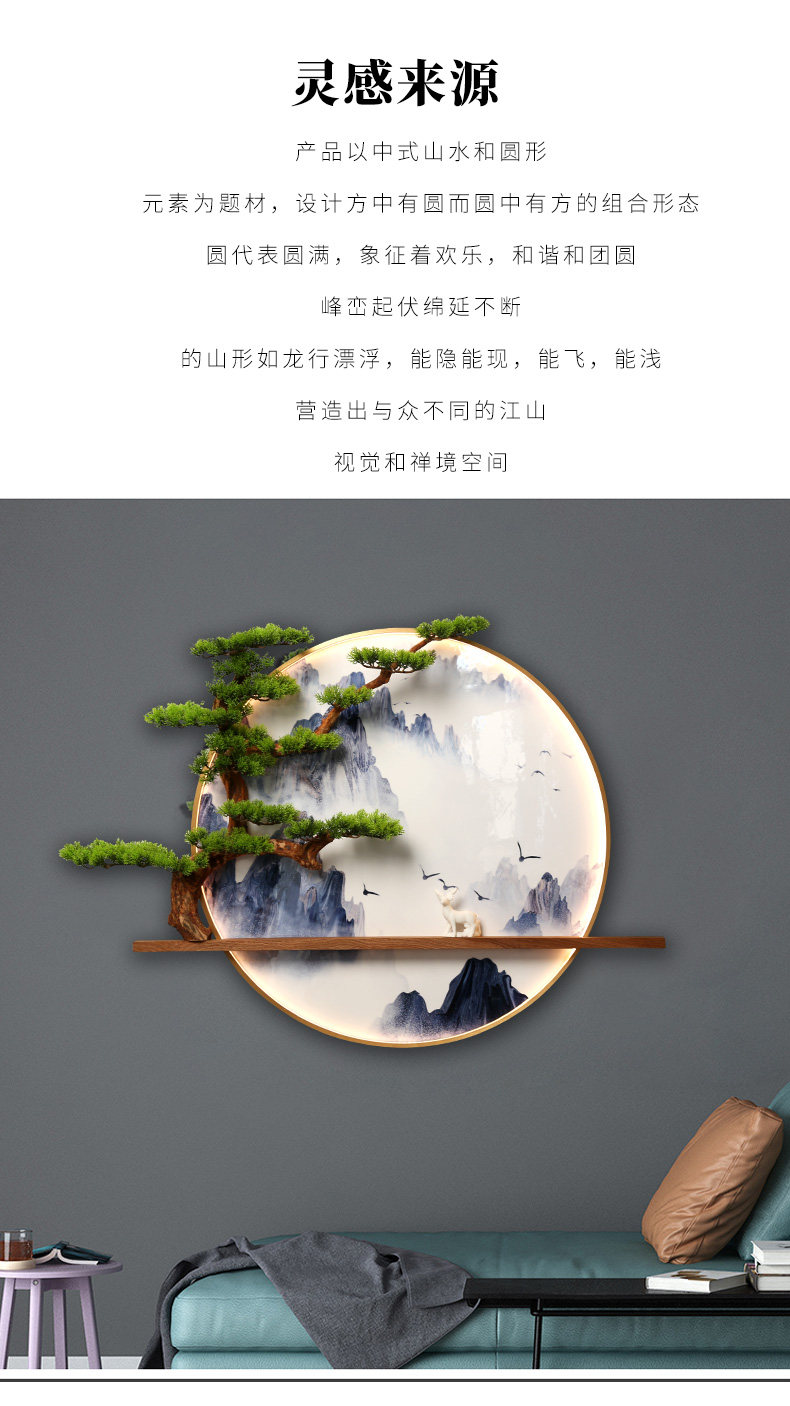 새로운 중국 스타일 환영 소나무 입구 벽화 장식 그림 거실 TV 배경 벽 간단한 원형 통로 입구 빛 사치품스토어 가기