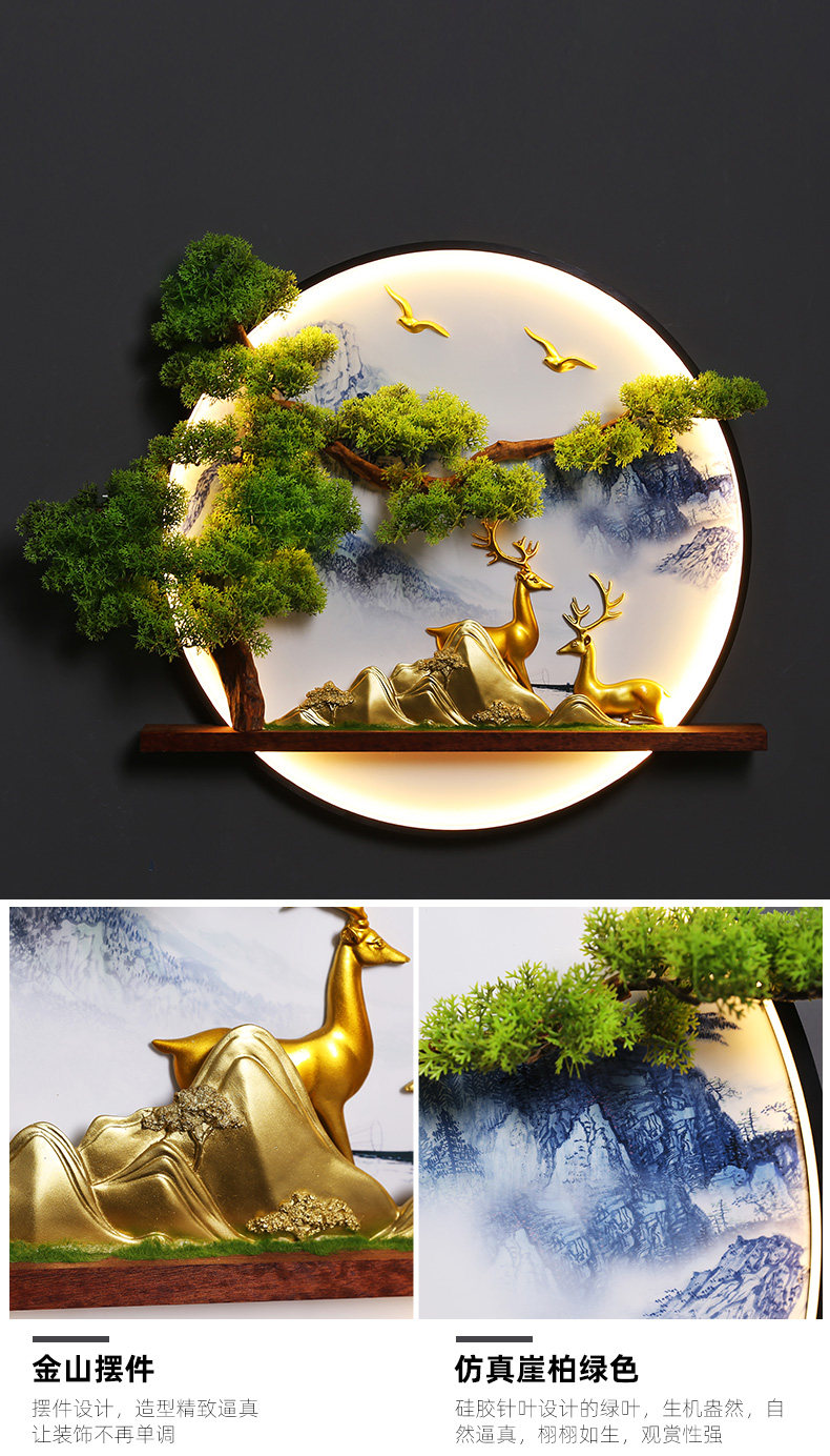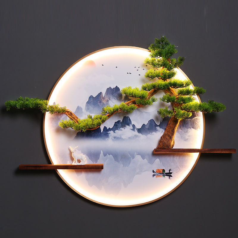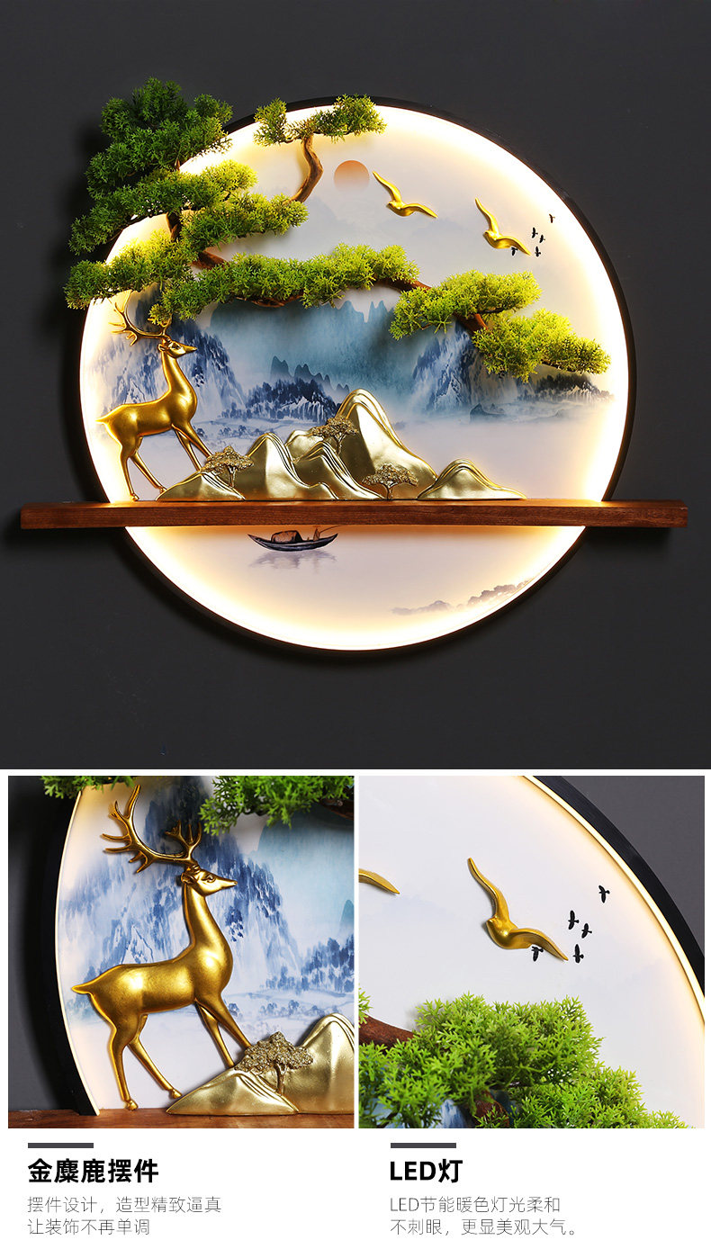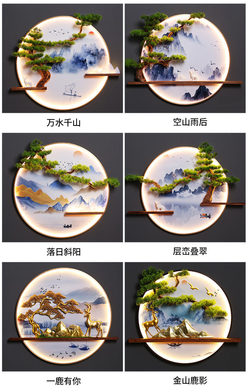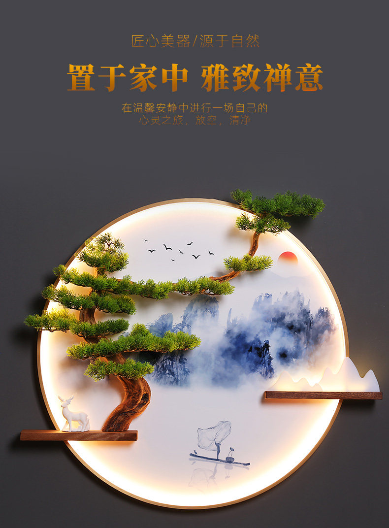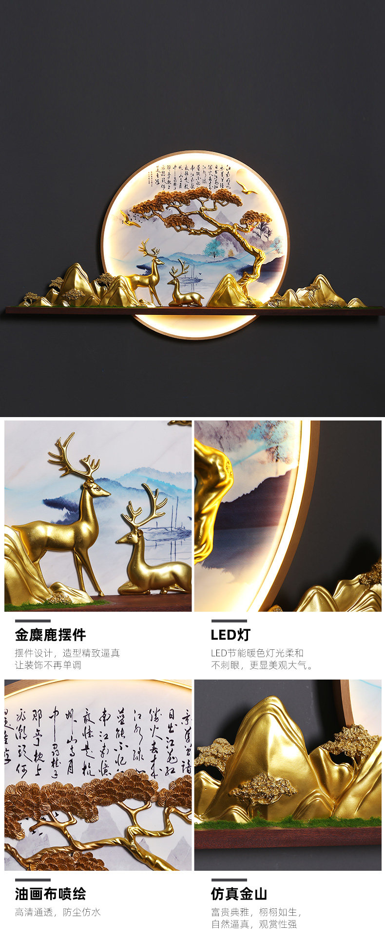 새로운 중국 스타일 환영 소나무 입구 벽화 장식 그림 거실 TV 배경 벽 간단한 원형 통로 입구 빛 사치품스토어 가기