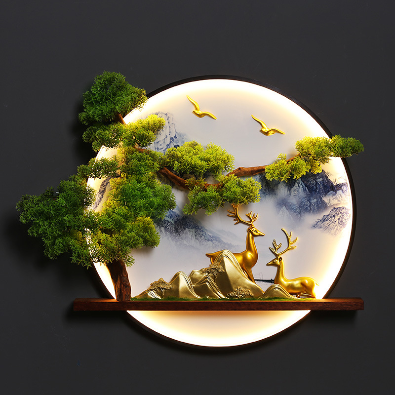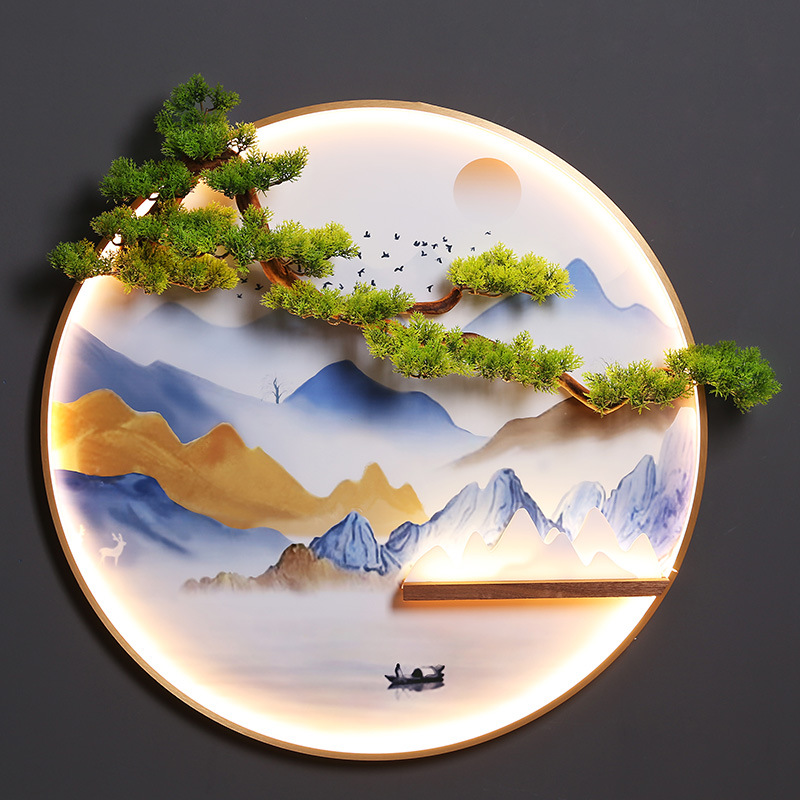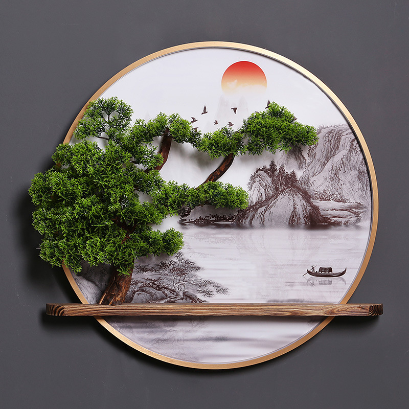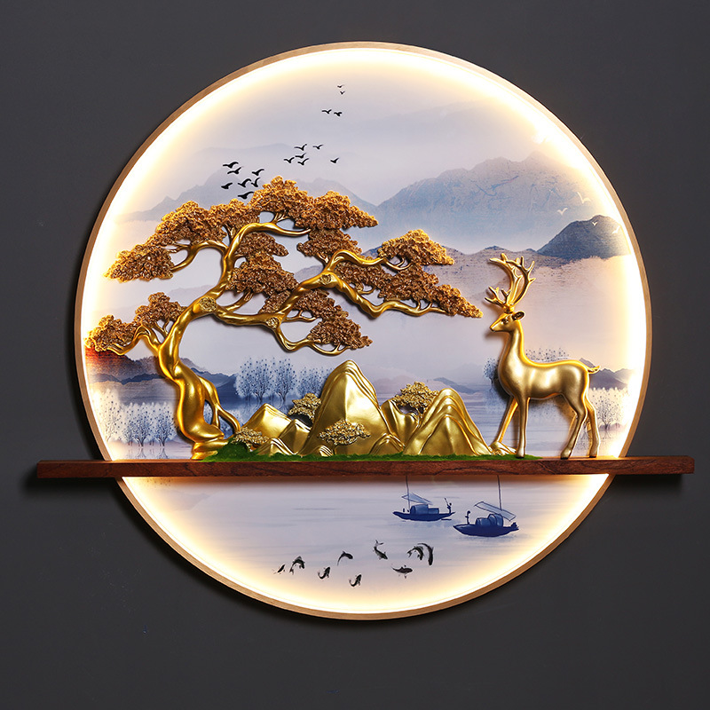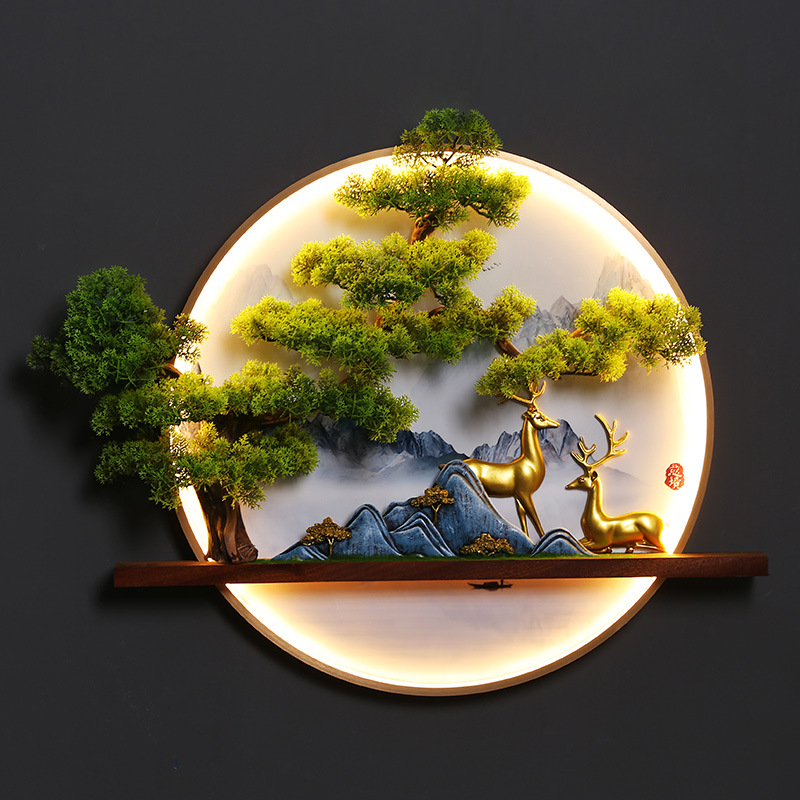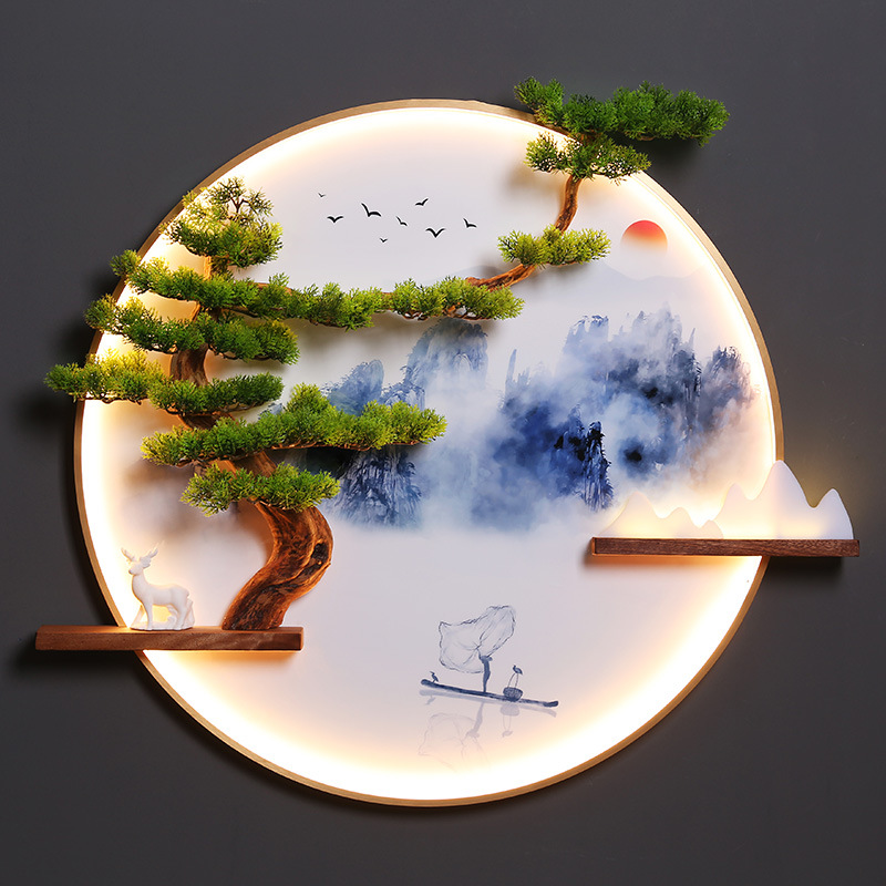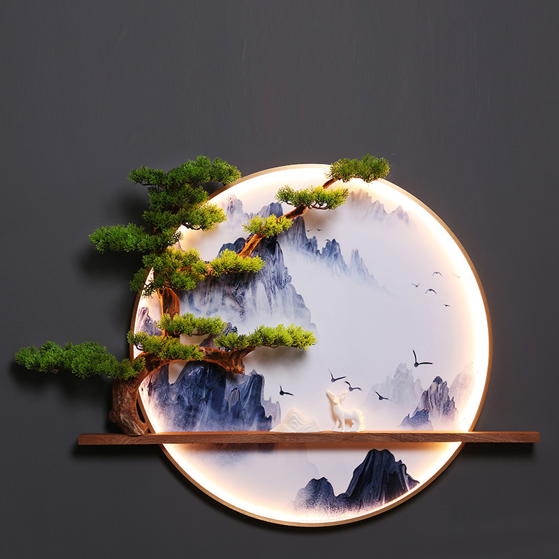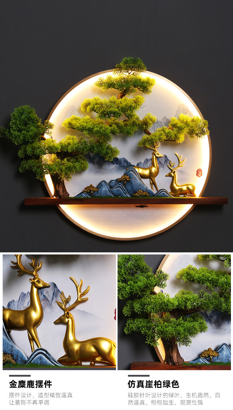 새로운 중국 스타일 환영 소나무 입구 벽화 장식 그림 거실 TV 배경 벽 간단한 원형 통로 입구 빛 사치품스토어 가기