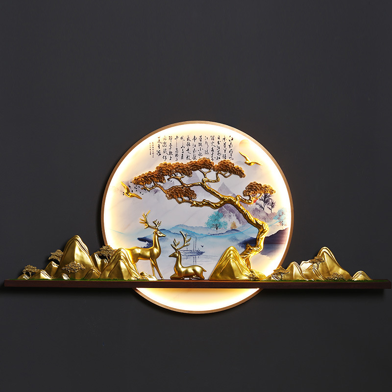 새로운 중국 스타일 환영 소나무 입구 벽화 장식 그림 거실 TV 배경 벽 간단한 원형 통로 입구 빛 사치품