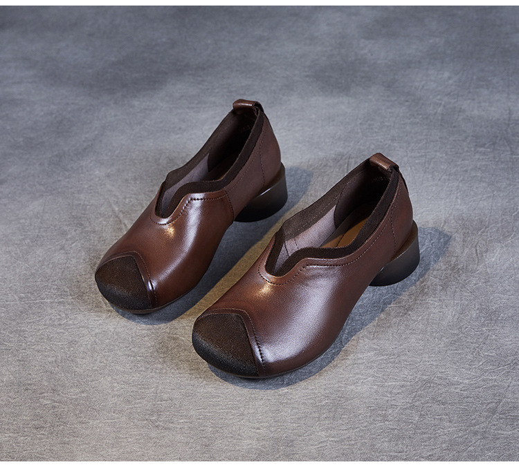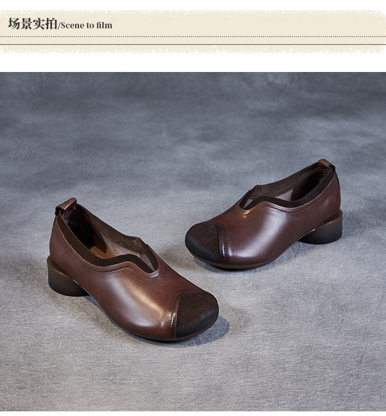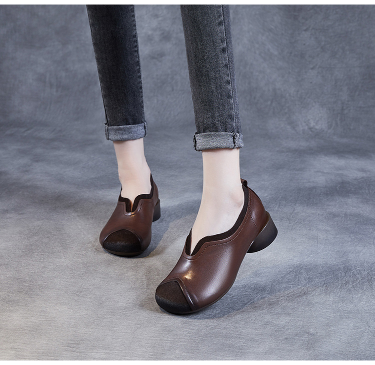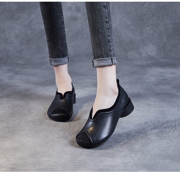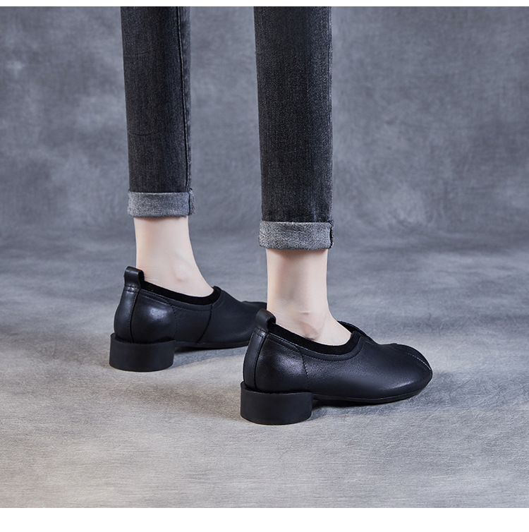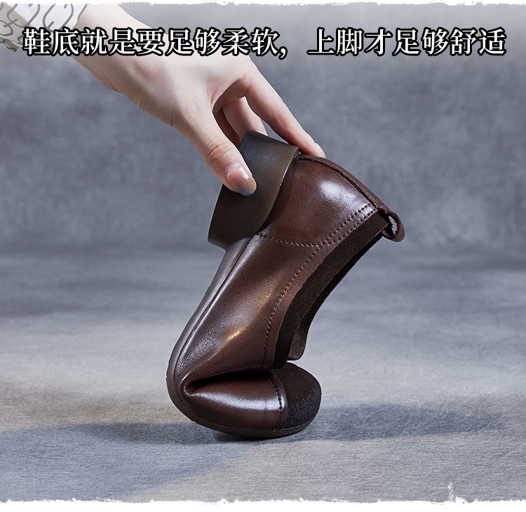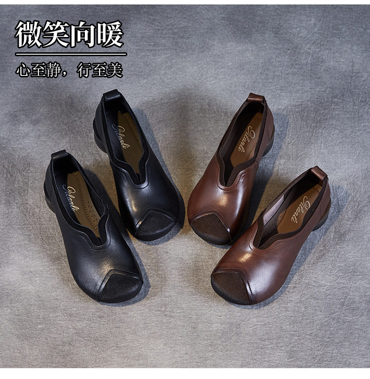 가을 2023 새로운 정품 가죽 여성 신발 부드러운 밑창 부드러운 표면 편안한 깊은 입 낮은 굽 캐주얼 신발 어머니 게으른 신발스토어 가기